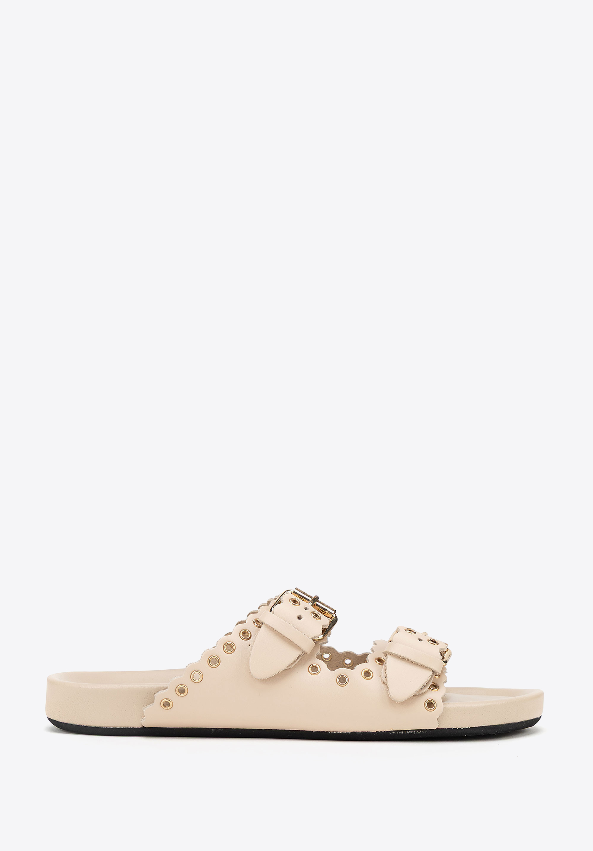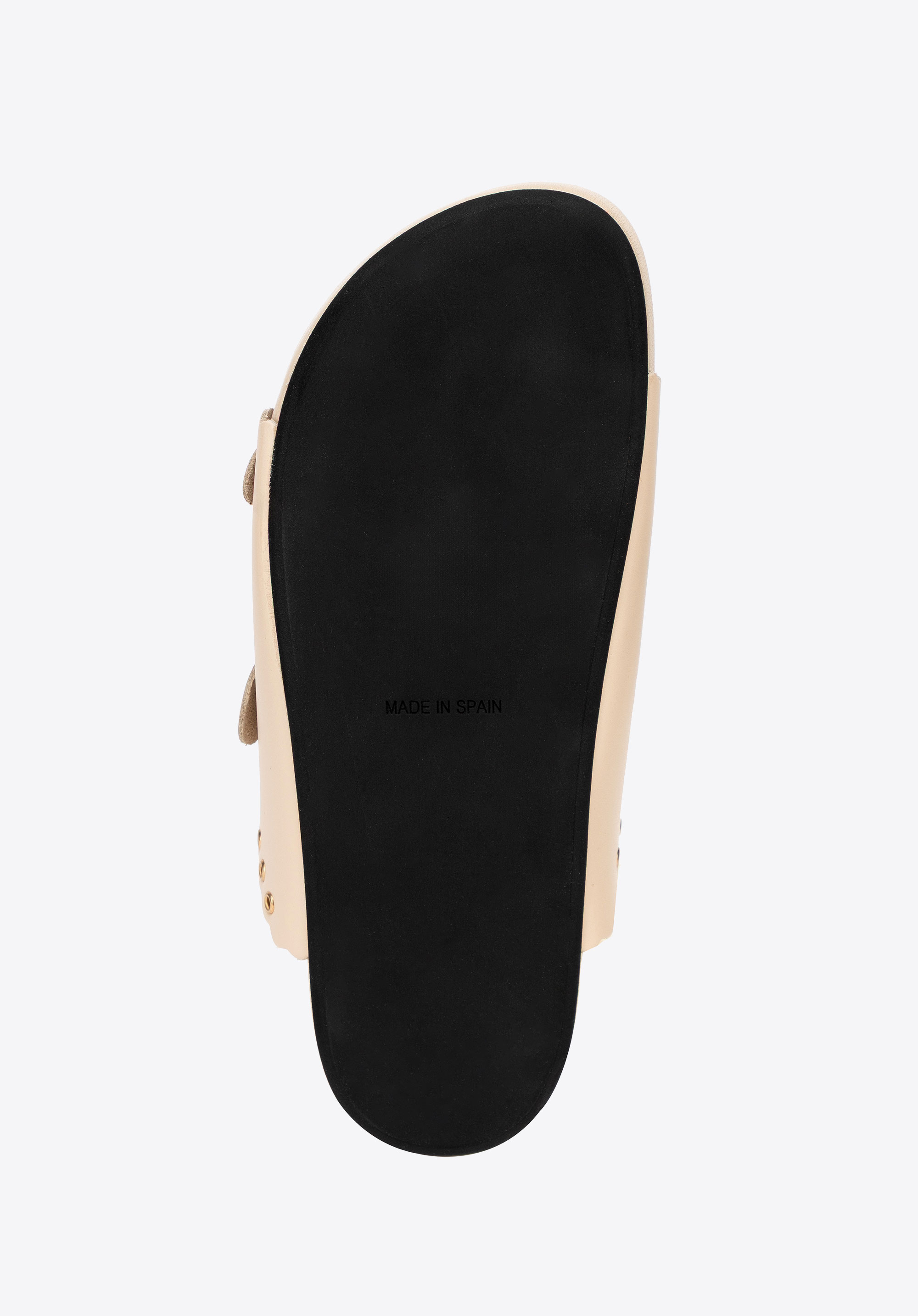 Dámske kožené nazúvacie sandále s ozdobnými remienkami Farba: béžová