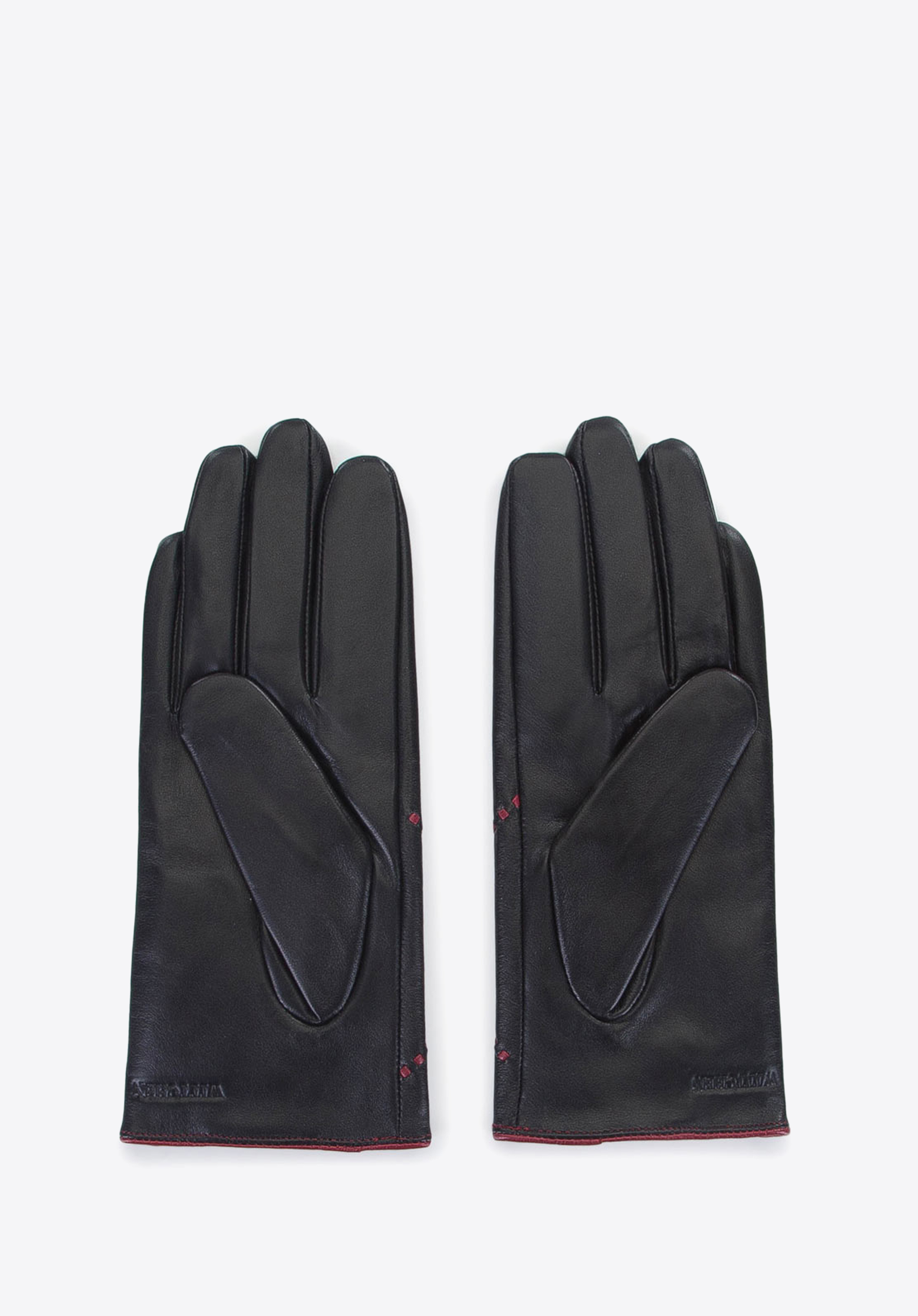 Klasické rukavice, ktorých vrchná časť je zakončená vkusným koženým remienkom. Sú vyrobené z mäkkej prírodnej kože, ktorá dokonale priľne k dlaniam. Majú jednoduchý dizajn, ktorý narúšajú len farebné remienky, ktoré im dodávajú „niečo zvláštne”. Tieto dámske kožené rukavice sú dokonalým doplnkom aspoň na niekoľko zimných sezón.