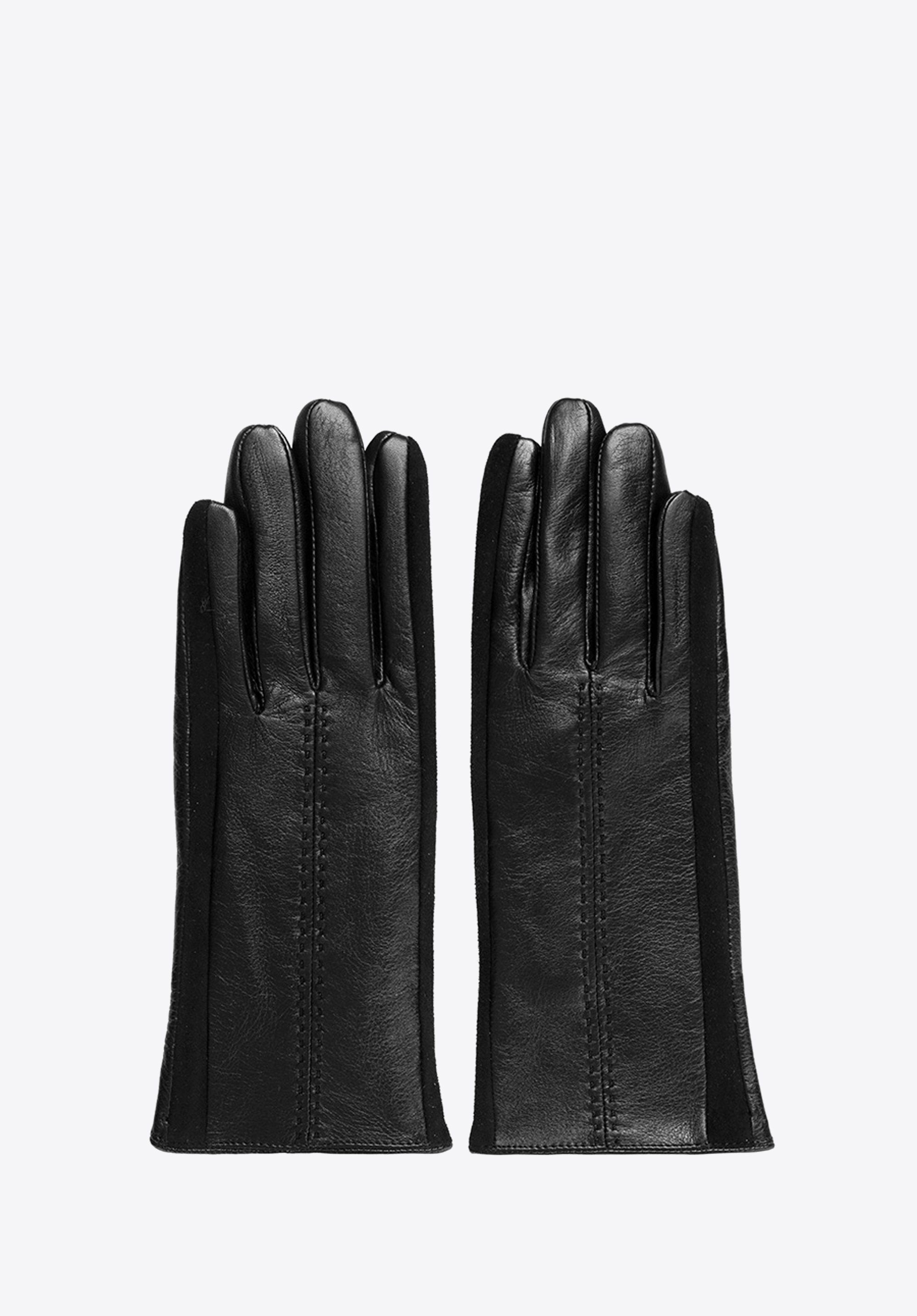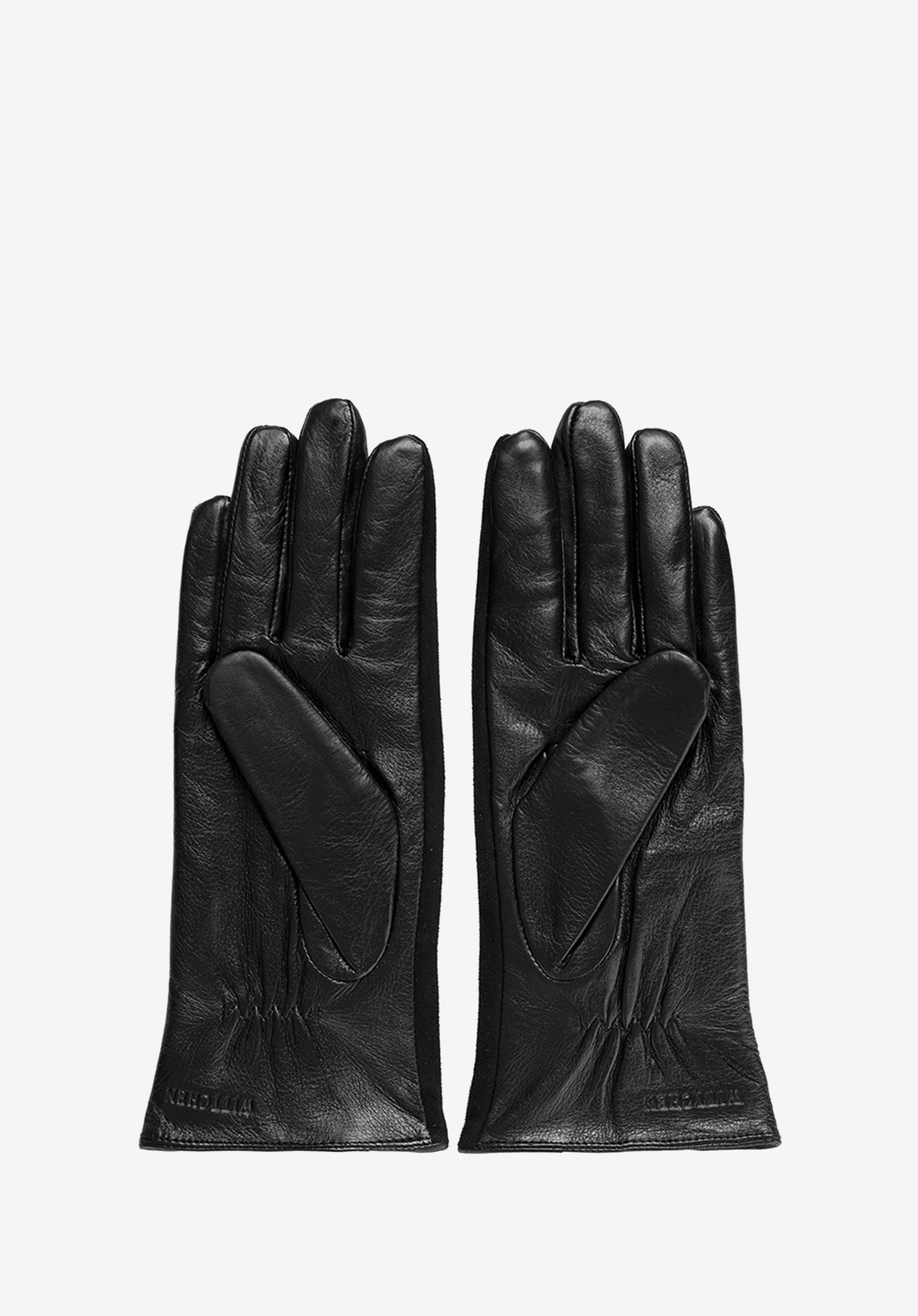 Dámske zateplené rukavice vyrobené z najkvalitnejšej ovčej kože. Rukavice sa prispôsobia tvaru ruky vďaka elastickej gumičke na vnútornej strane. Tento model je dokonalou kombináciou klasiky a elegancie. Vďaka dvom semišovým vložkám na bokoch a jemnému prešívaniu v stredovej línii budú rukavice výnimočne krásne vyzerať s mnohými klasickými otfitmi.