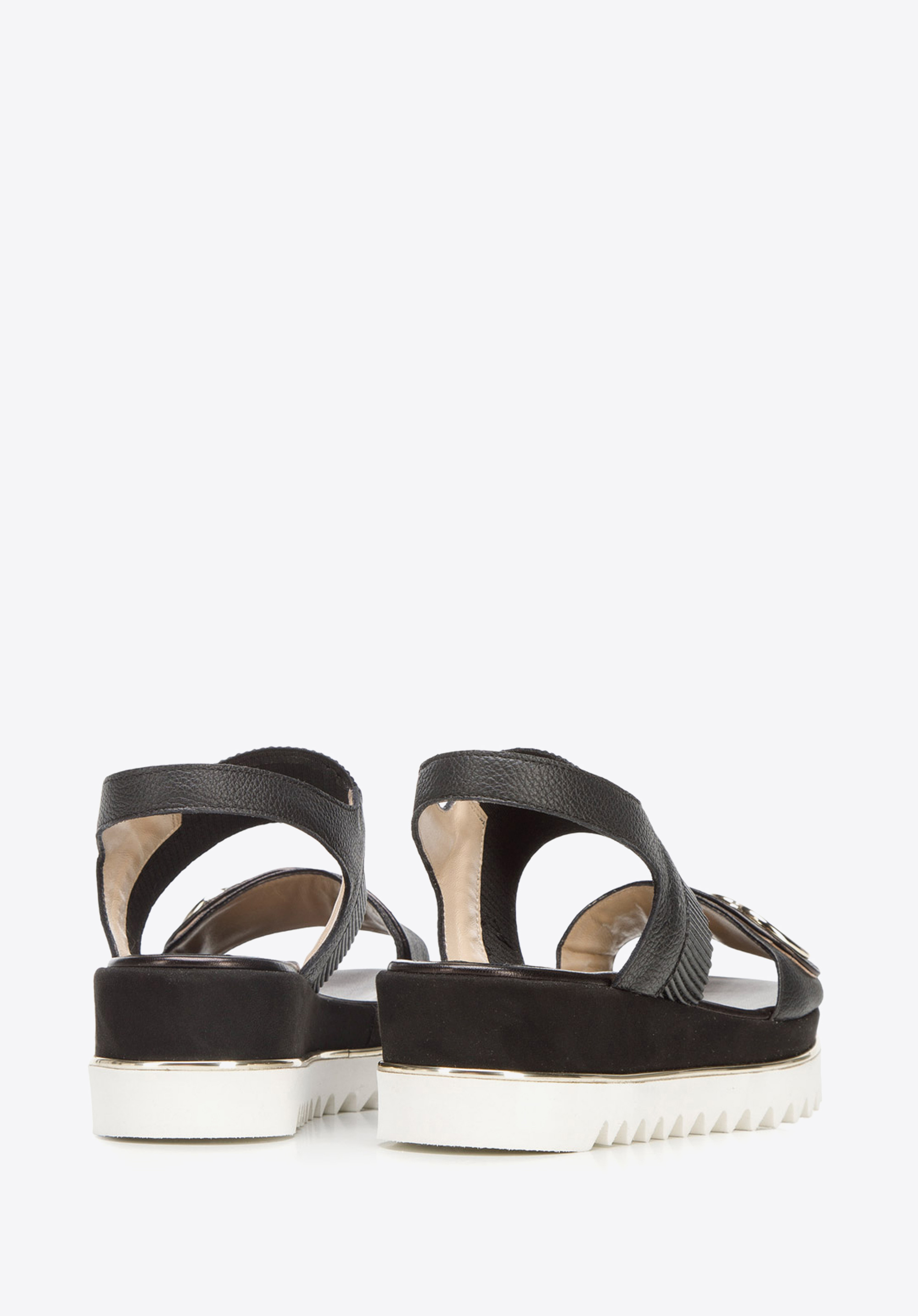 Dámske kožené sandále s hrubou gumičkou 92-D-133-1