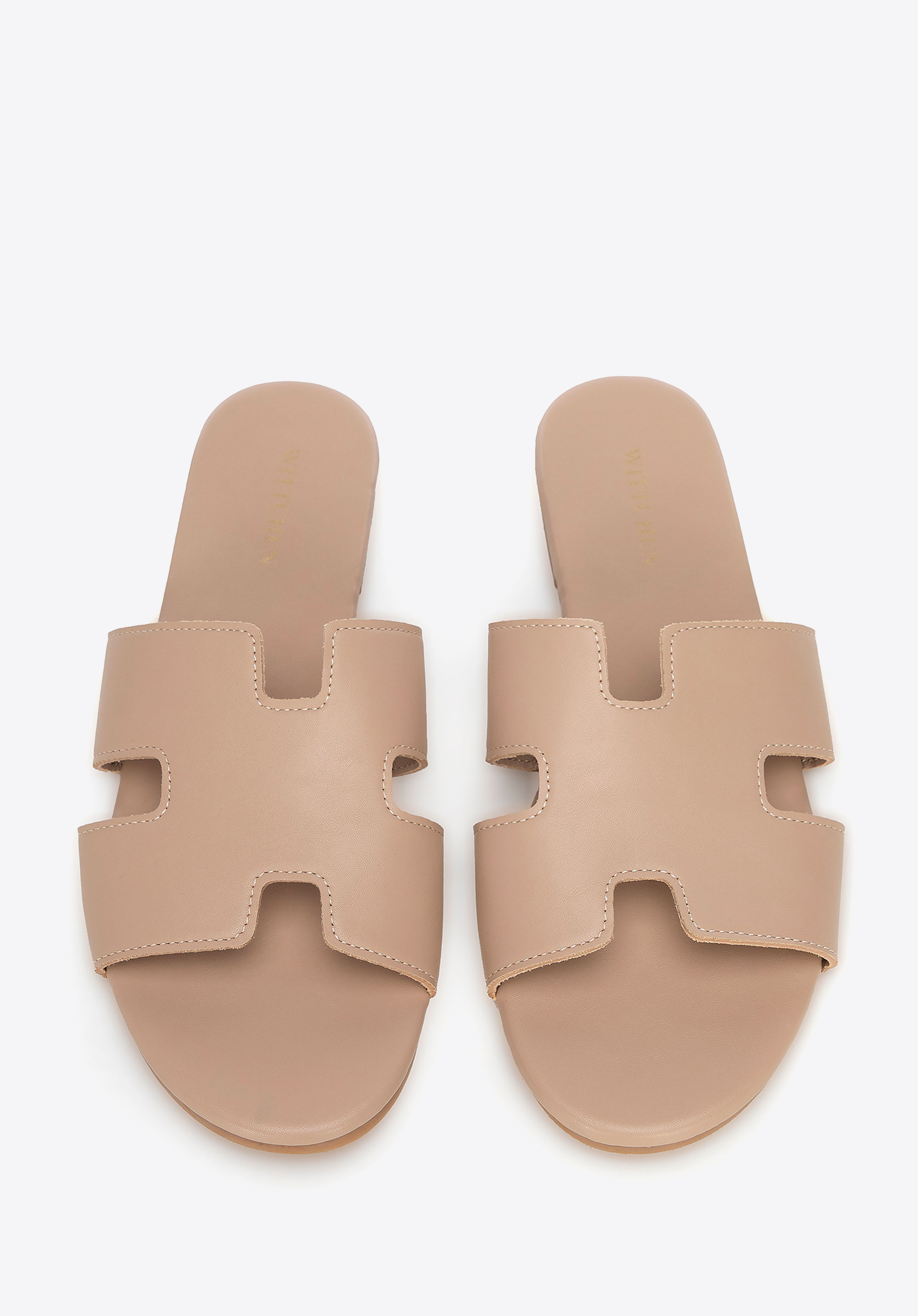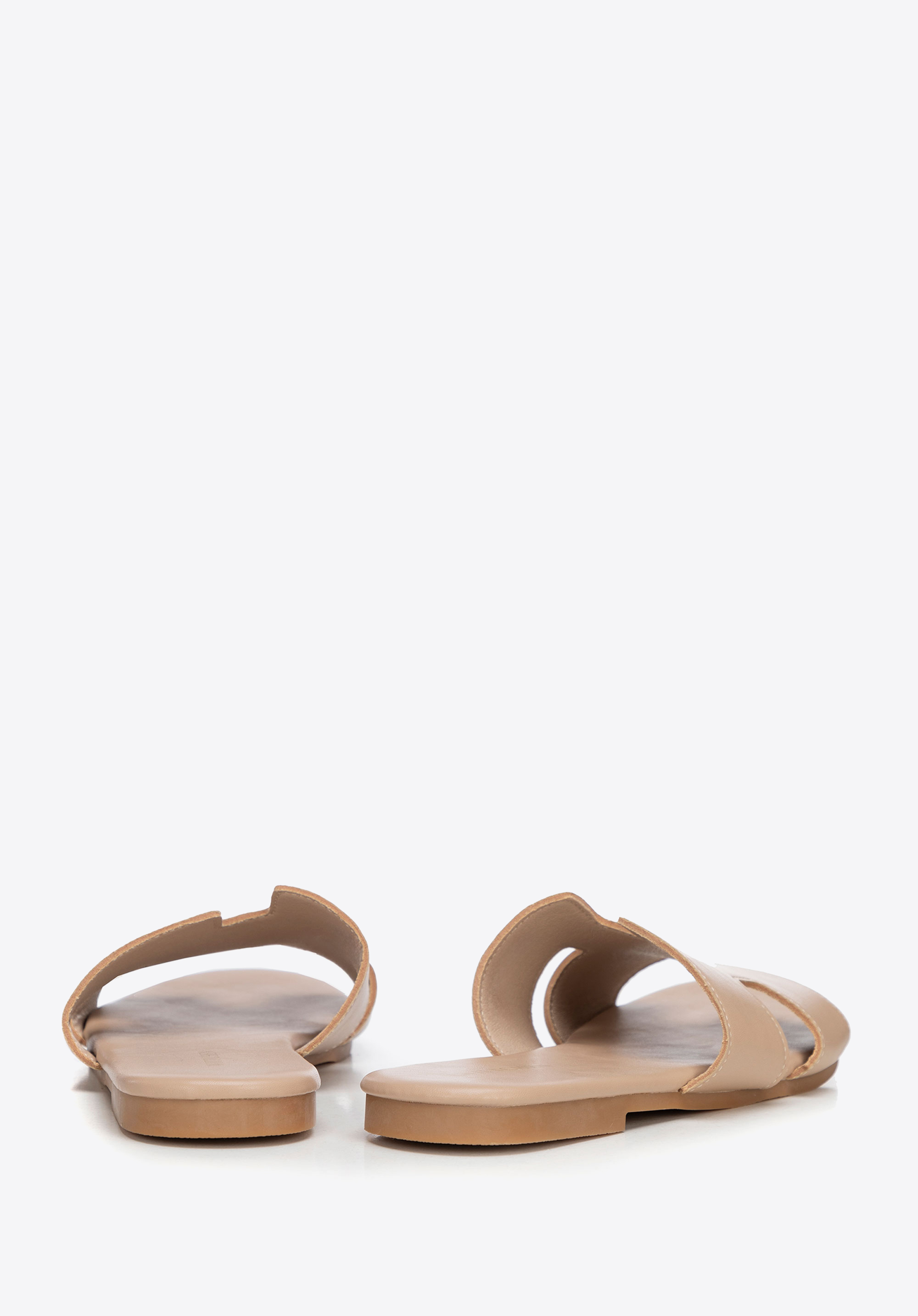 Tieto štýlové sandále sú dokonalou kombináciou pohodlia a elegancie. Sú vyrobené z umelej kože a upútajú precízne vyrezaným dizajnom v tvare písmena H , ktorý na prednej strane vytvára moderný geometrický vzor. Tento elegantný, ľahký dizajn s plochým podpätkom je ideálny na každodenné nosenie, zatiaľ čo zaoblená špička zaisťuje celodenné pohodlie. Stielka a podšívka z umelej kože poskytujú príjemný zážitok z nosenia a podošva TPR ponúka stabilitu na rôznych povrchoch.