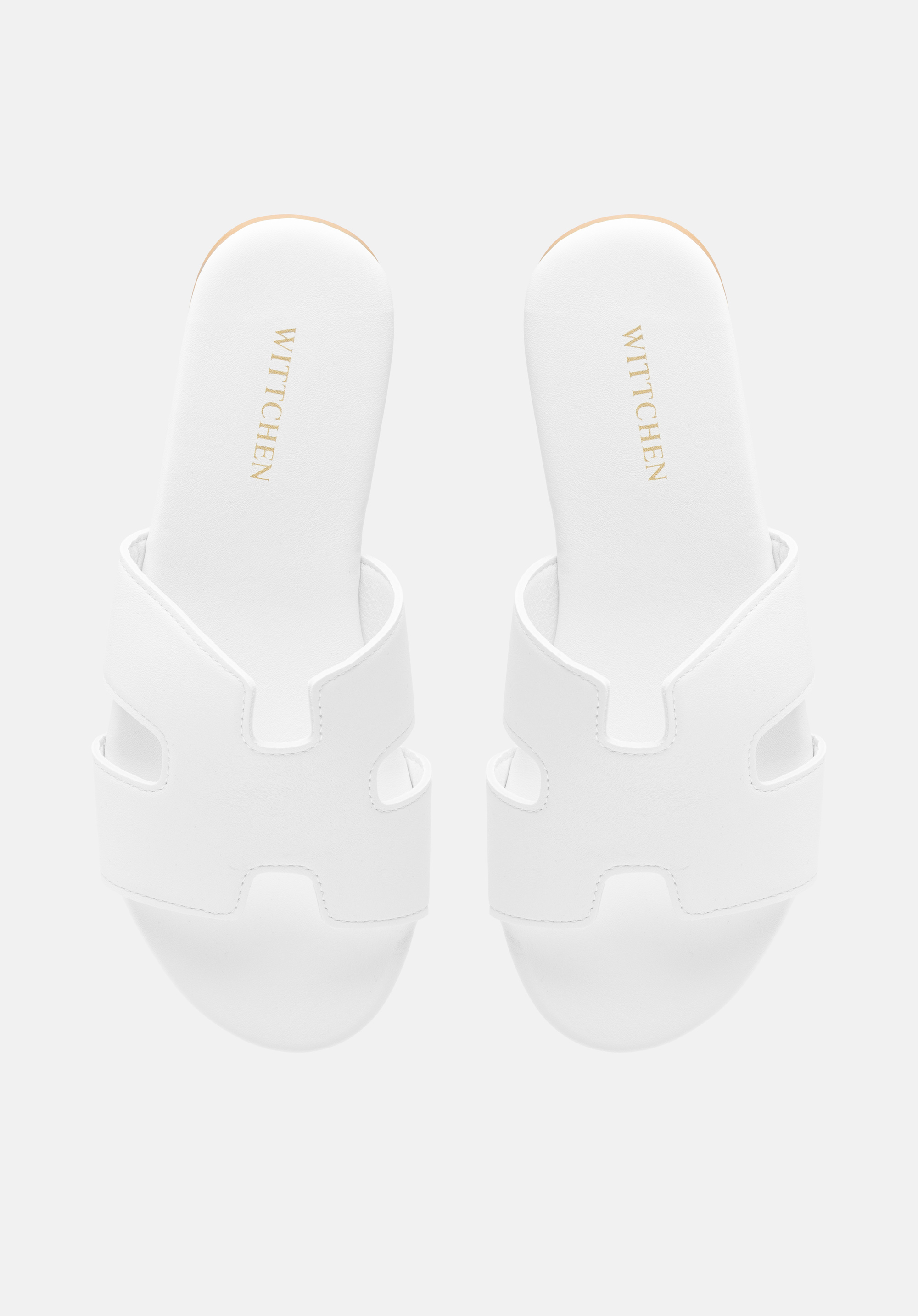 Dámske kožené sandále s výrezom „H“. Farba: biela
