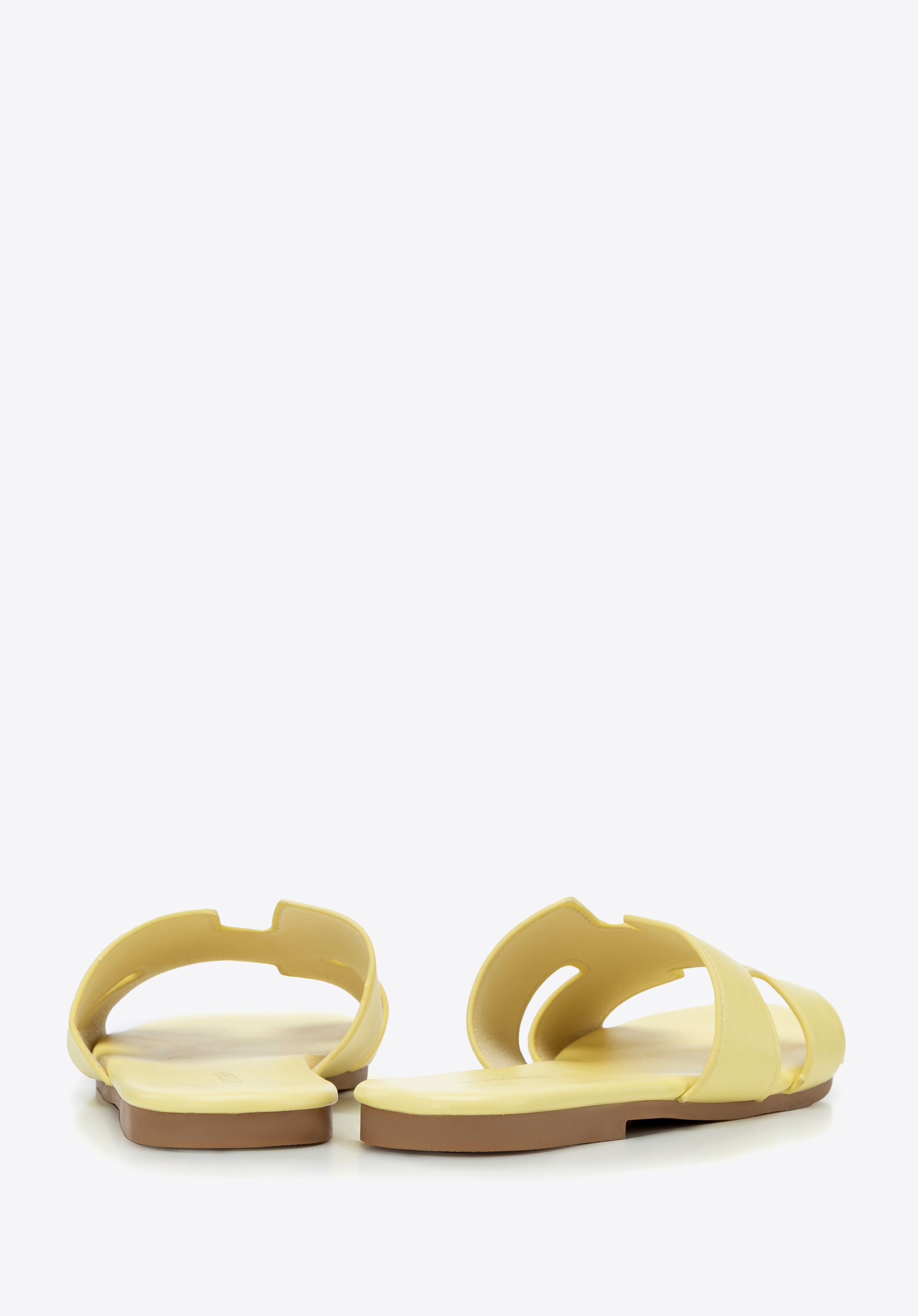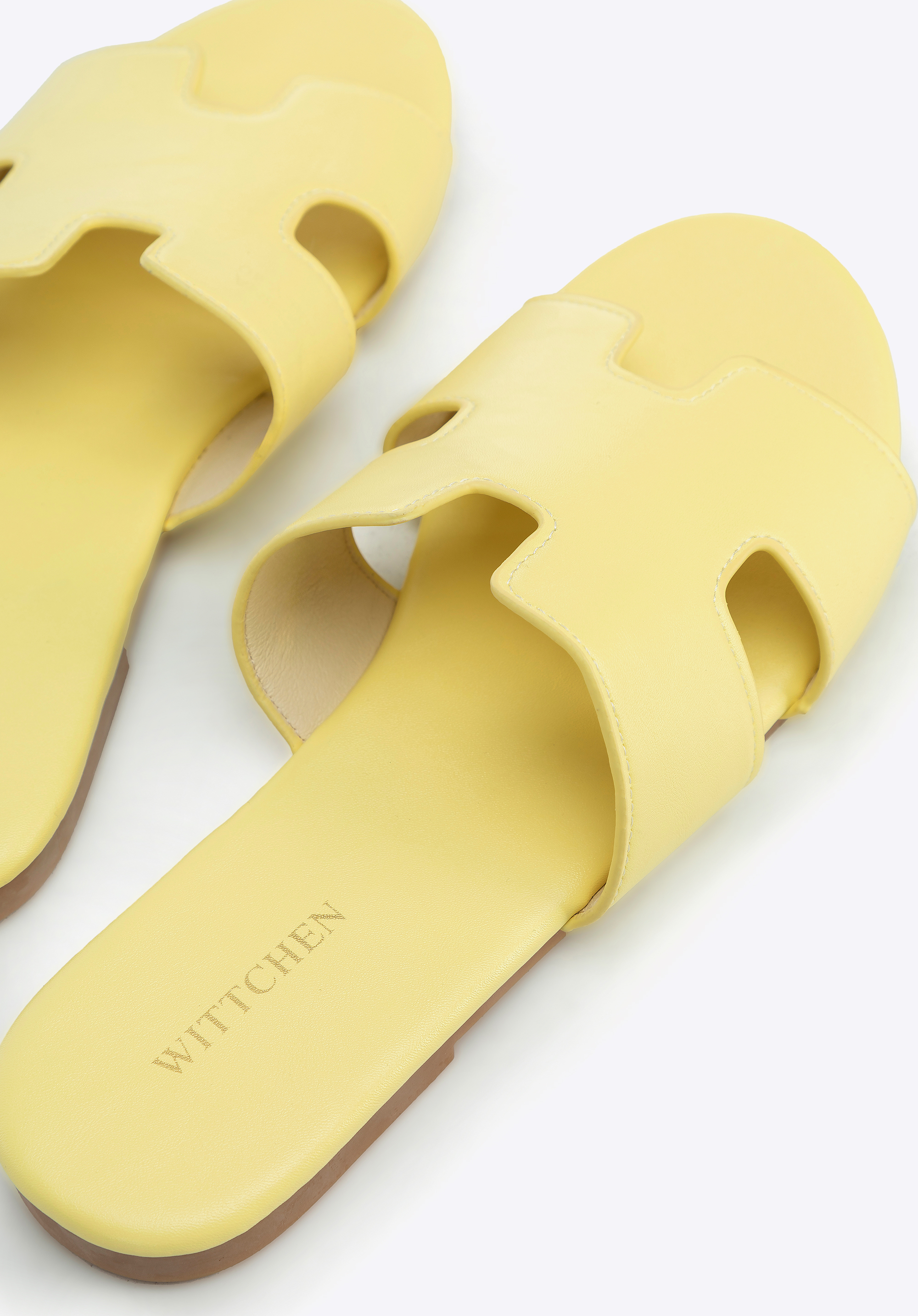 Tieto štýlové sandále sú dokonalou kombináciou pohodlia a elegancie. Sú vyrobené z umelej kože a upútajú precízne vyrezaným dizajnom v tvare písmena H , ktorý na prednej strane vytvára moderný geometrický vzor. Tento elegantný, ľahký dizajn s plochým podpätkom je ideálny na každodenné nosenie, zatiaľ čo zaoblená špička zaisťuje celodenné pohodlie. Stielka a podšívka z umelej kože poskytujú príjemný zážitok z nosenia a podošva TPR ponúka stabilitu na rôznych povrchoch.