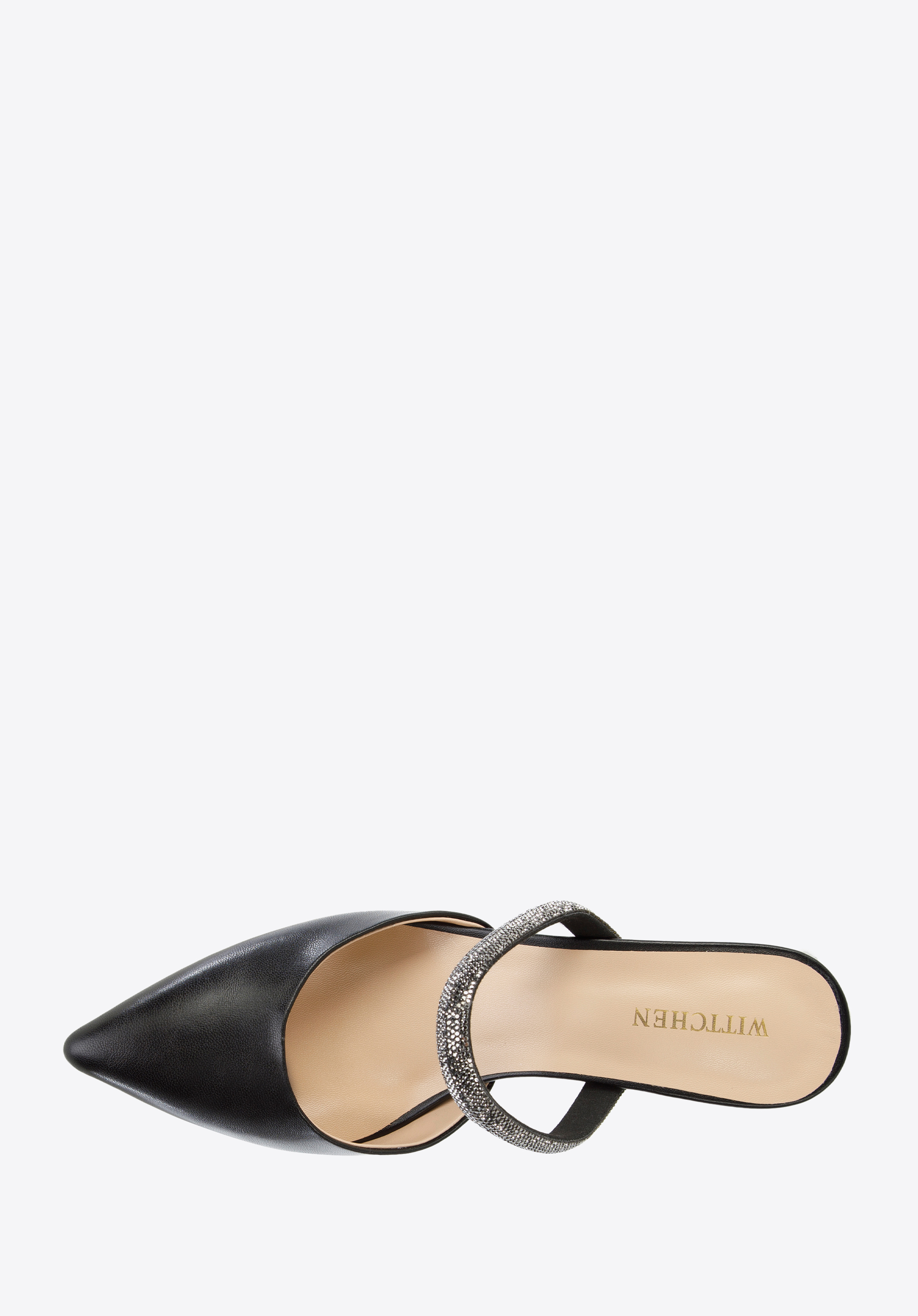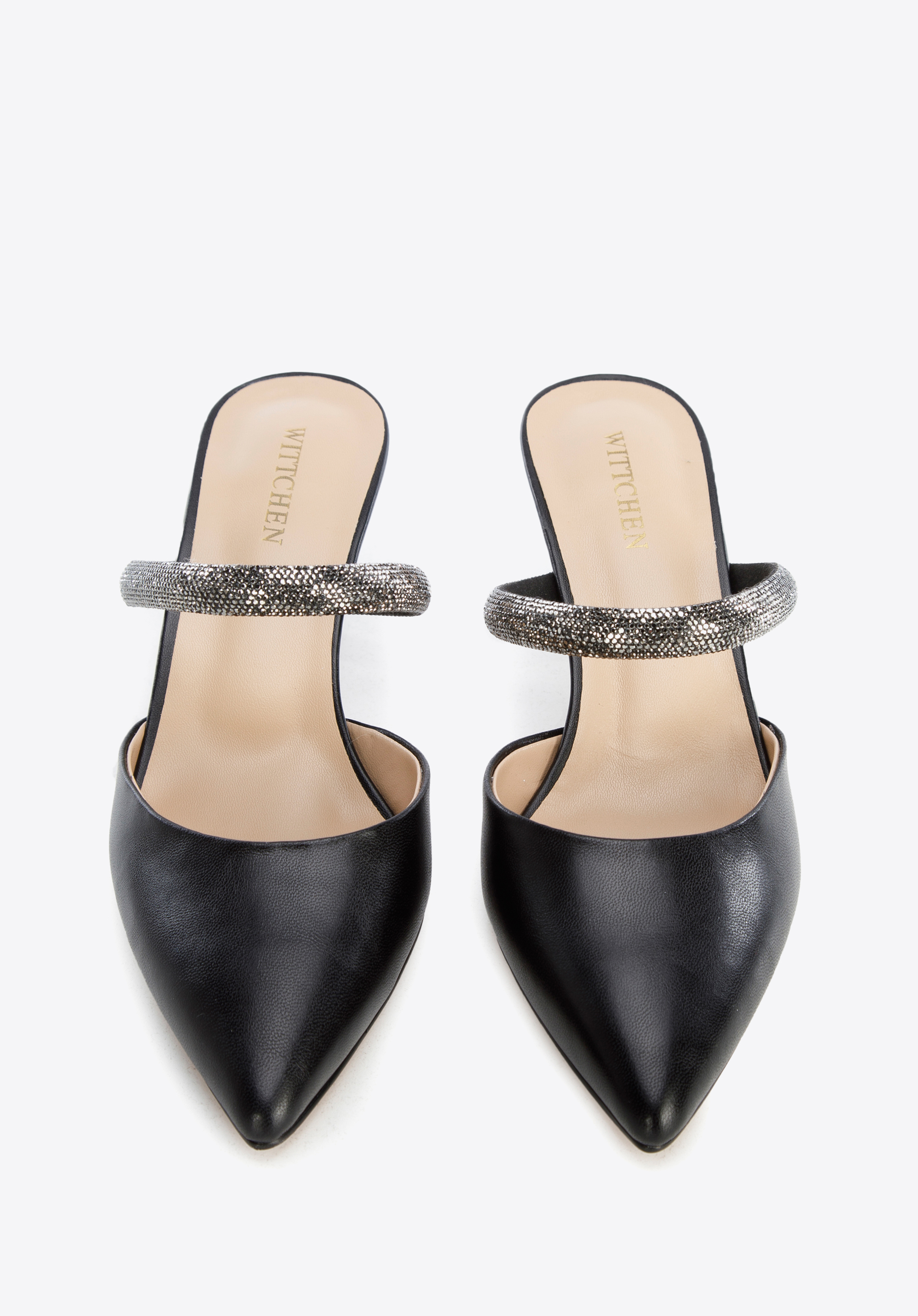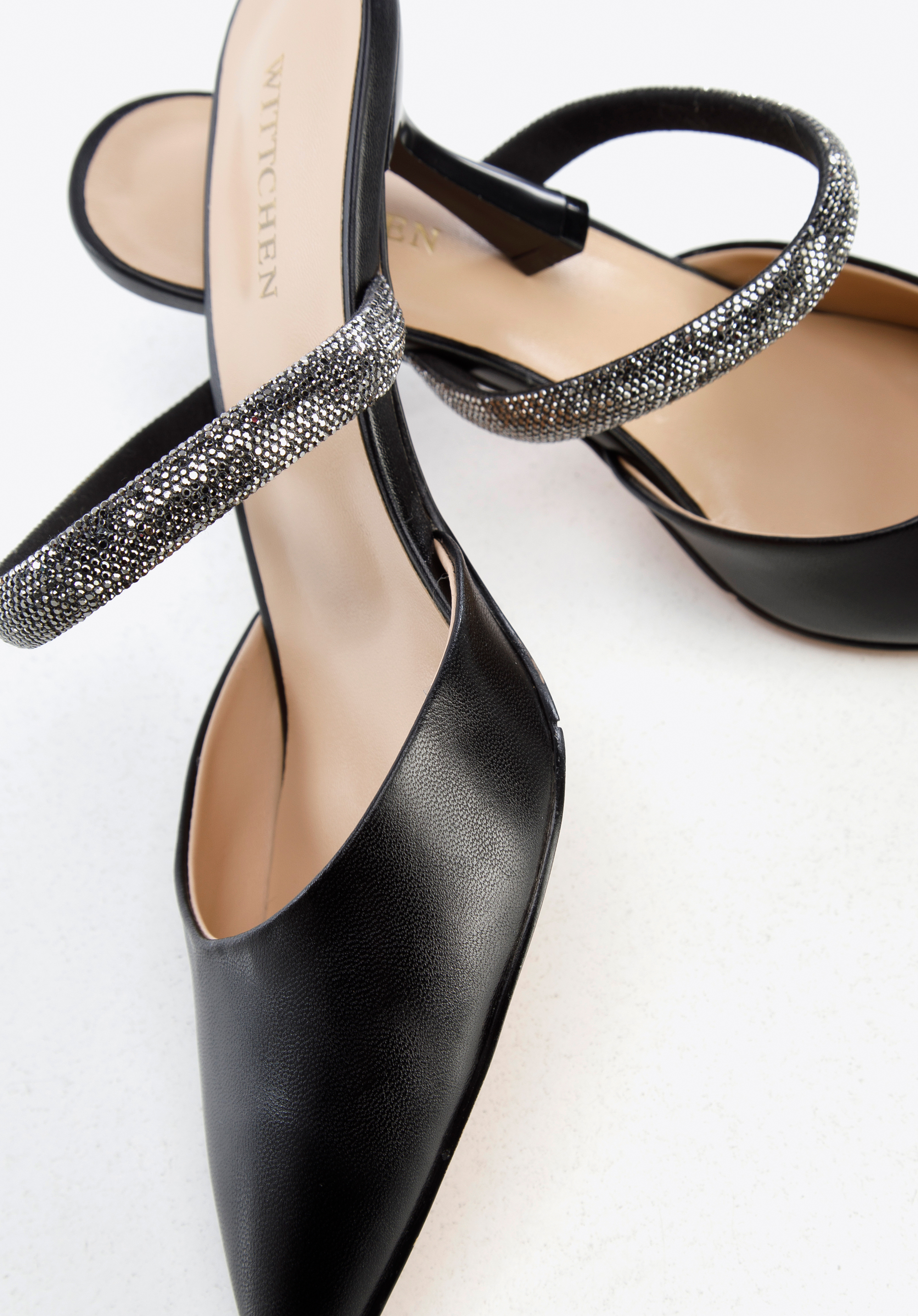 z vysokokvalitnej prírodnej kože. Šperkový pásik z drobných trblietavých kryštálikov im dodáva jedinečný charakter.