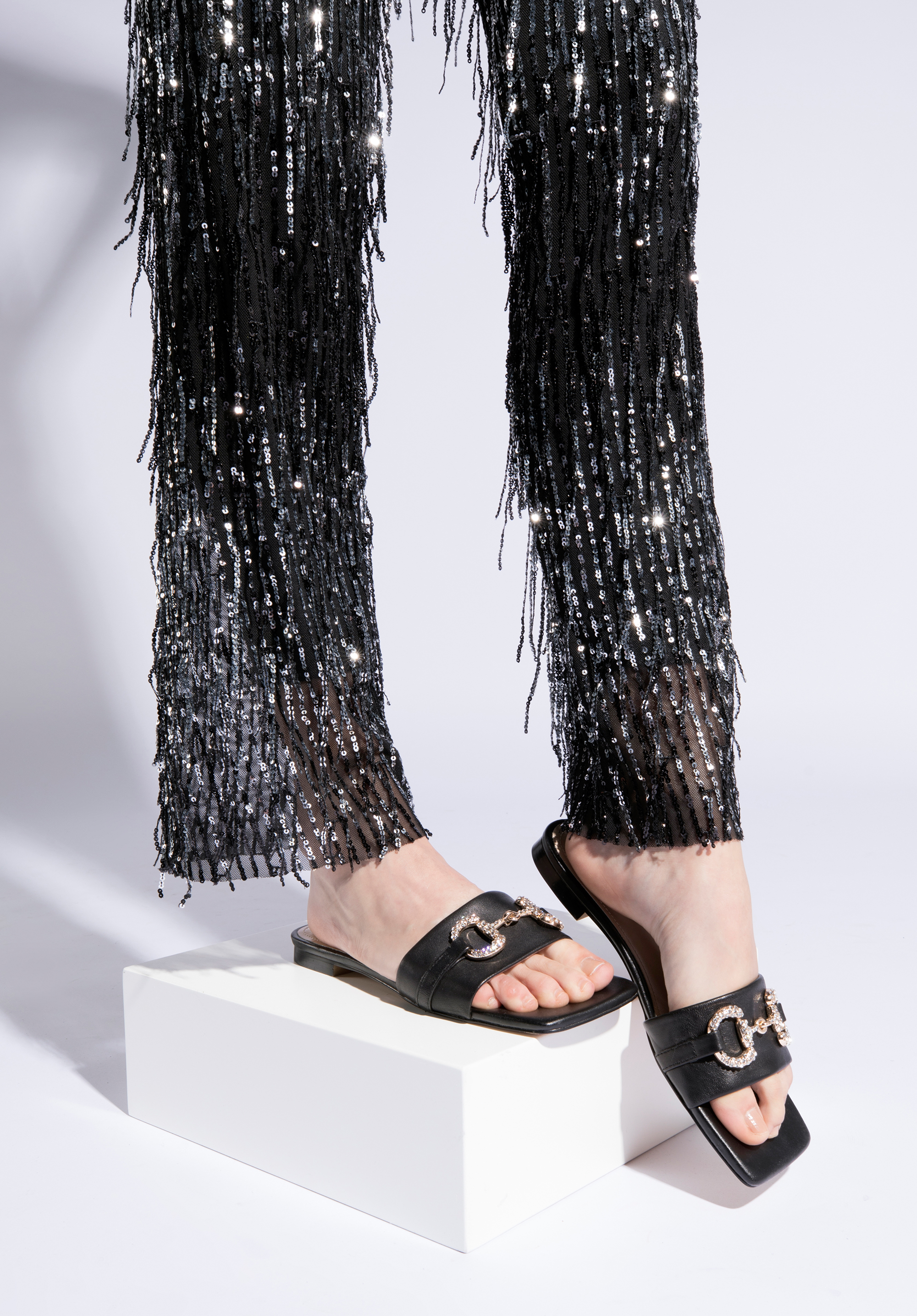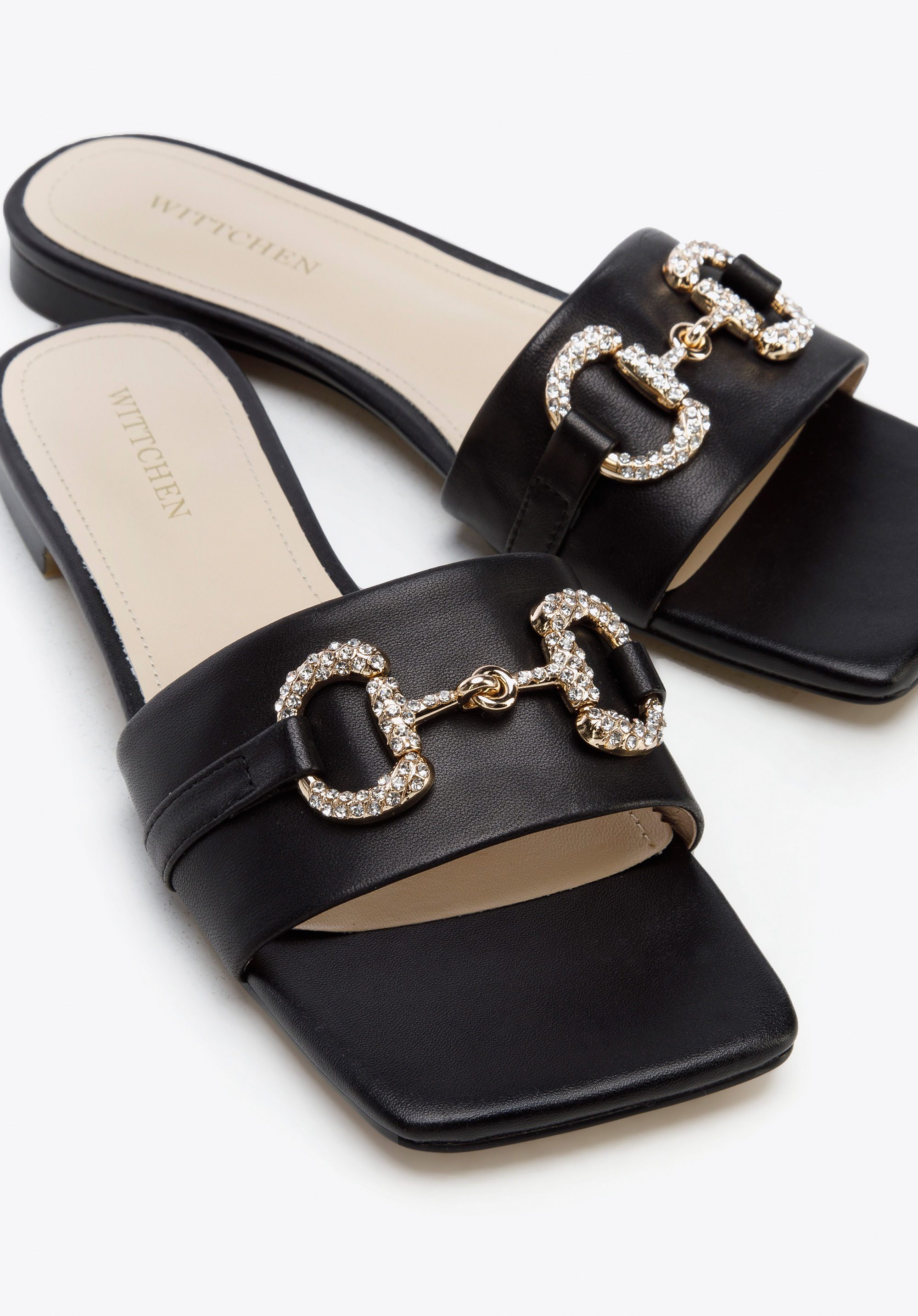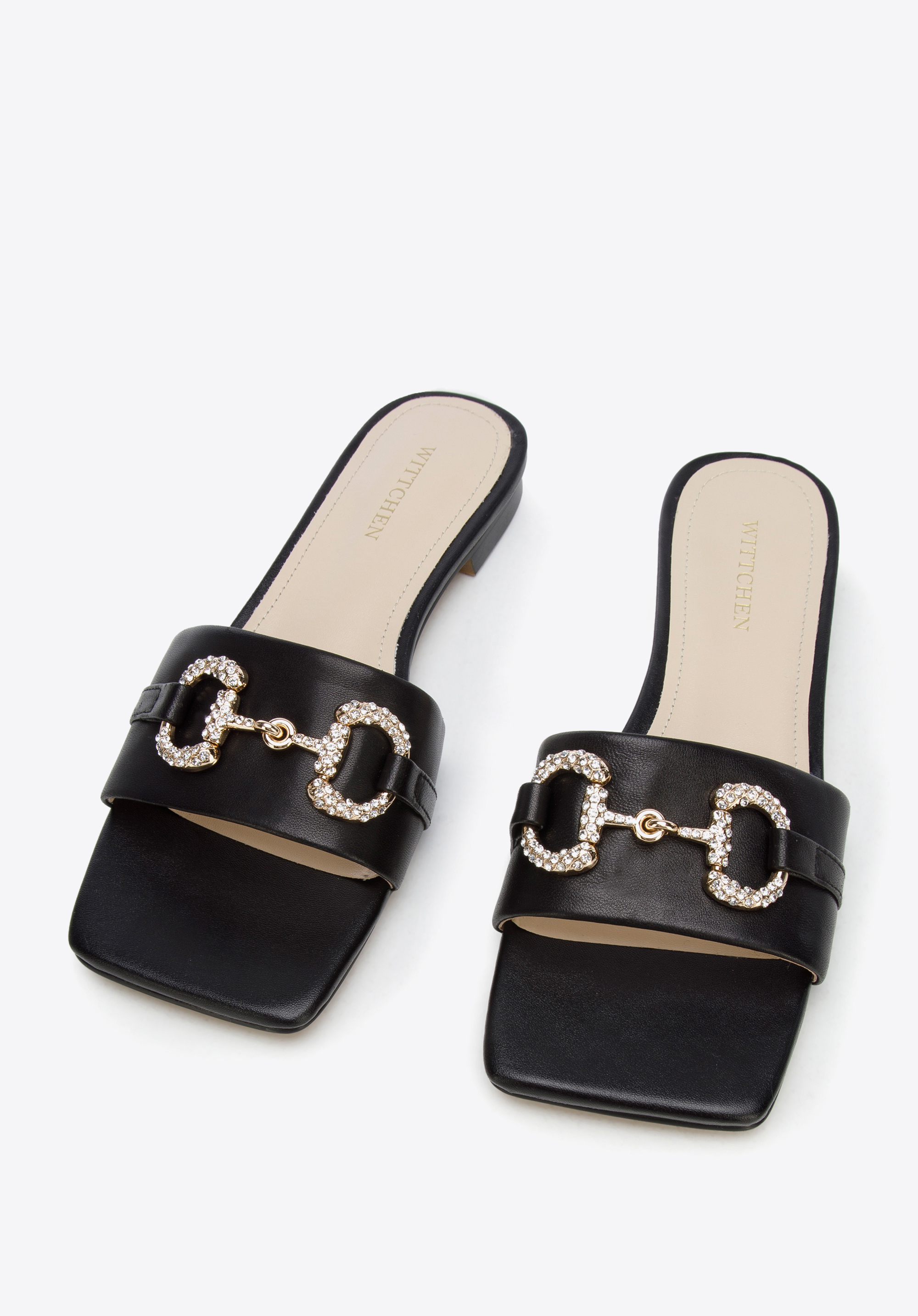 zdobená trblietavými kryštálmi. Tento model zvýrazní vzdušné šaty s opaskom a dodá elegantný nádych vašim obľúbeným džínsom a tričku. Dámske kožené šľapky s lesklou prackou sú elegantným doplnkom na letné mesiace, ktorý sa oplatí mať vo svojom šatníku.