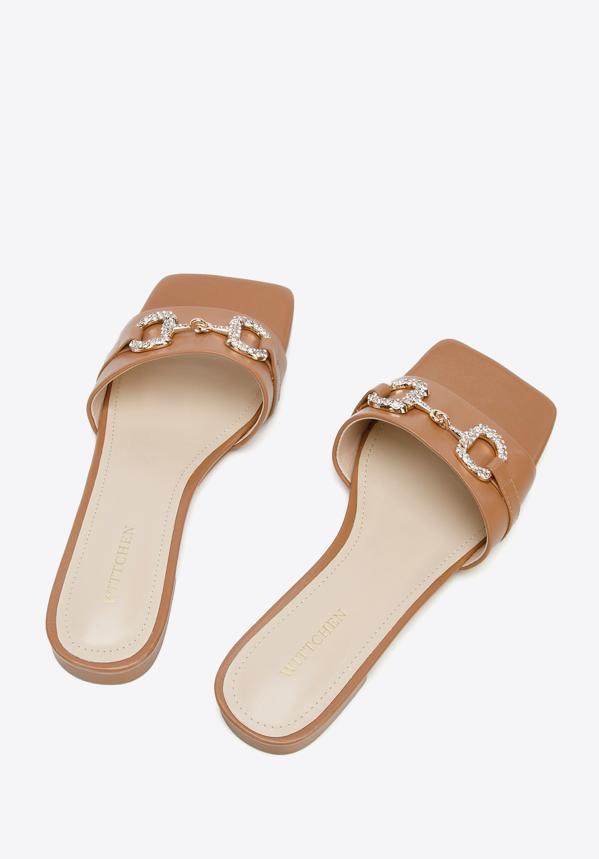 zdobená trblietavými kryštálmi. Tento model zvýrazní vzdušné šaty s opaskom a dodá elegantný nádych vašim obľúbeným džínsom a tričku. Dámske kožené šľapky s lesklou prackou sú elegantným doplnkom na letné mesiace, ktorý sa oplatí mať vo svojom šatníku.