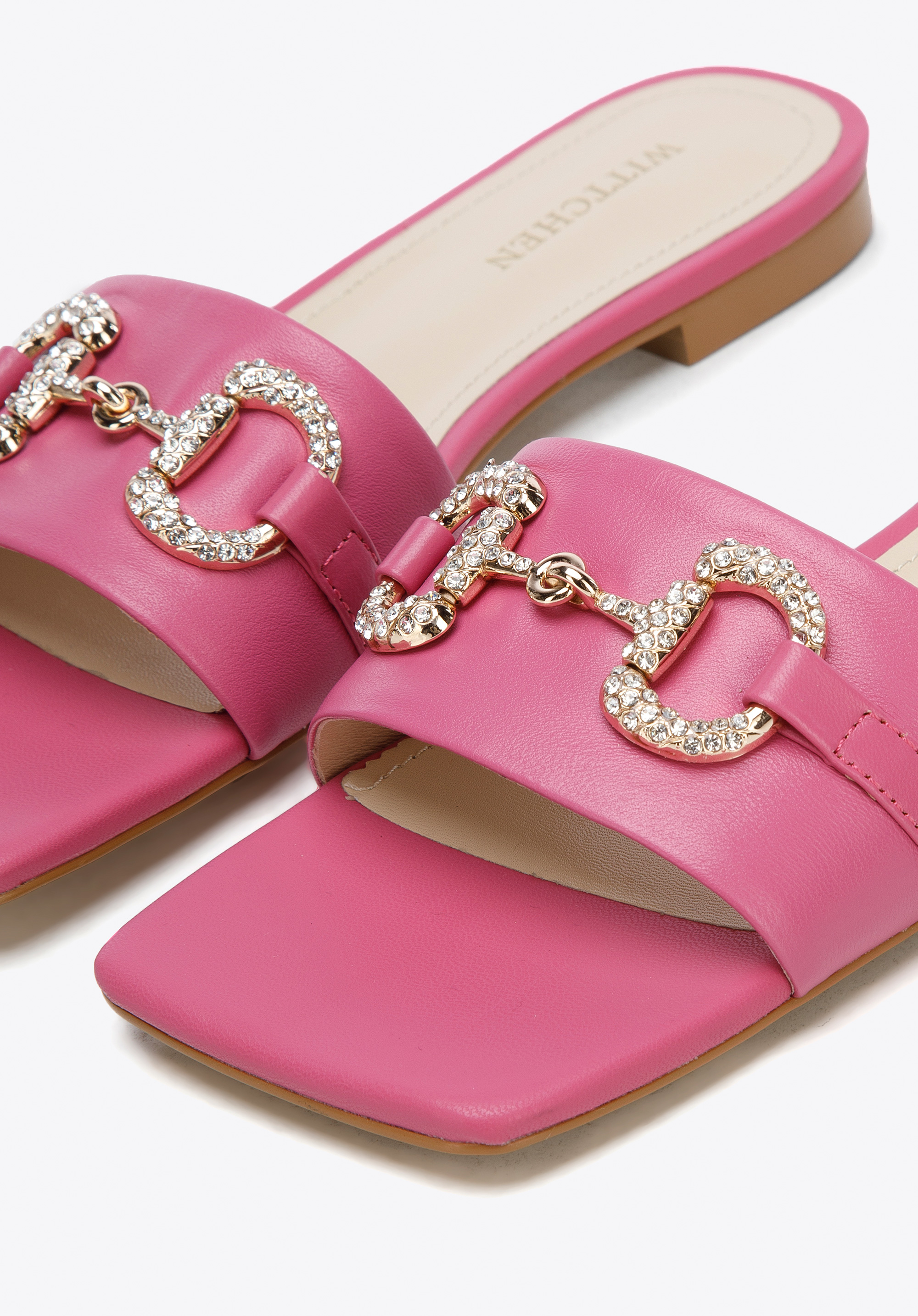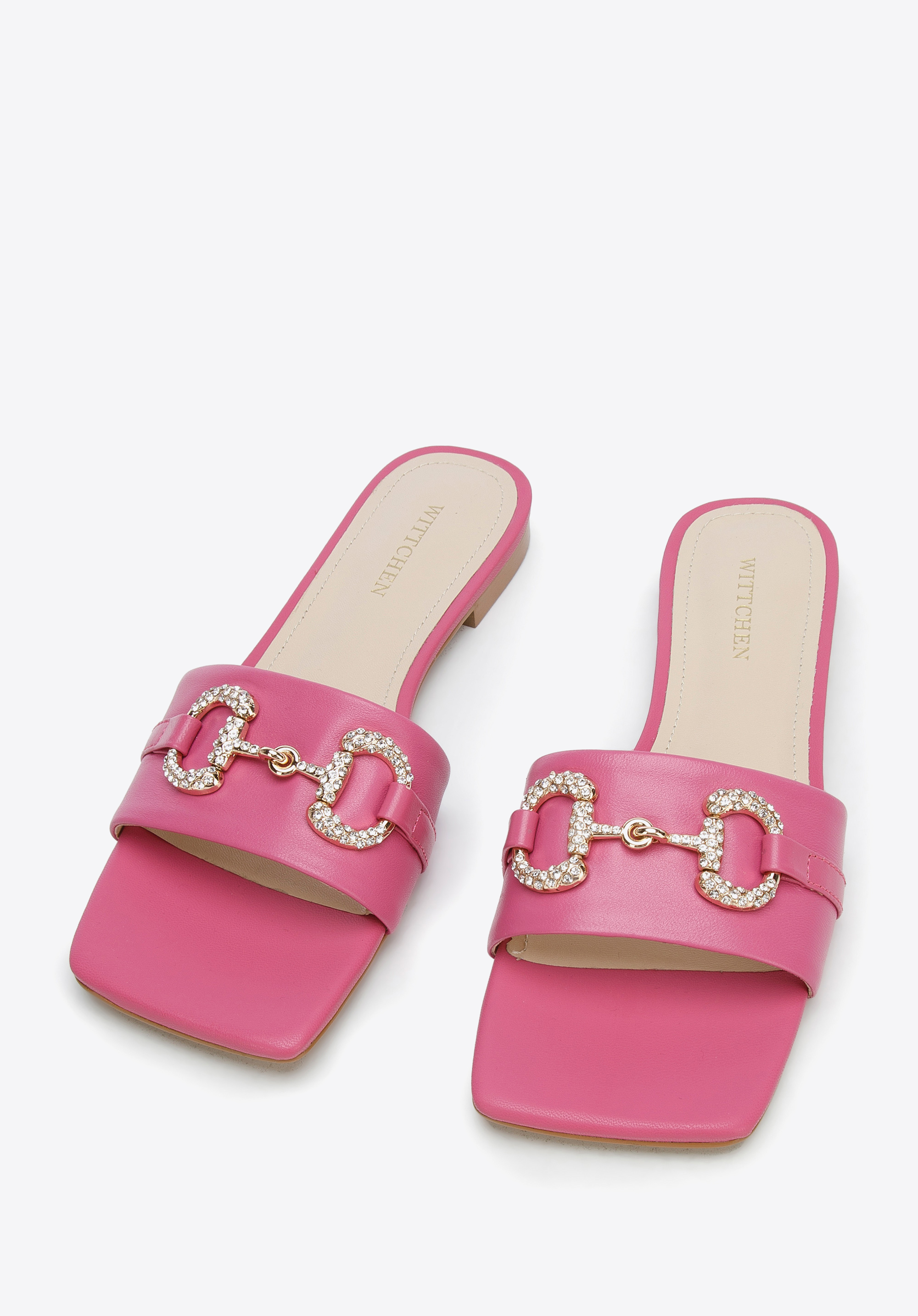 zdobená trblietavými kryštálmi. Tento model zvýrazní vzdušné šaty s opaskom a dodá elegantný nádych vašim obľúbeným džínsom a tričku. Dámske kožené šľapky s lesklou prackou sú elegantným doplnkom na letné mesiace, ktorý sa oplatí mať vo svojom šatníku.