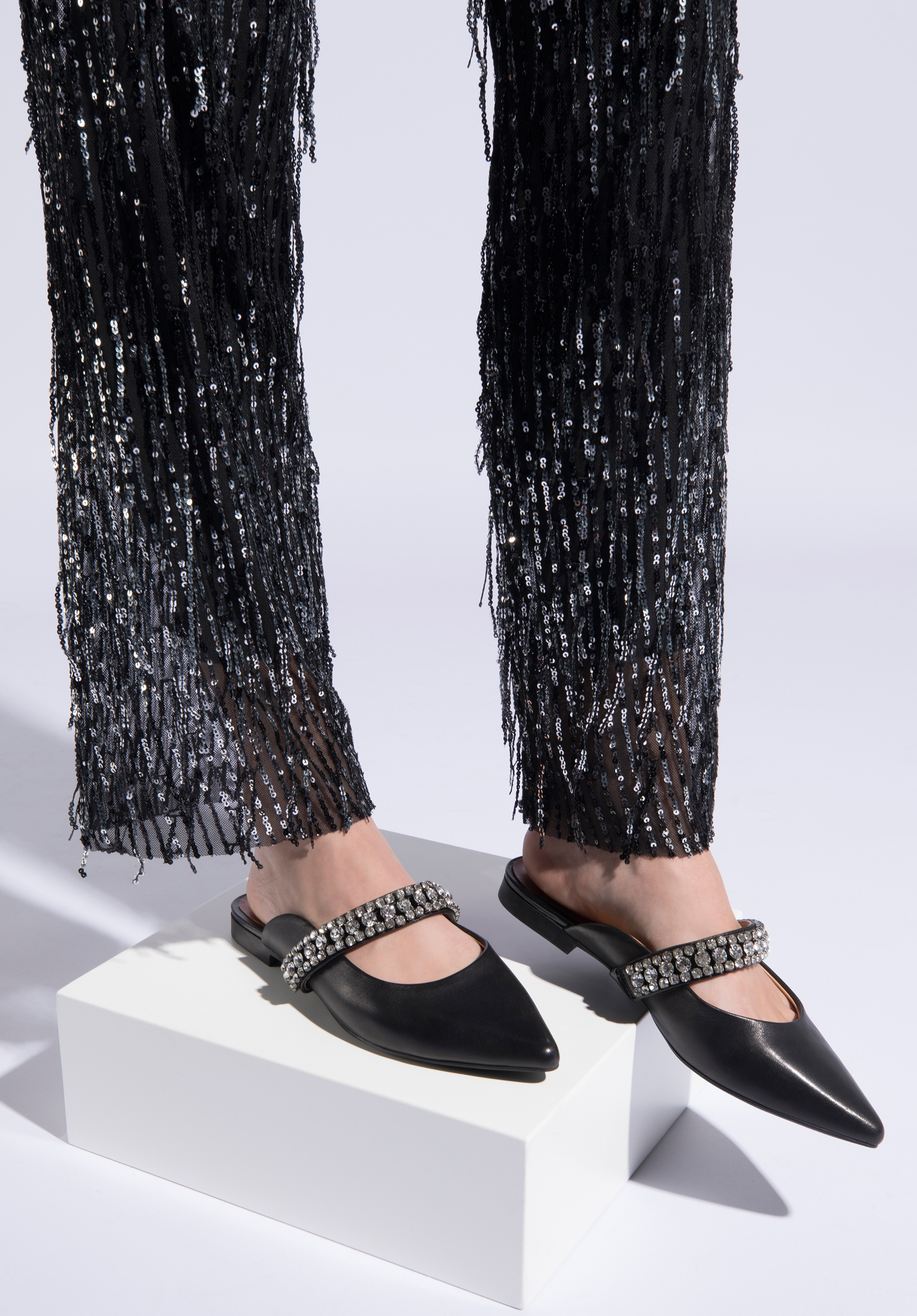 Dámske kožené šľapky s trblietavým remienkom sú nevšedným doplnkom, ktorý upúta nejeden pohľad. Budú vyzerať skvele s rozšírenými šatami a dodajú eleganciu džínsom a košeli.