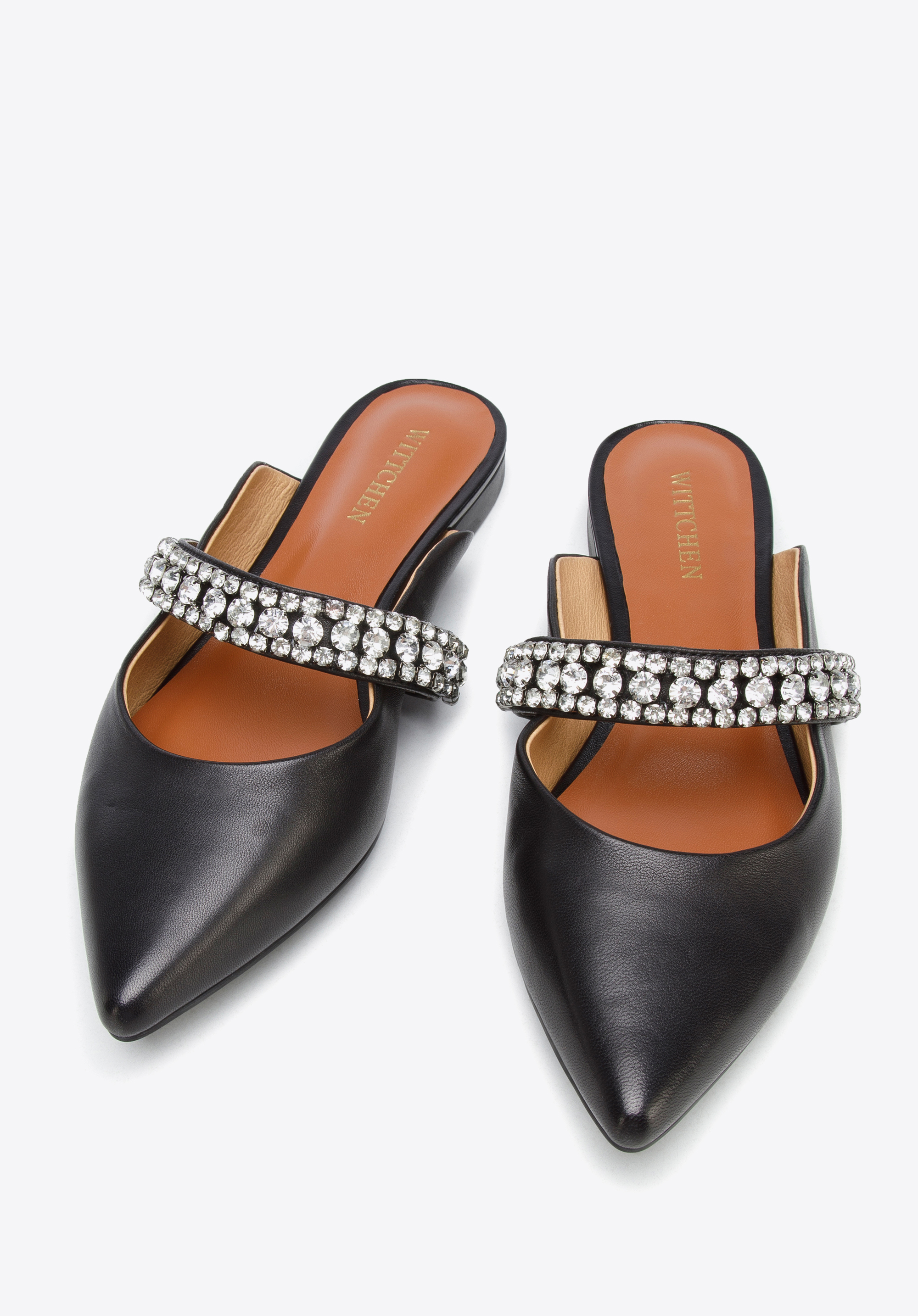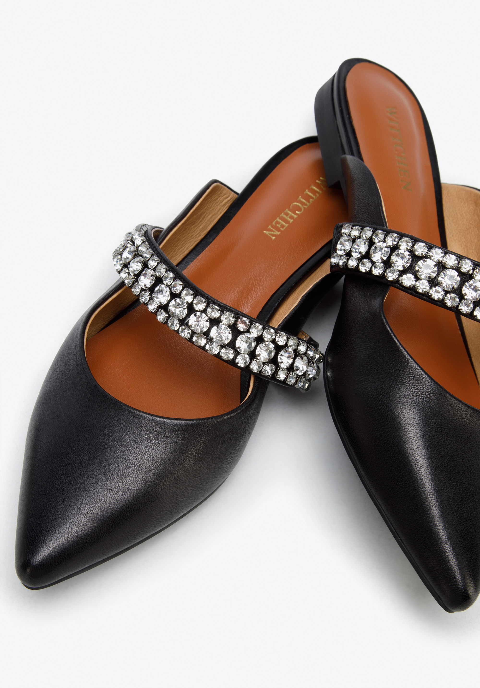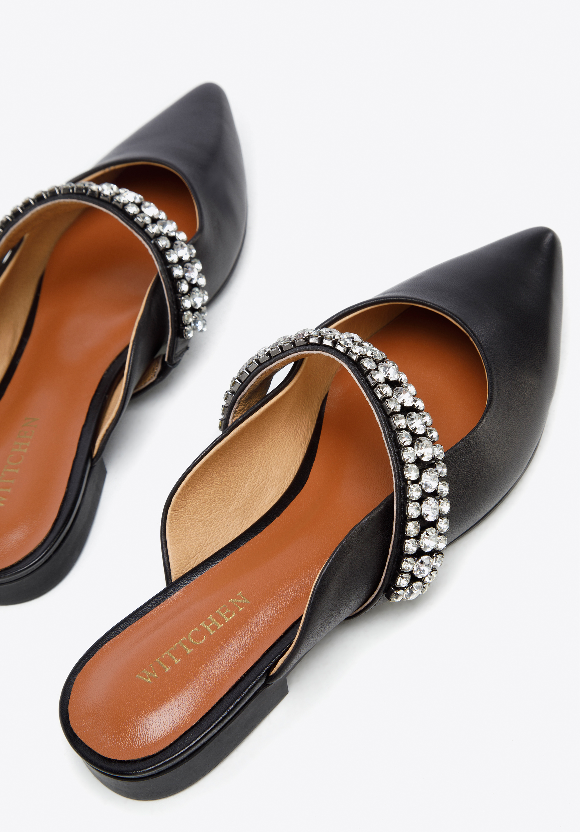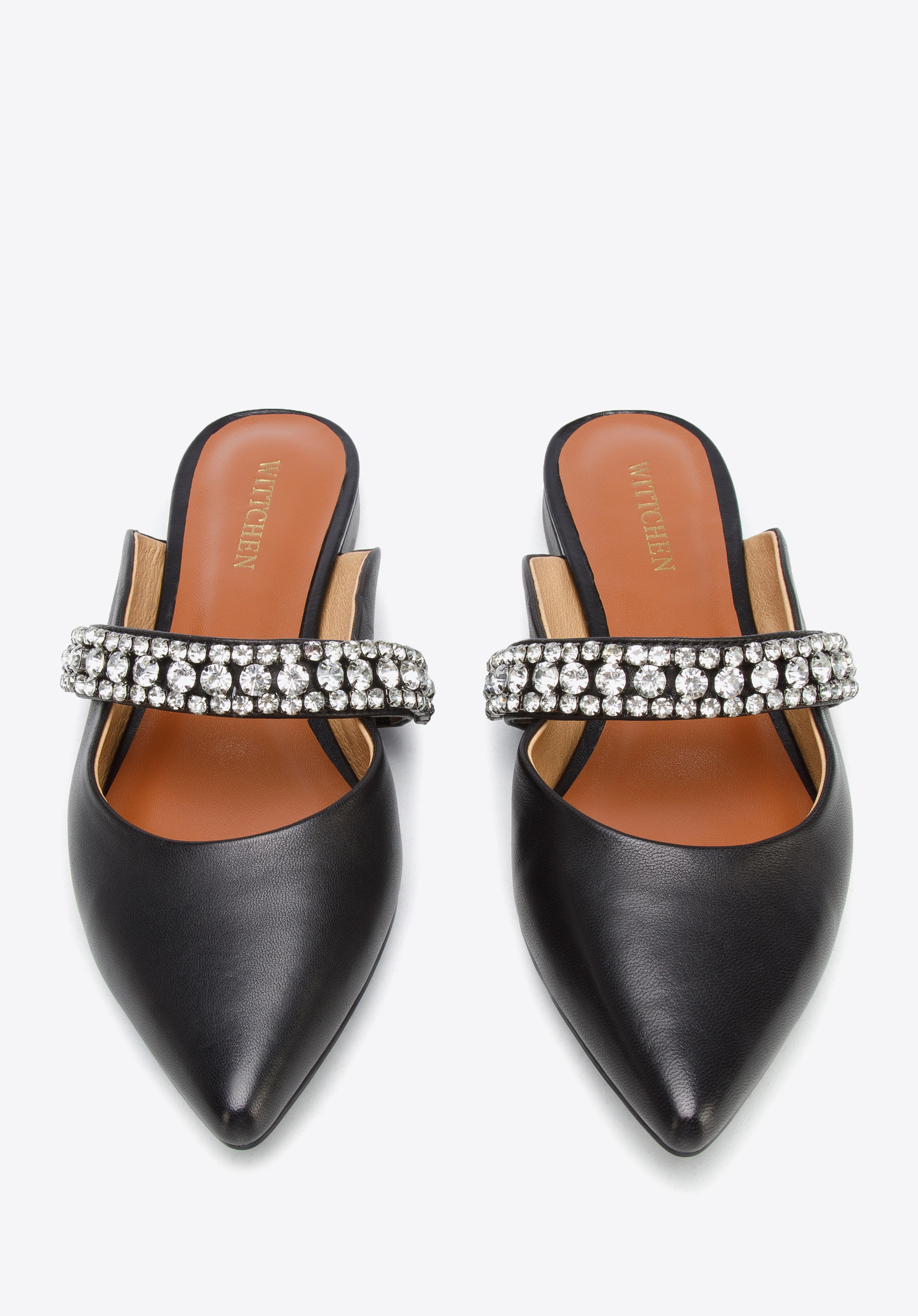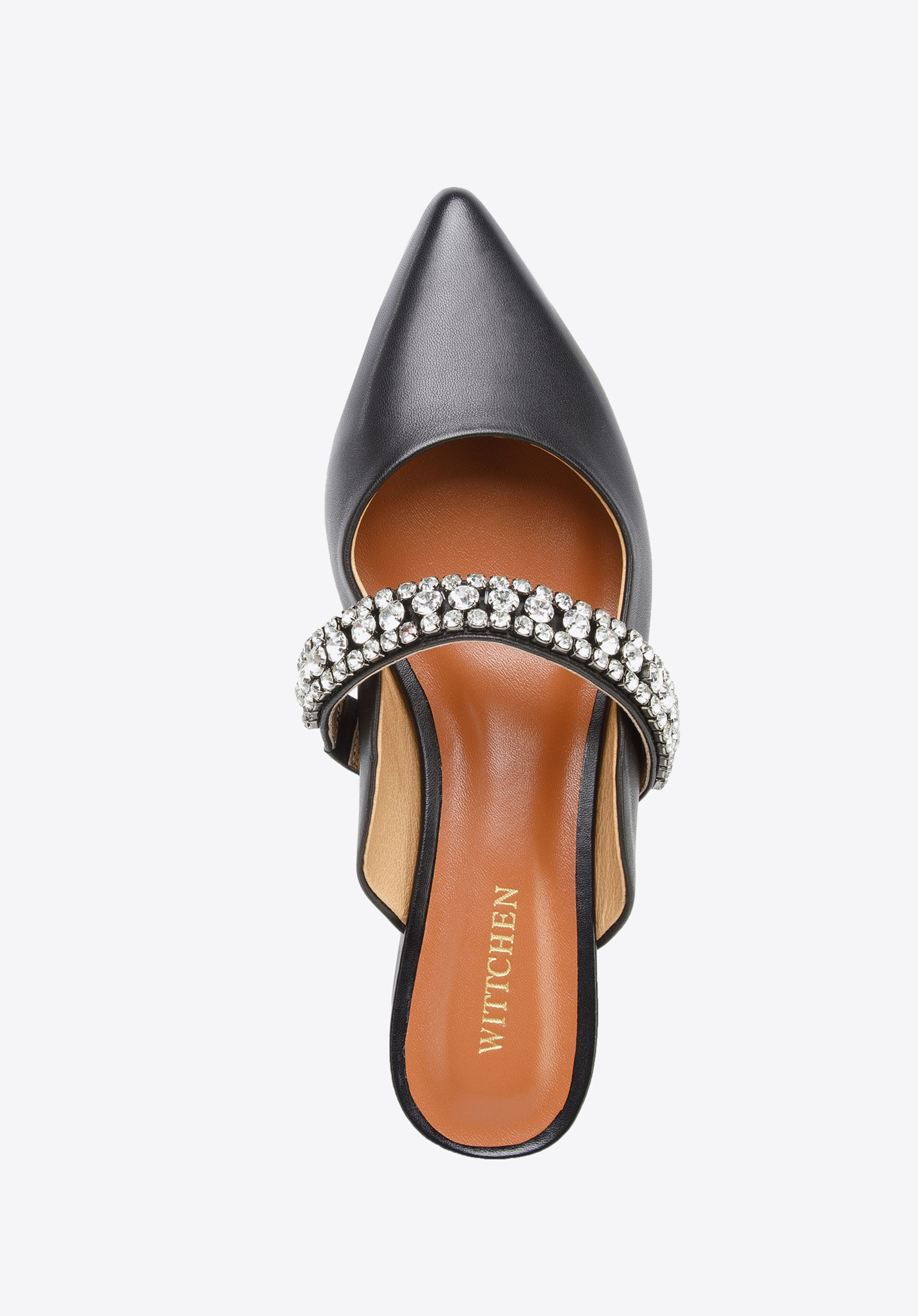 z veľmi kvalitnej prírodnej kože. Zdobí ich šperkový pásik z drobných trblietavých kryštálikov.