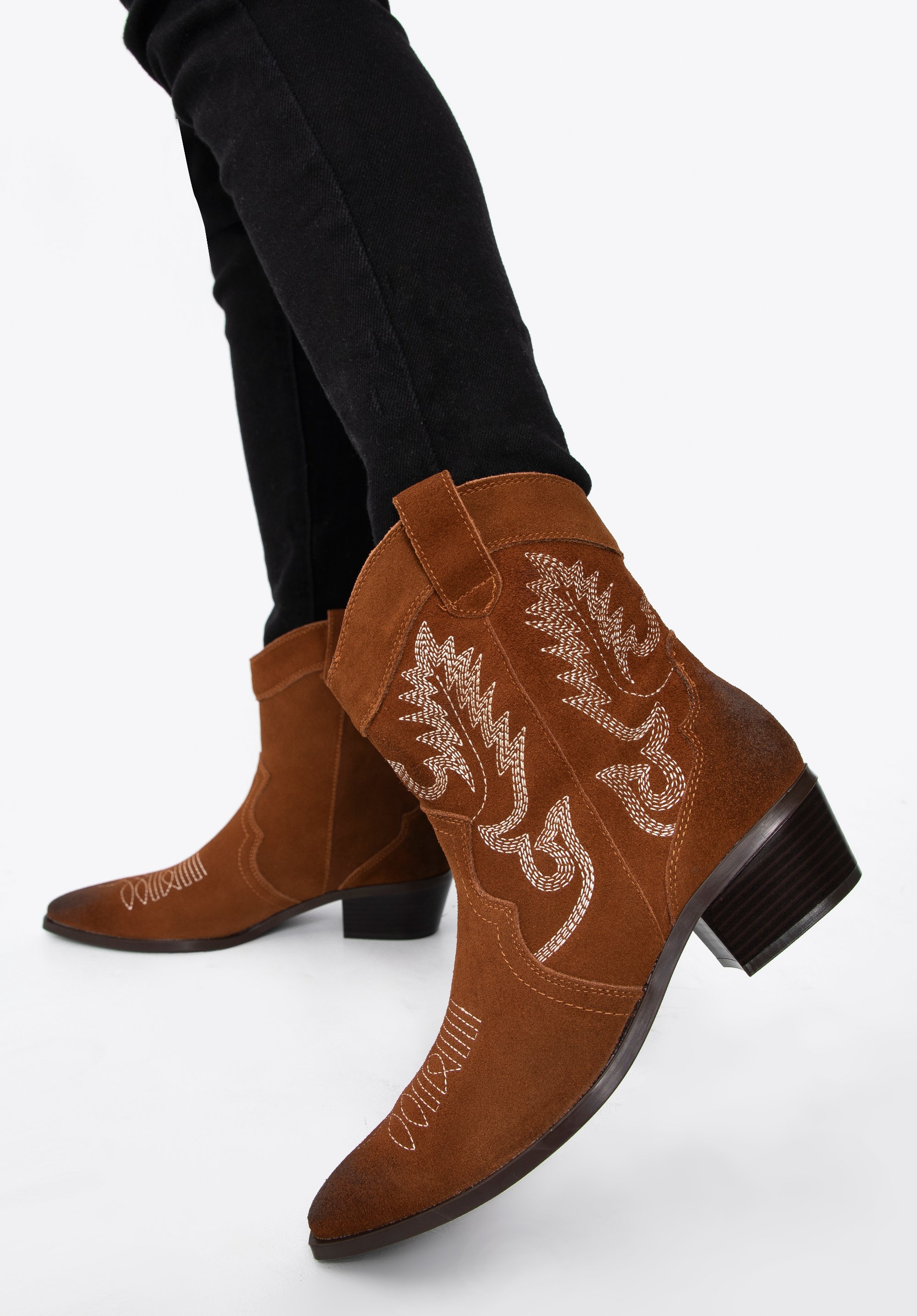 dámske semišové kovbojské čižmy s výšivkou môžete nosiť striedavo s obľúbenými členkovými čižmami, dodajú charakter každému vášmu outfitu.