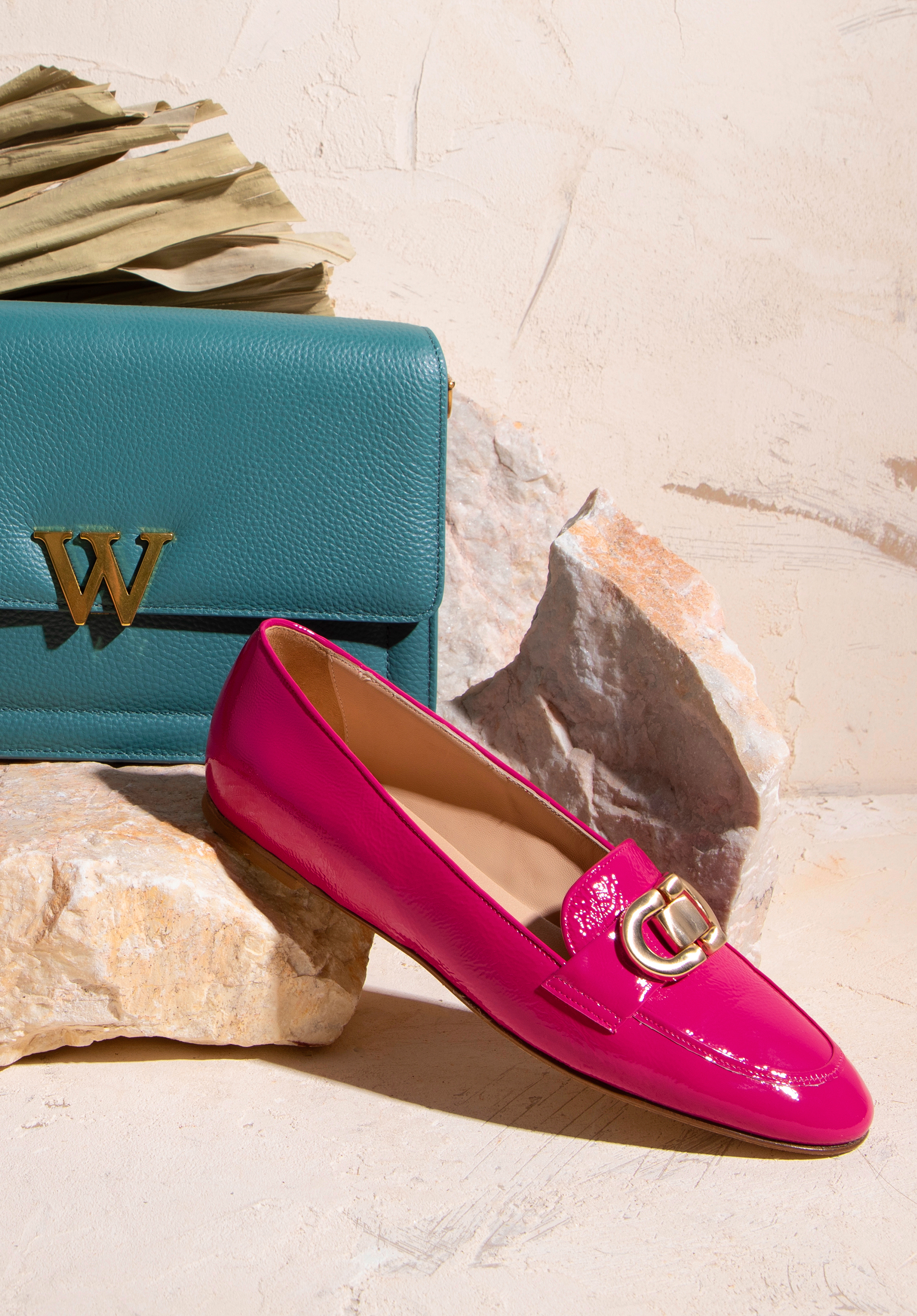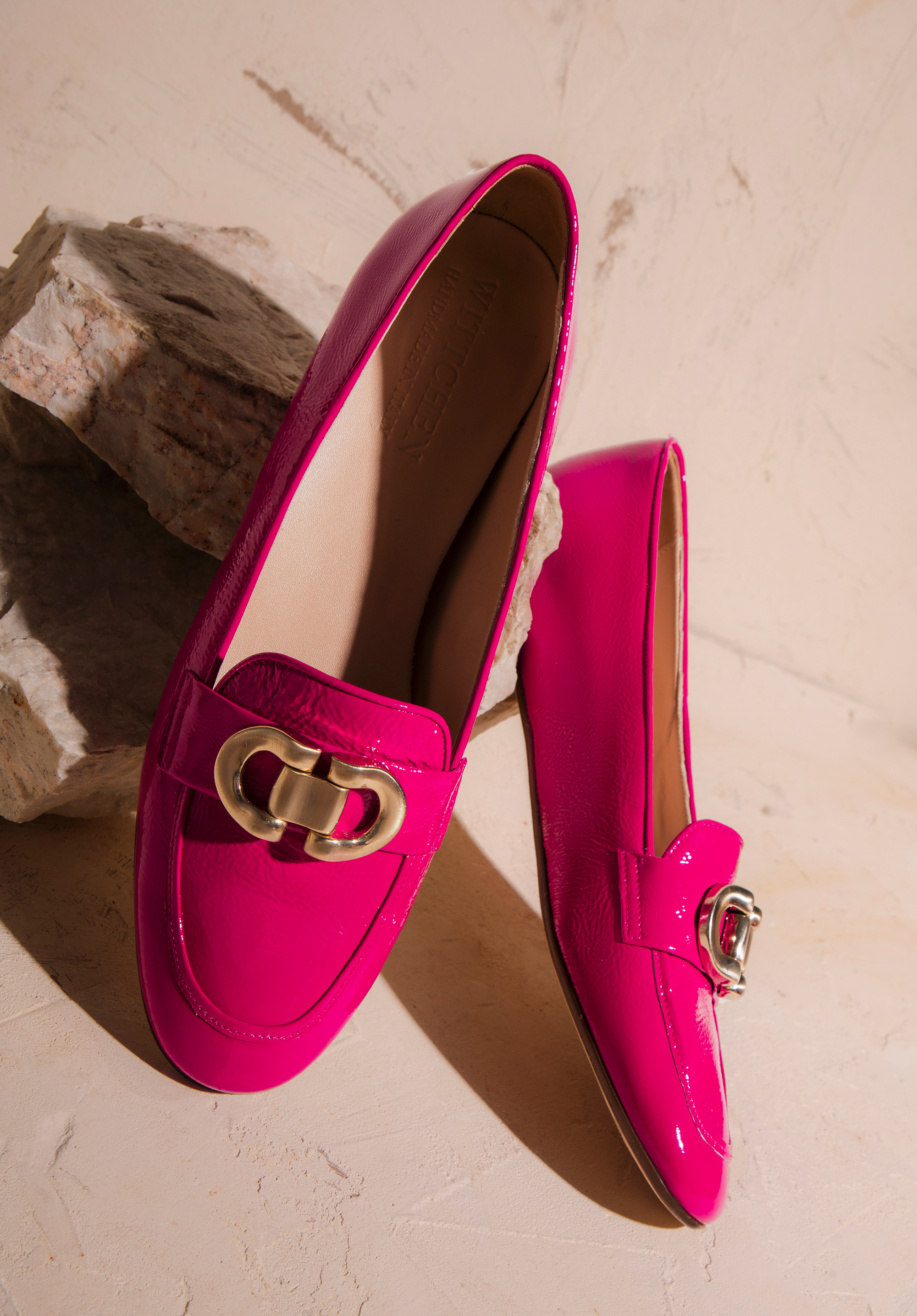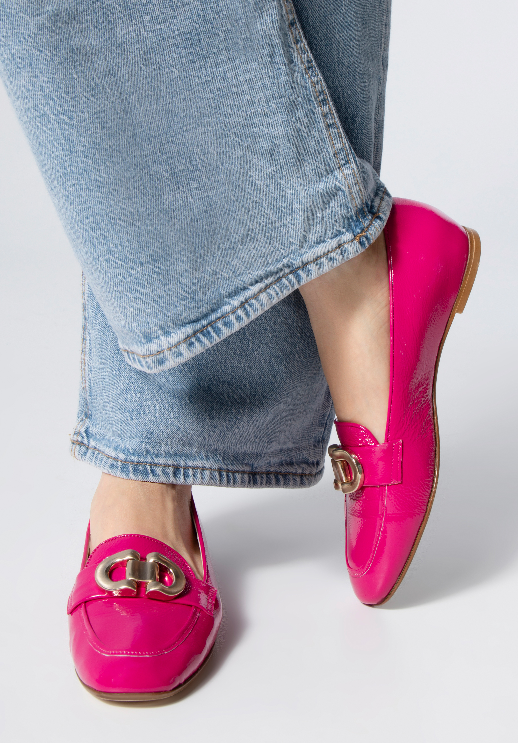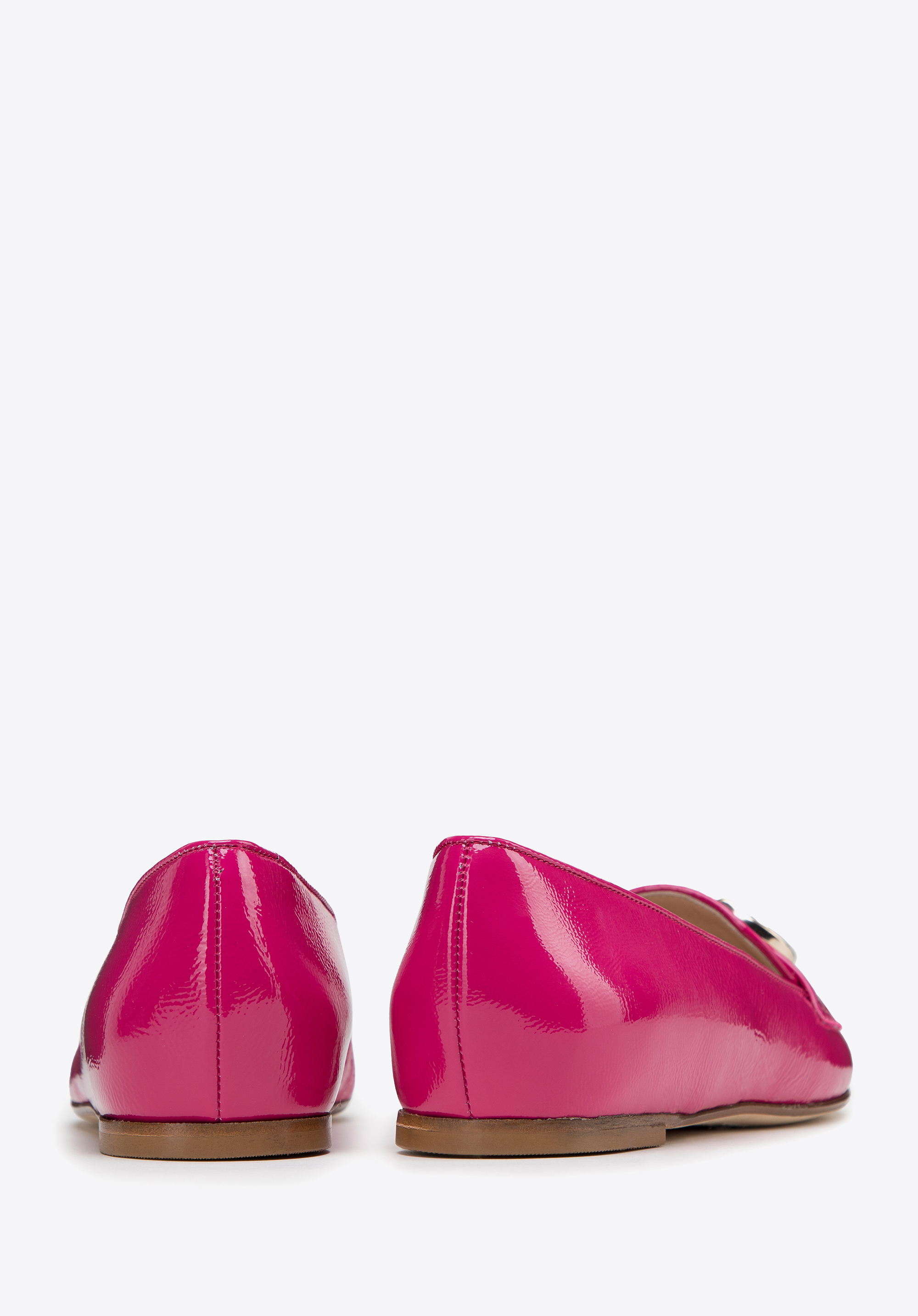 Dámske mokasíny z lakovanej kože s ozdobnou prackou sú skvelou náhradou za každodenné