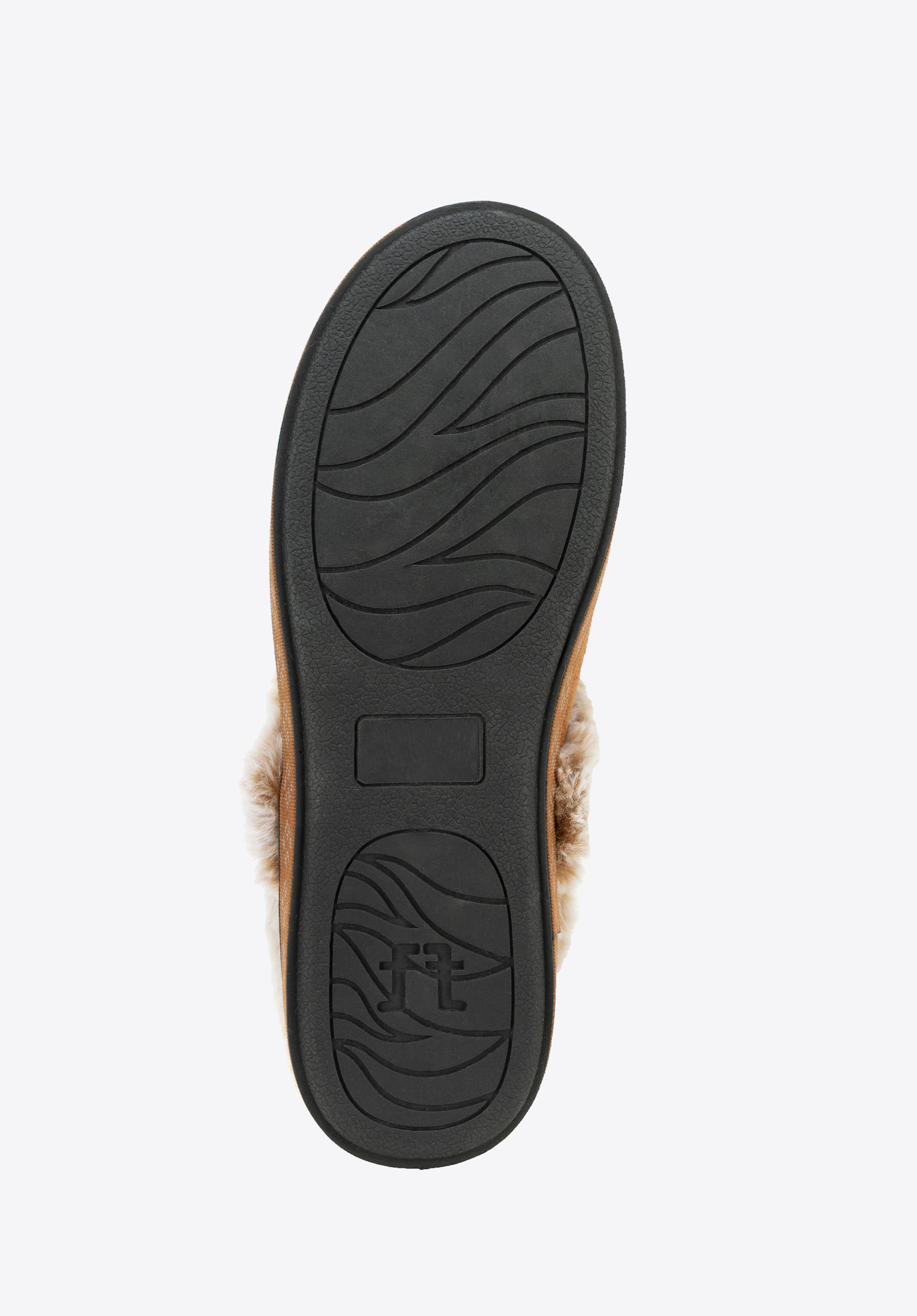 Objavte dámske papuče, v ktorých sa spája elegancia s výnimočným pohodlím. Tieto dámske topánky sú ideálnou voľbou pre ženy, ktoré hľadajú luxus vo svojom dome. Výnimočná podšívka z umelej kožušiny poskytuje pozoruhodné teplo a mäkkosť pre vaše nohy každý deň. Vďaka svojmu elegantnému dizajnu a jemnému vzoru na medzipodrážke sú tieto papuče ideálnym doplnkom každého spoločenského oblečenia.