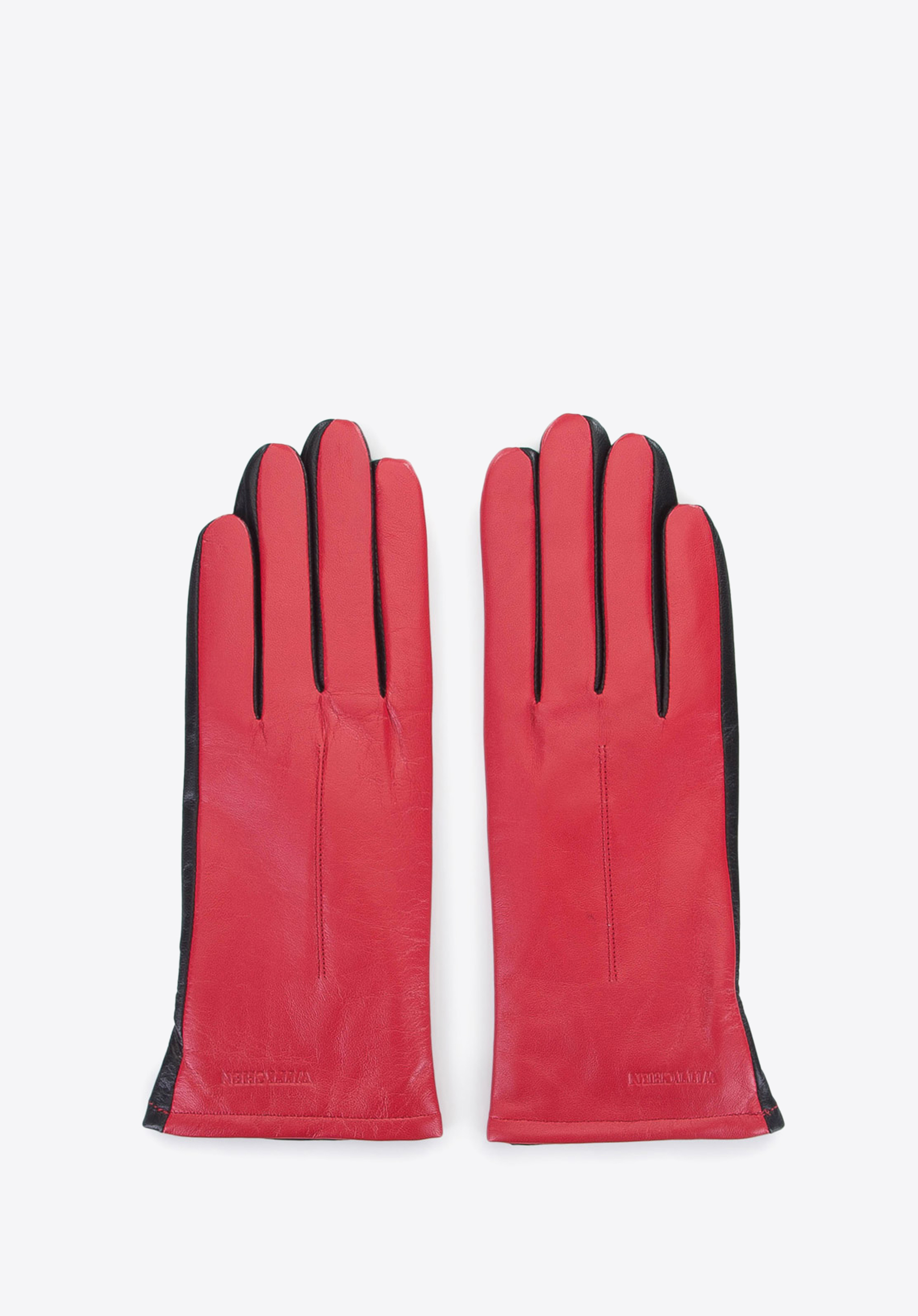 Dvojfarebné kožené rukavice.