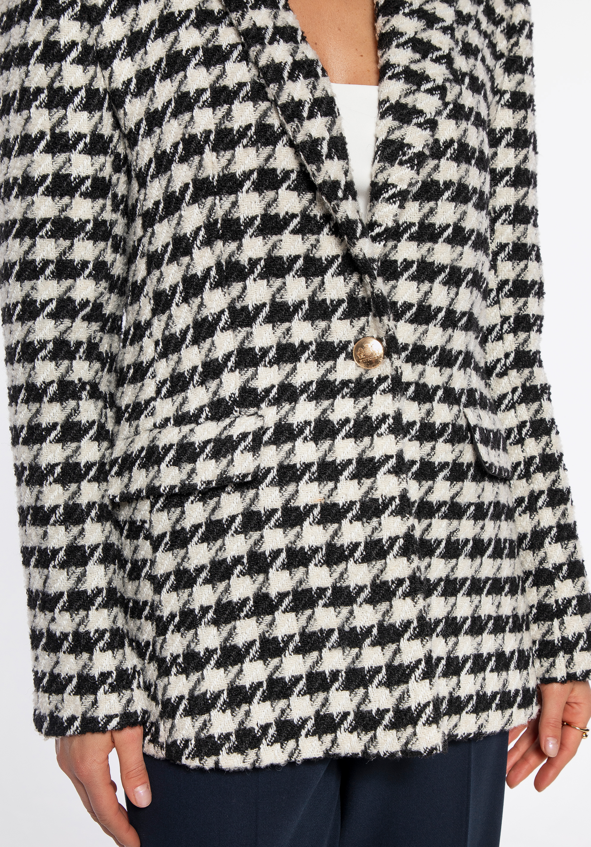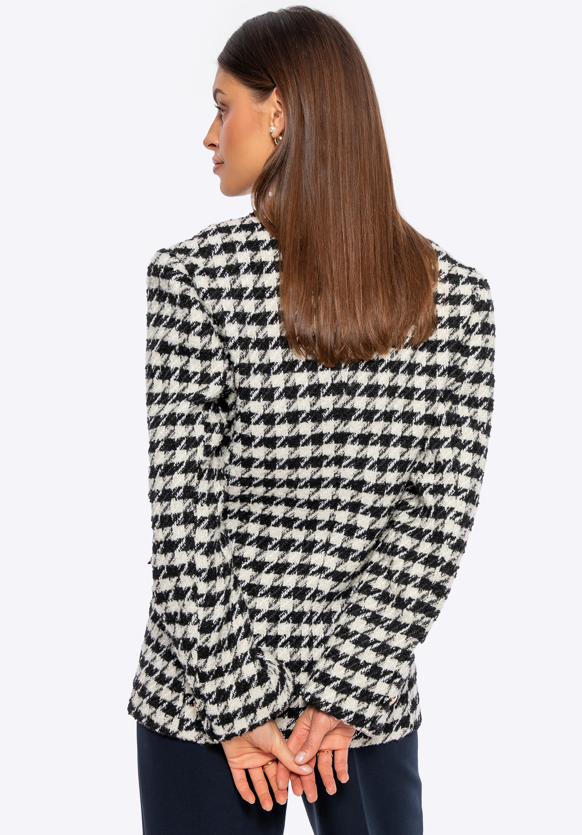 Kockovaný sako z buklé s ozdobnými gombíkmi