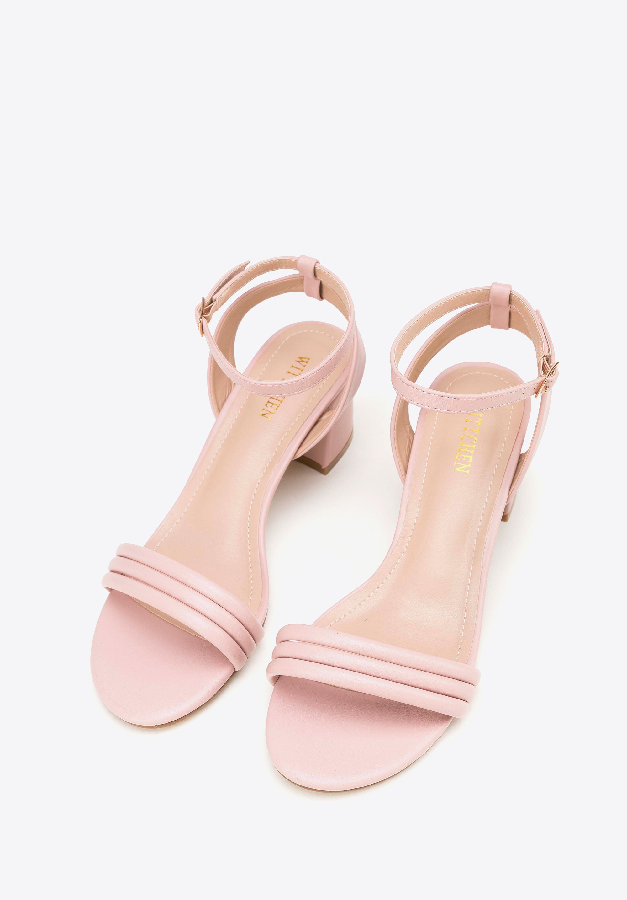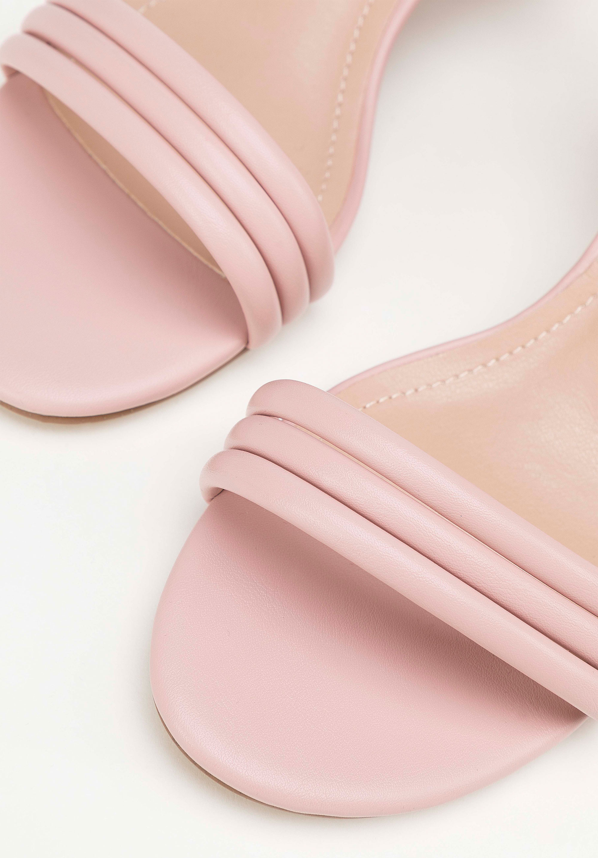 Dámske sandále s remienkami na stĺpiku vo vyblednutej ružovej