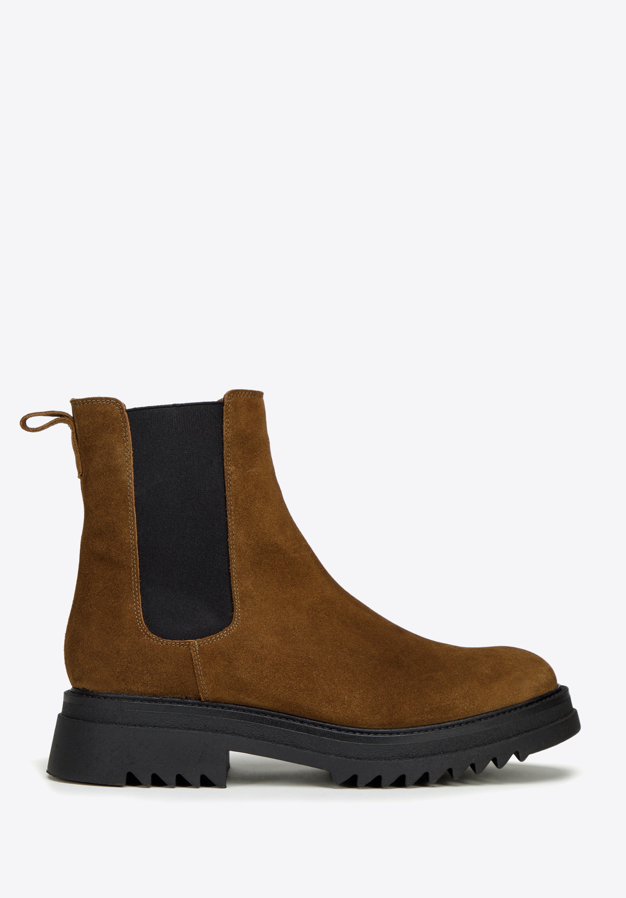 Dámske semišové chelsea čižmy na hrubej podrážke hnedé