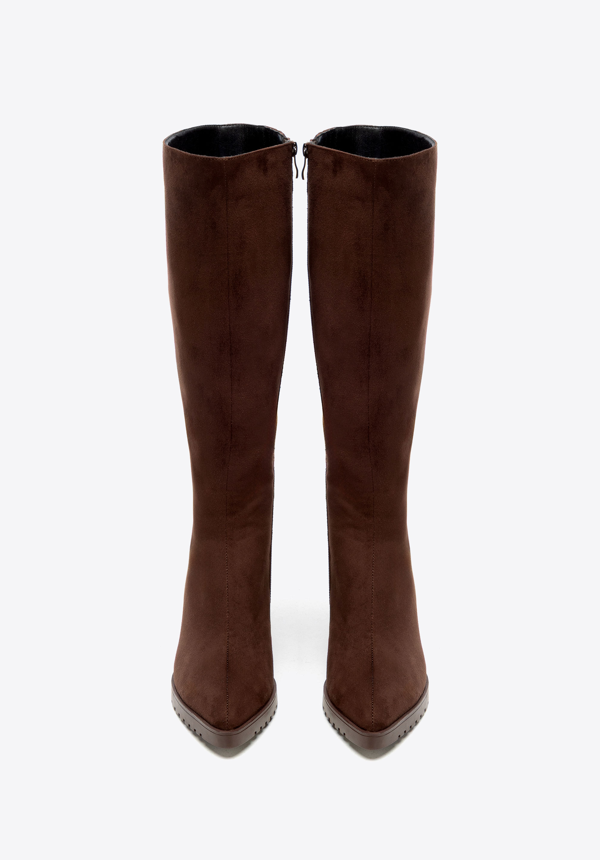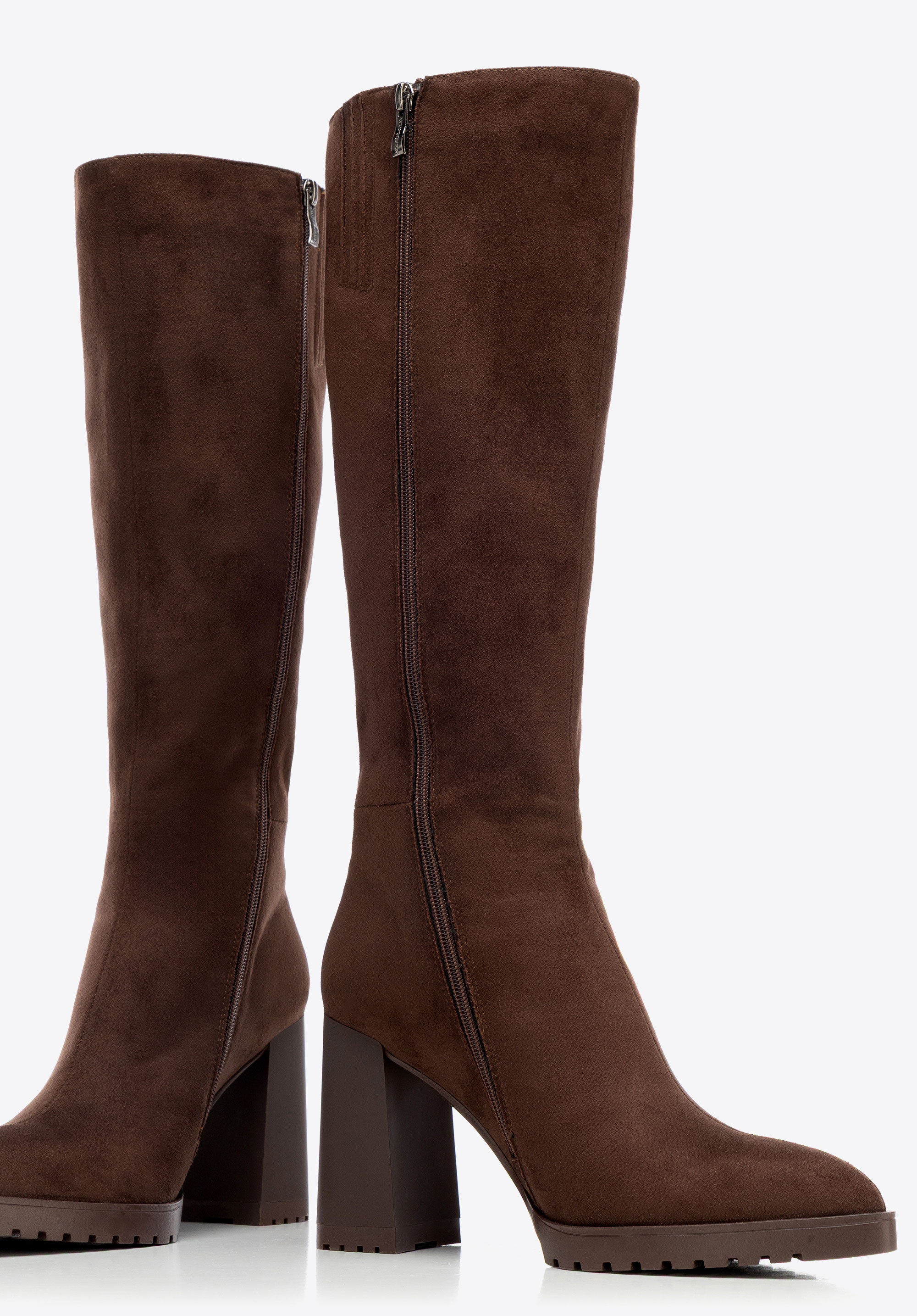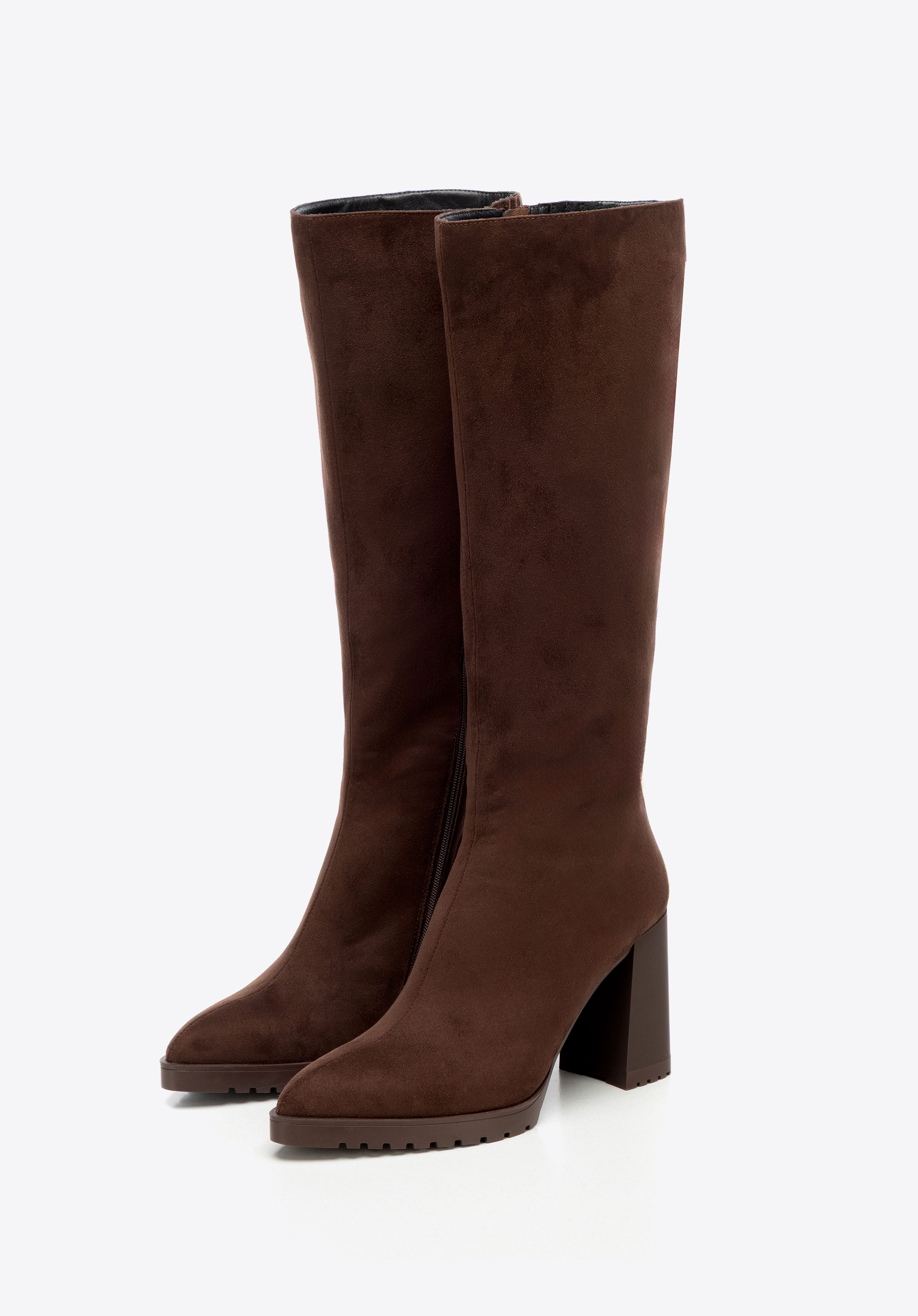 Zvoľte si nadčasovú eleganciu a pohodlie s našimi dámskymi čižmami vyrobenými z vysoko kvalitného semišu . Ich elegantná silueta a ženský dizajn z nich robia perfektný doplnok k každodenným outfitom aj večerným outfitom. Stabilný blokový podpätok ponúka dlhotrvajúce pohodlie, zatiaľ čo špicatá špička jemne predlžuje nohy a zvýrazňuje postavu.