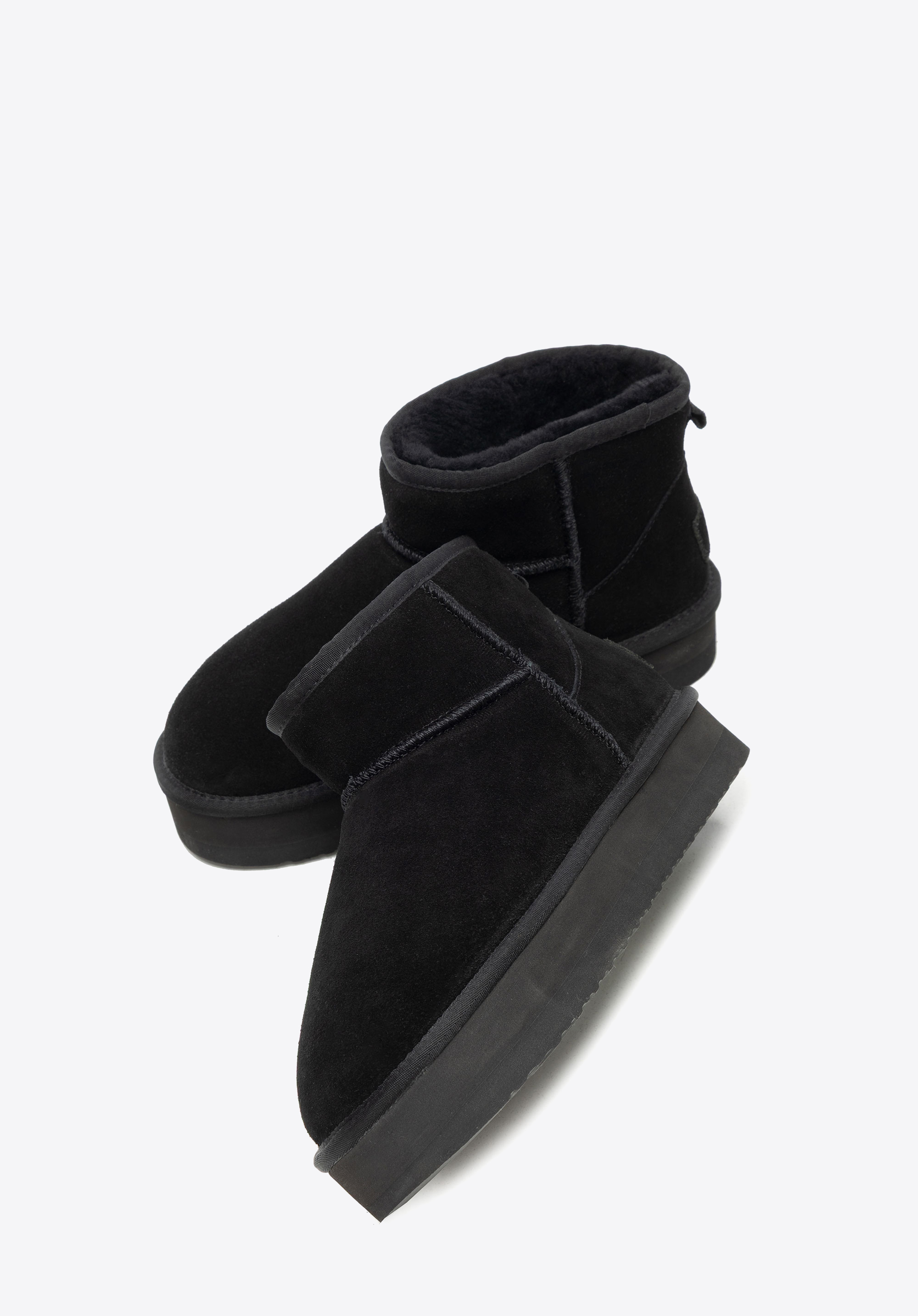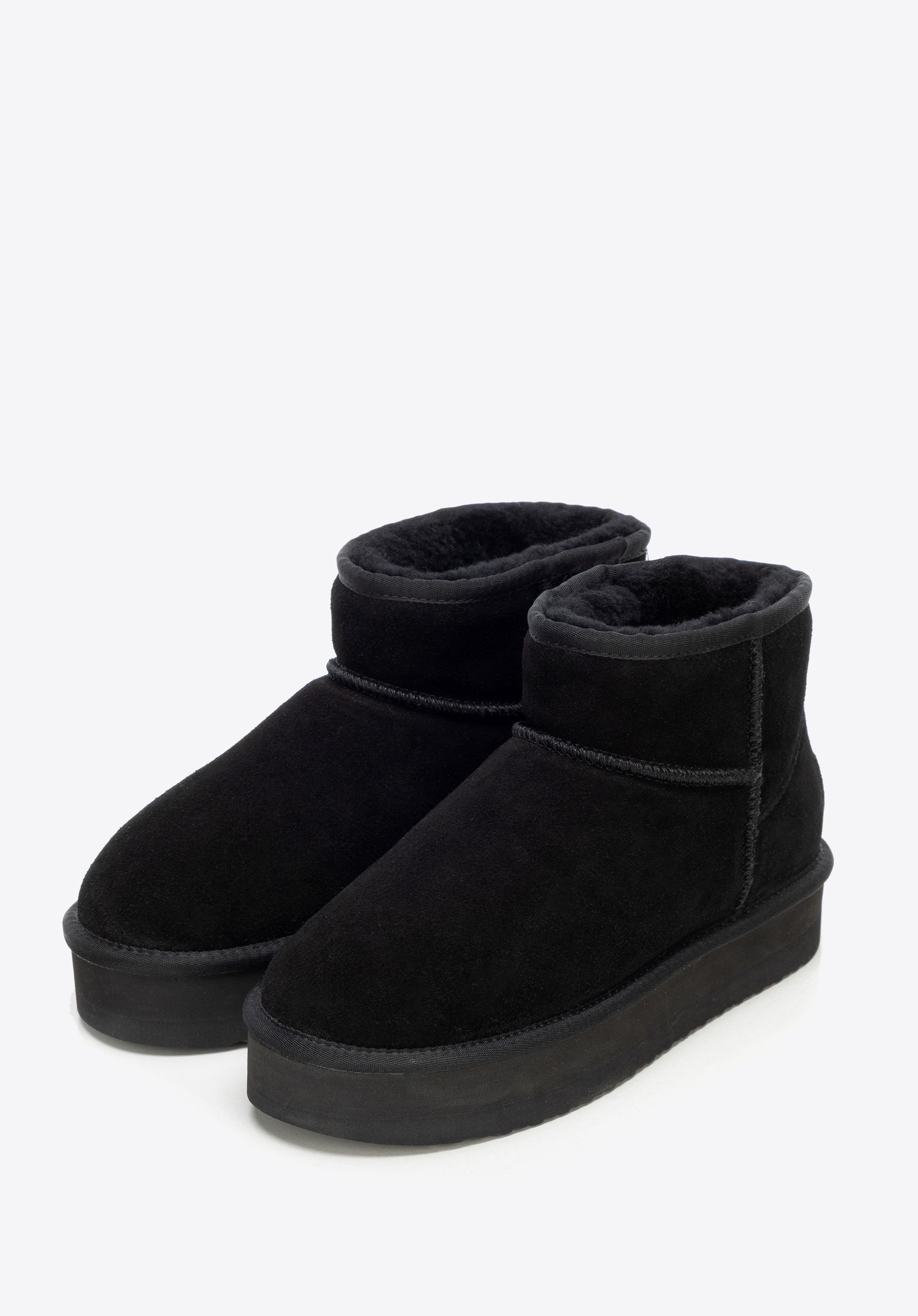 Dámske semišové členkové čižmy na platforme Farba: čierna