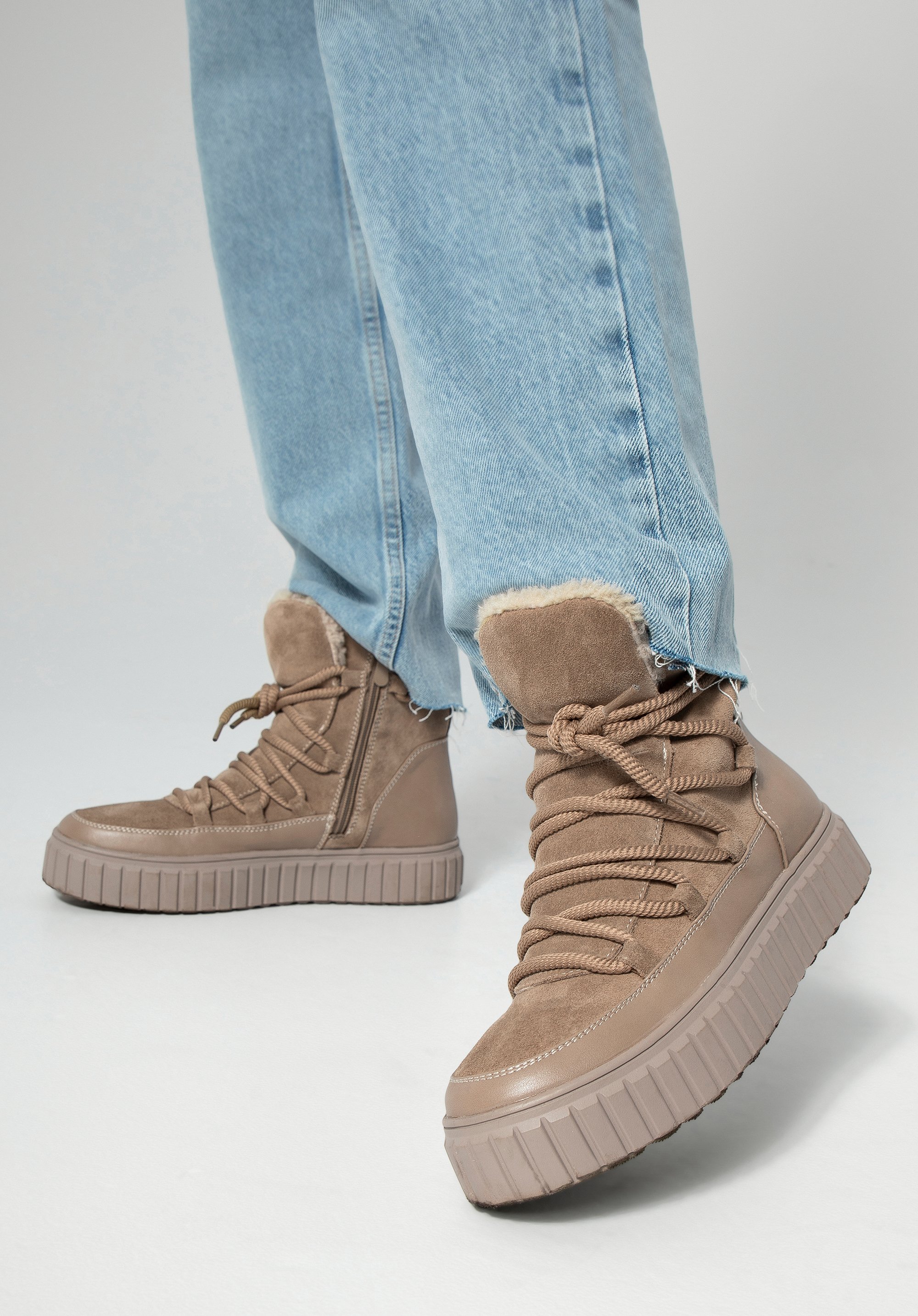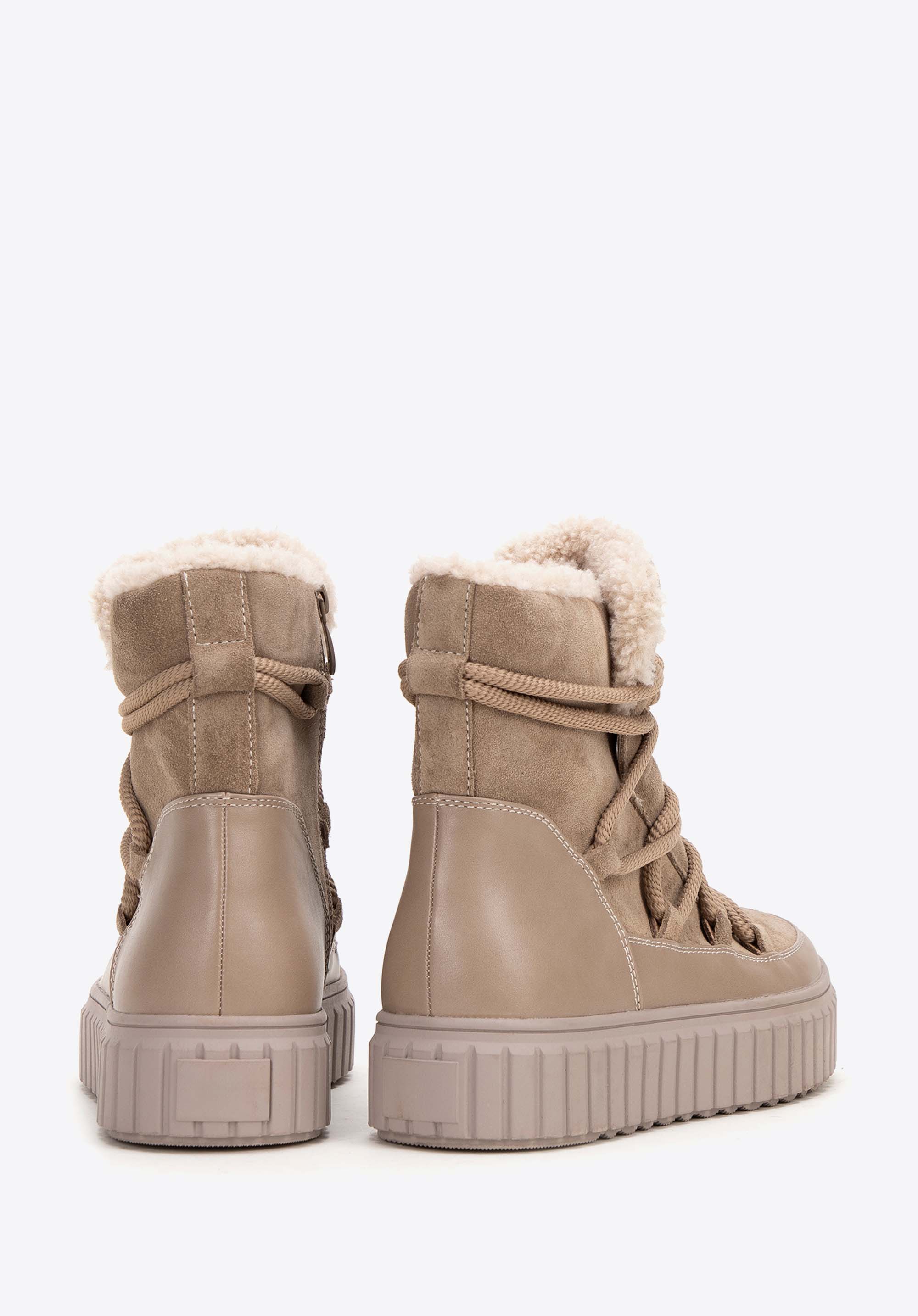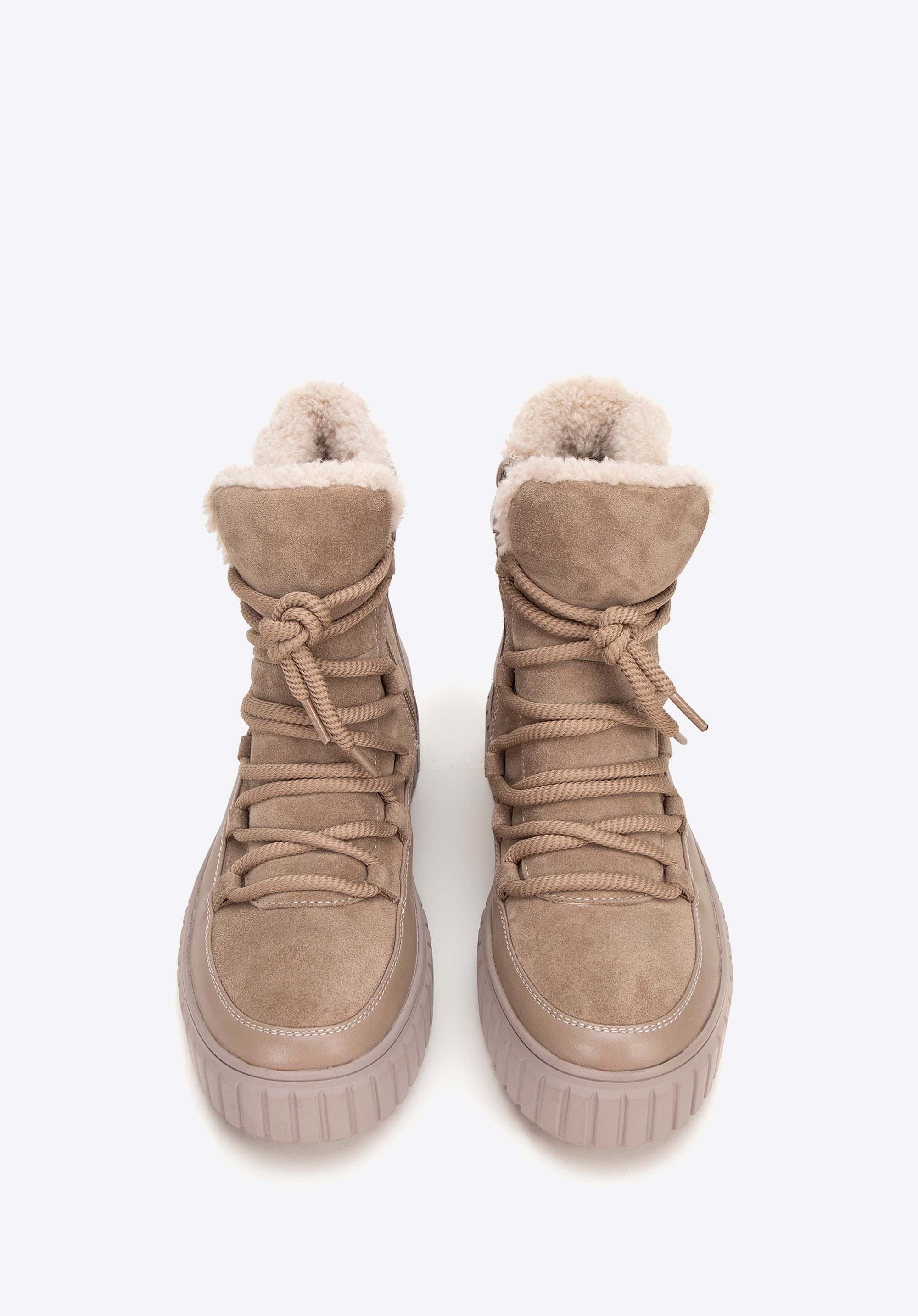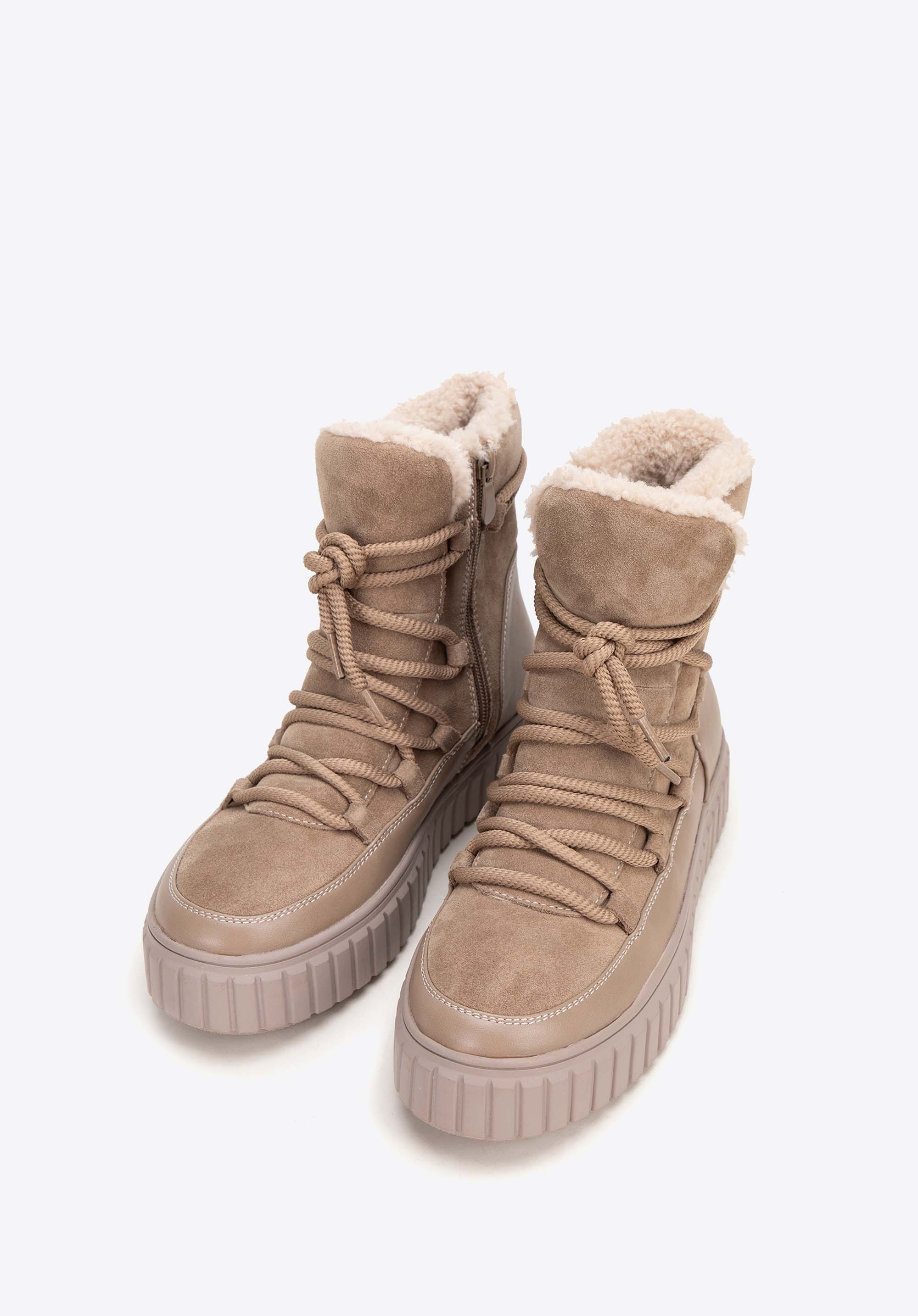 Elegantné semišové členkové čižmy s podšívkou z umelej kožušiny