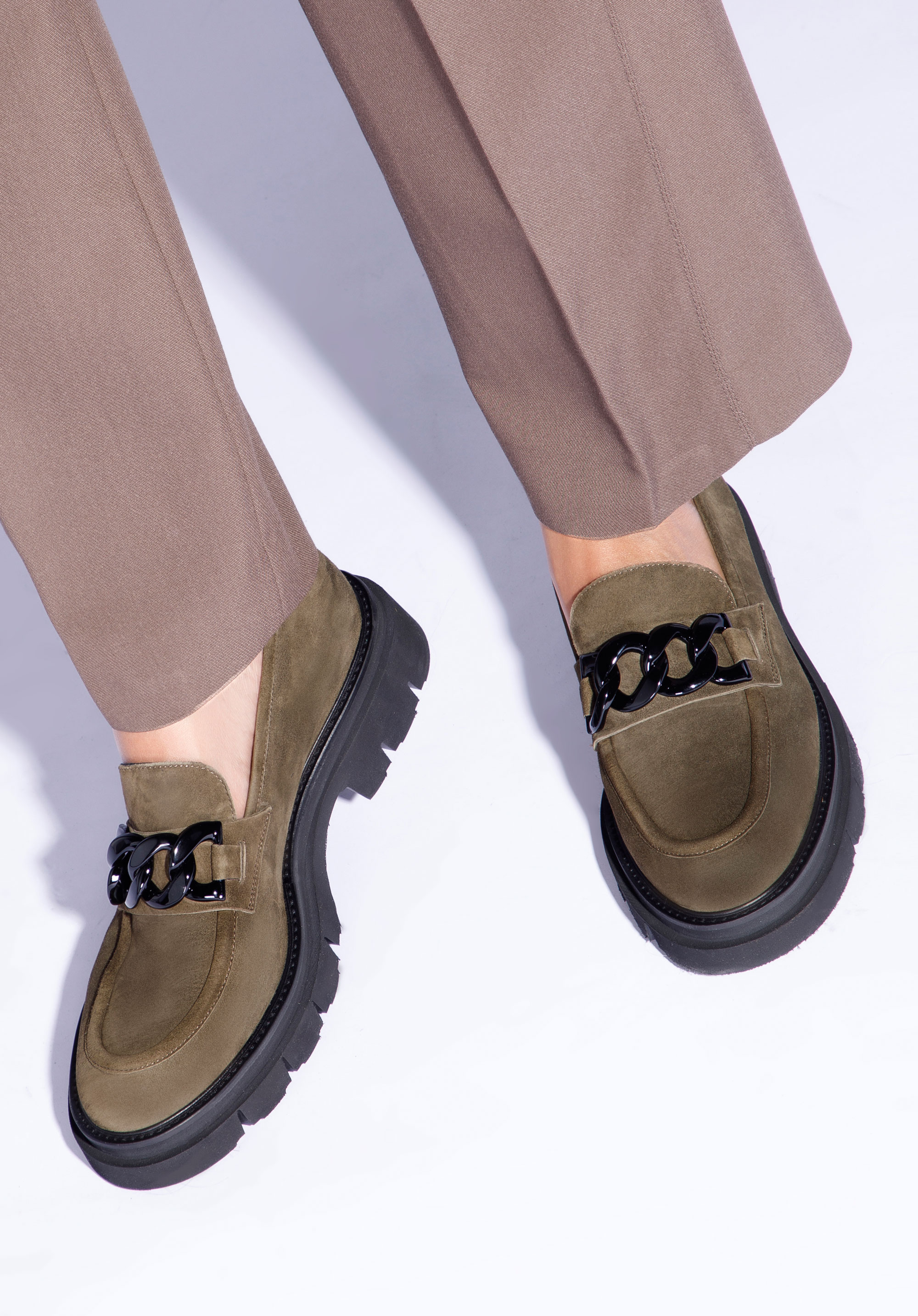 jemne lesklou retiazkou s veľkými článkami. Podrážka s výrazným dezénom je prekvapivo ľahká, takže budete v nich pohodlne chodiť celý deň. Sú to skvelé topánky na každý deň do práce aj po práci: k chino nohaviciam aj k minisukni.