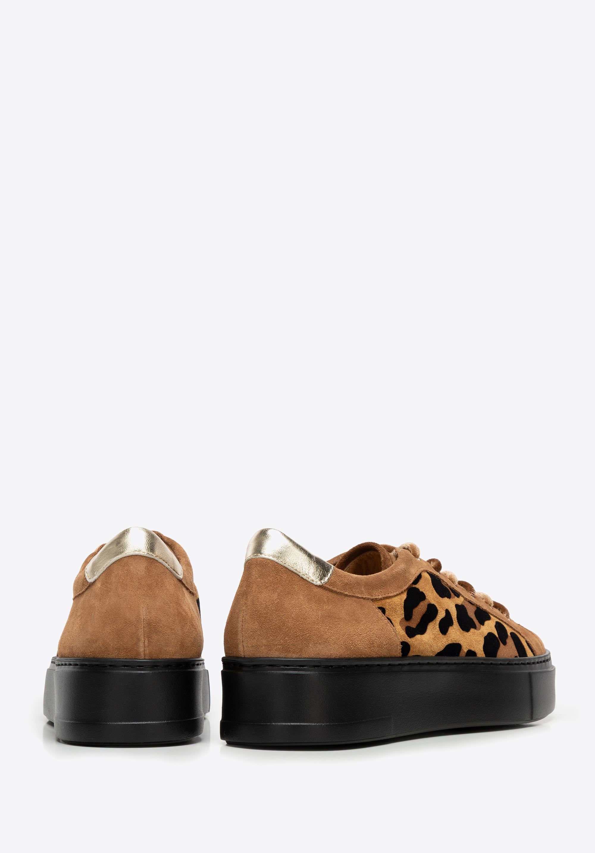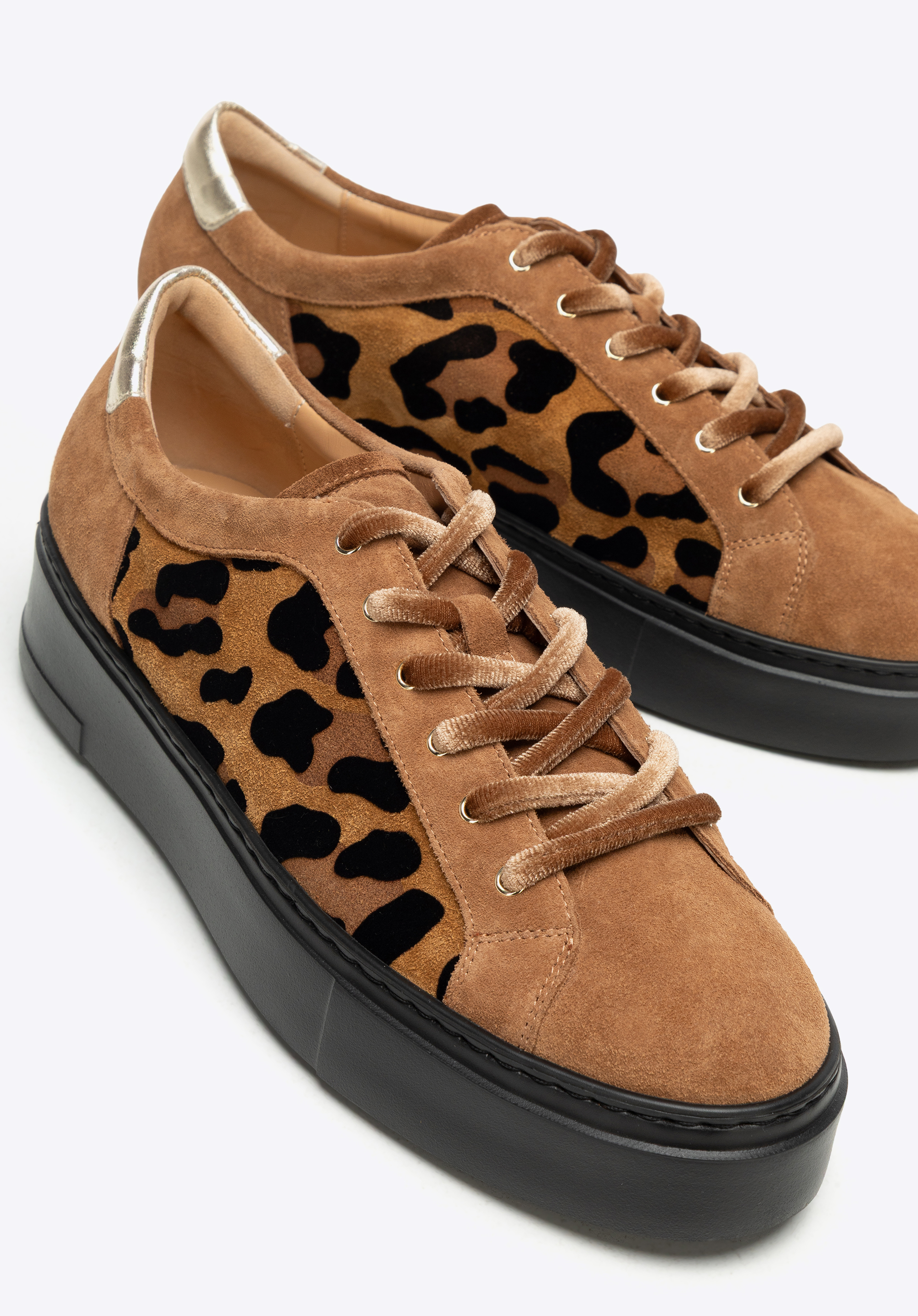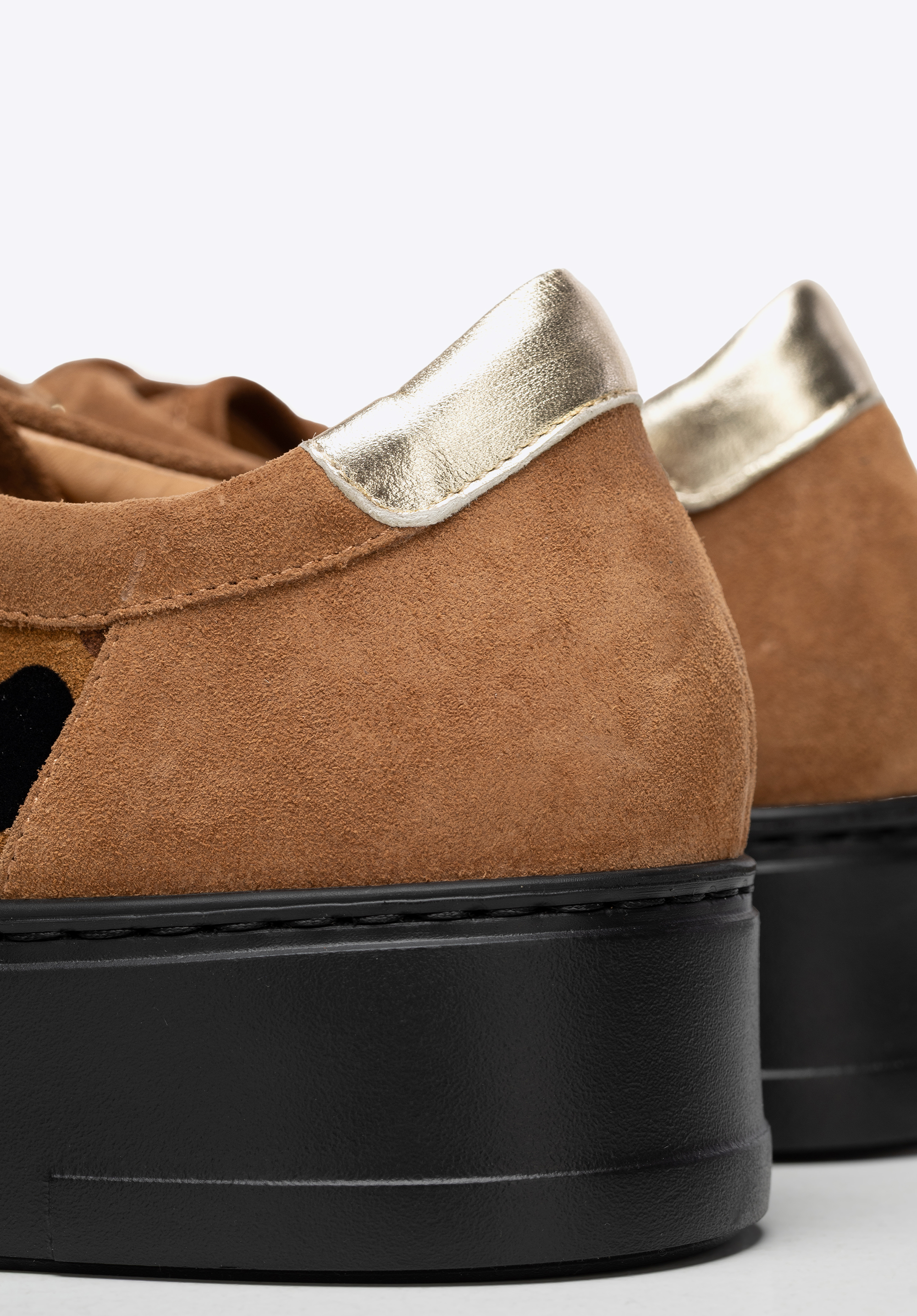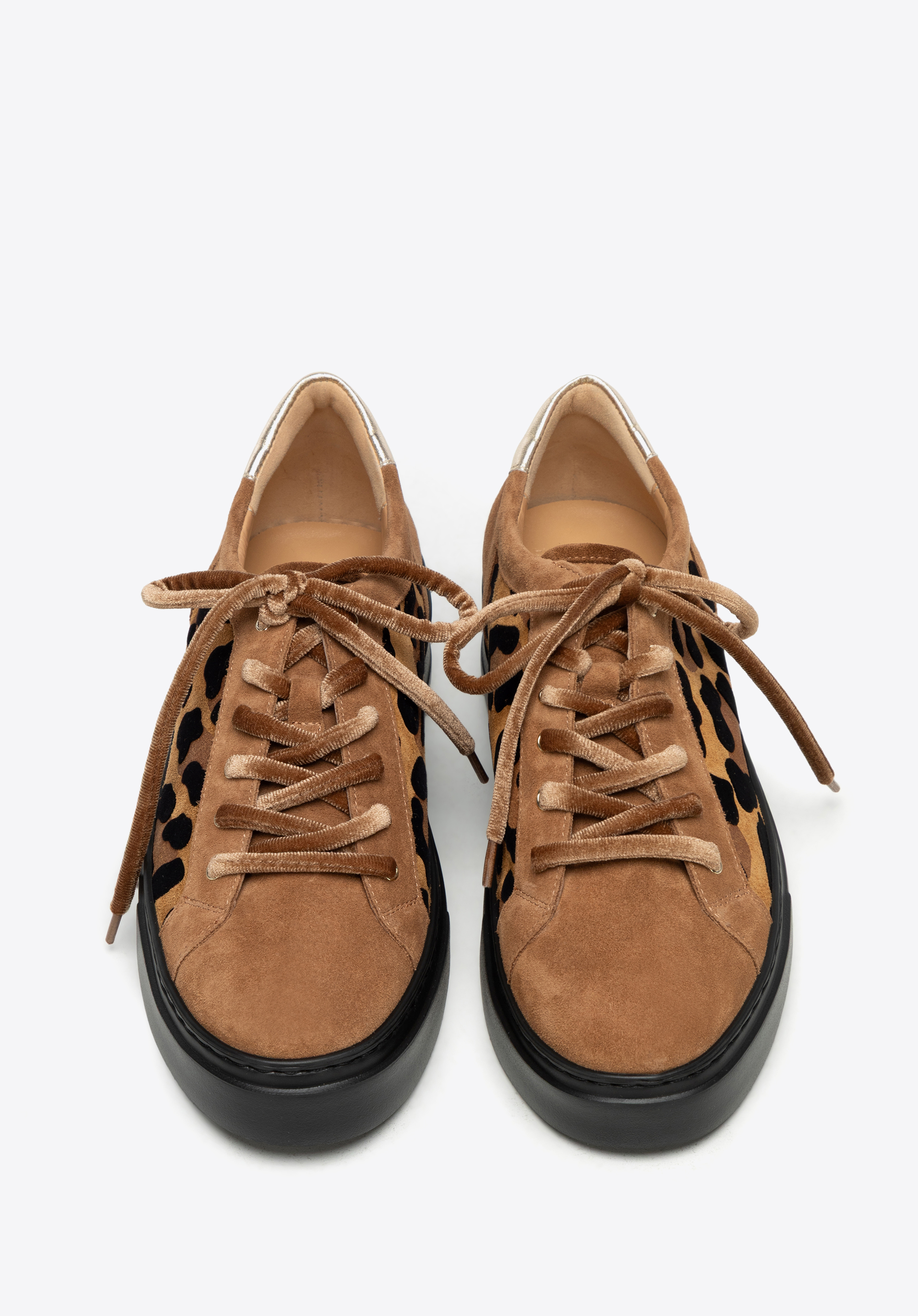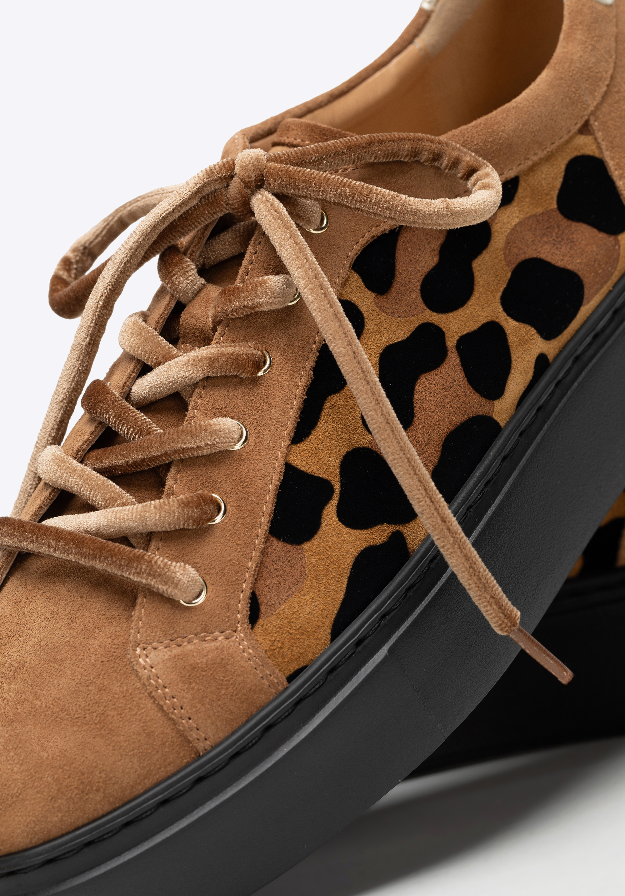 Tieto tenisky sú dokonalou zmesou decentnej elegancie a každodenného pohodlia. Prírodná semišová koža poteší svojou mäkkou, zamatovou textúrou a hlbokou, sýtou farbou, ktorá dodáva dizajnu rafinovaný nádych. Šnúrky v zladenom odtieni vytvárajú čistý, minimalistický detail, ktorý dokonale dopĺňa dizajn. Okrúhla špička ponúka slobodu pohybu, zatiaľ čo kožená stielka a podšívka zaisťujú celodenné pohodlie. Na platforme nenápadne dodávajú výšku bez toho, aby boli pri každom kroku ohrozené stabilitou alebo ľahkosťou.