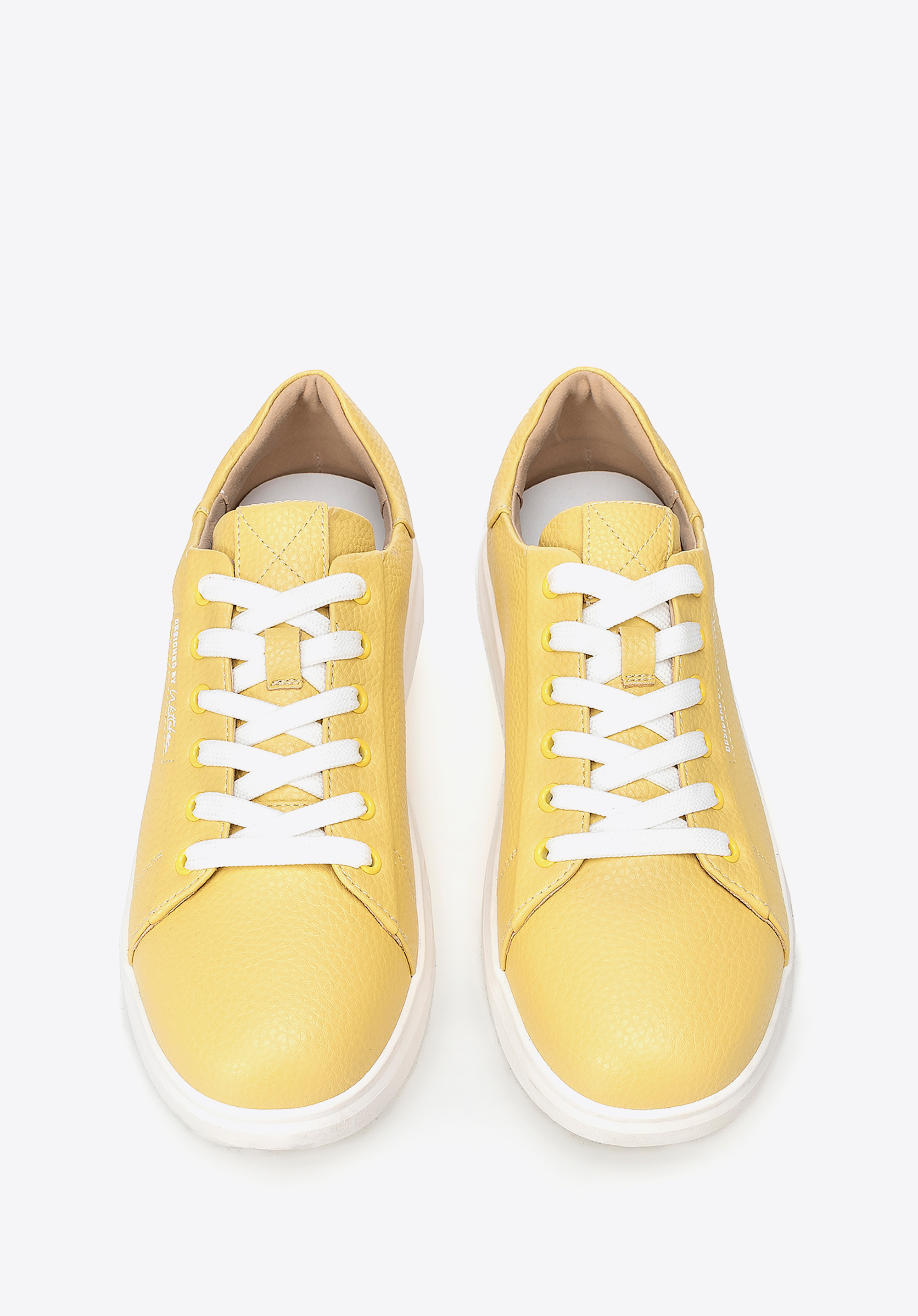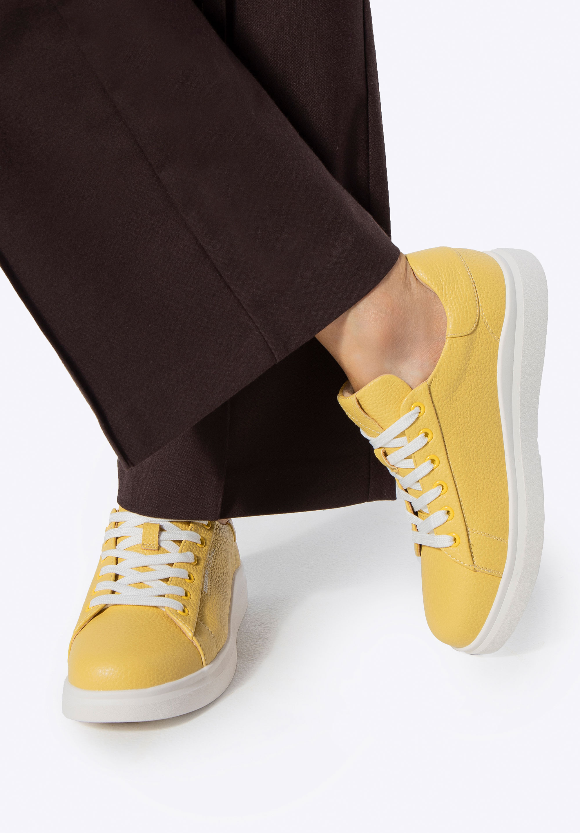 Tieto elegantné dámske tenisky spájajú pohodlie s trendy dizajnom a ponúkajú špičkovú kvalitu na každodenné nosenie. Sú vyrobené z umelej kože , sú trvácne, odolné voči poškodeniu a ľahko sa udržiavajú. Ich moderný vzhľad dokonale zapadá do najnovších trendov. Šnurovací dizajn so zaoblenou špičkou sa dobre prispôsobia nohe a zaistia celodenné pohodlie. Podošva na platforme vyrobená z gumy, zdobená drážkami v tvare srdca , poskytuje nielen stabilitu a priľnavosť, ale dodáva topánkam jedinečný charakter.