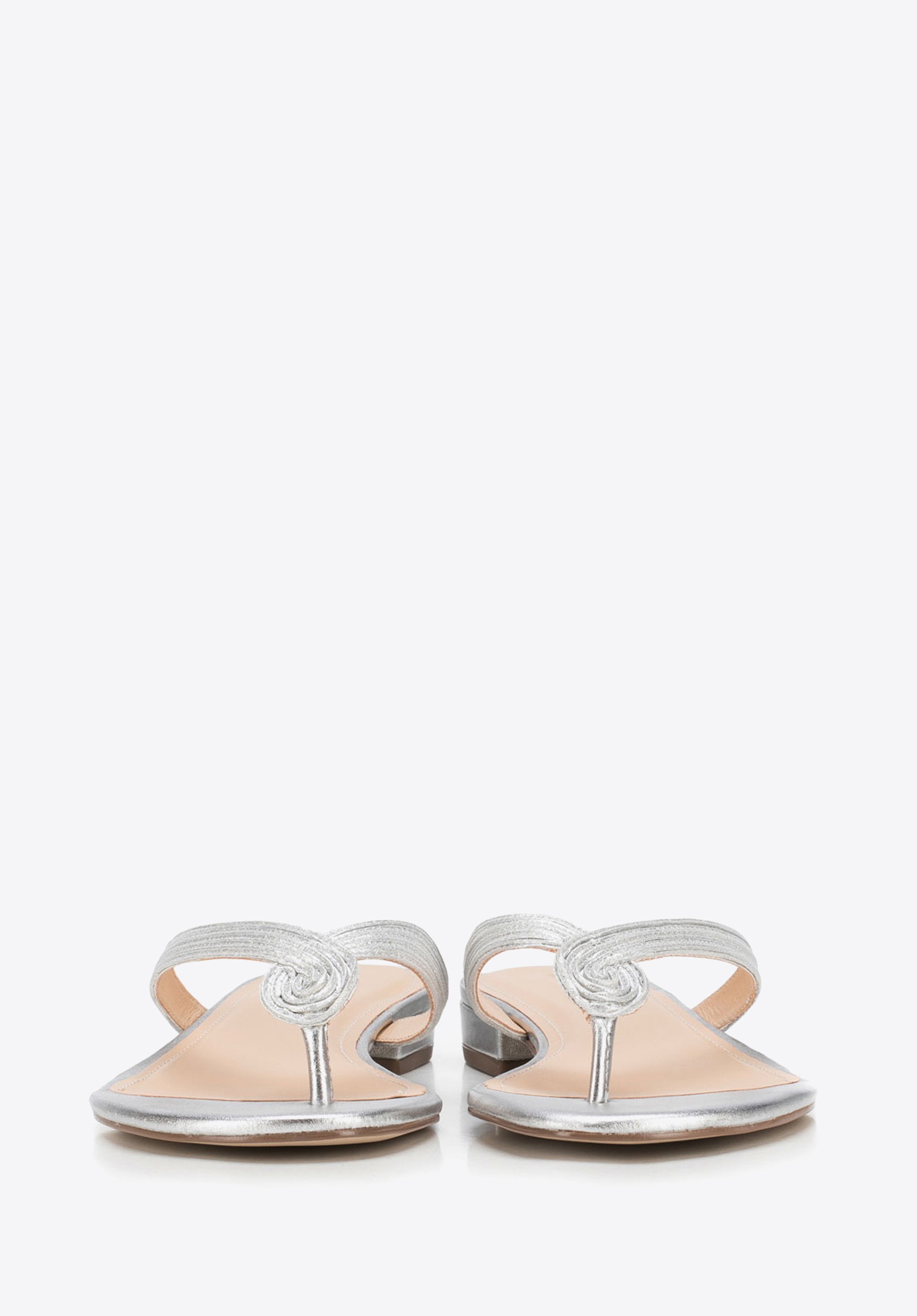 Jemné šľapky s ozdobným drážkovaným remienkom štýlovo doplnia každú vašu štylizáciu. Letný model bol ručne vyrobený