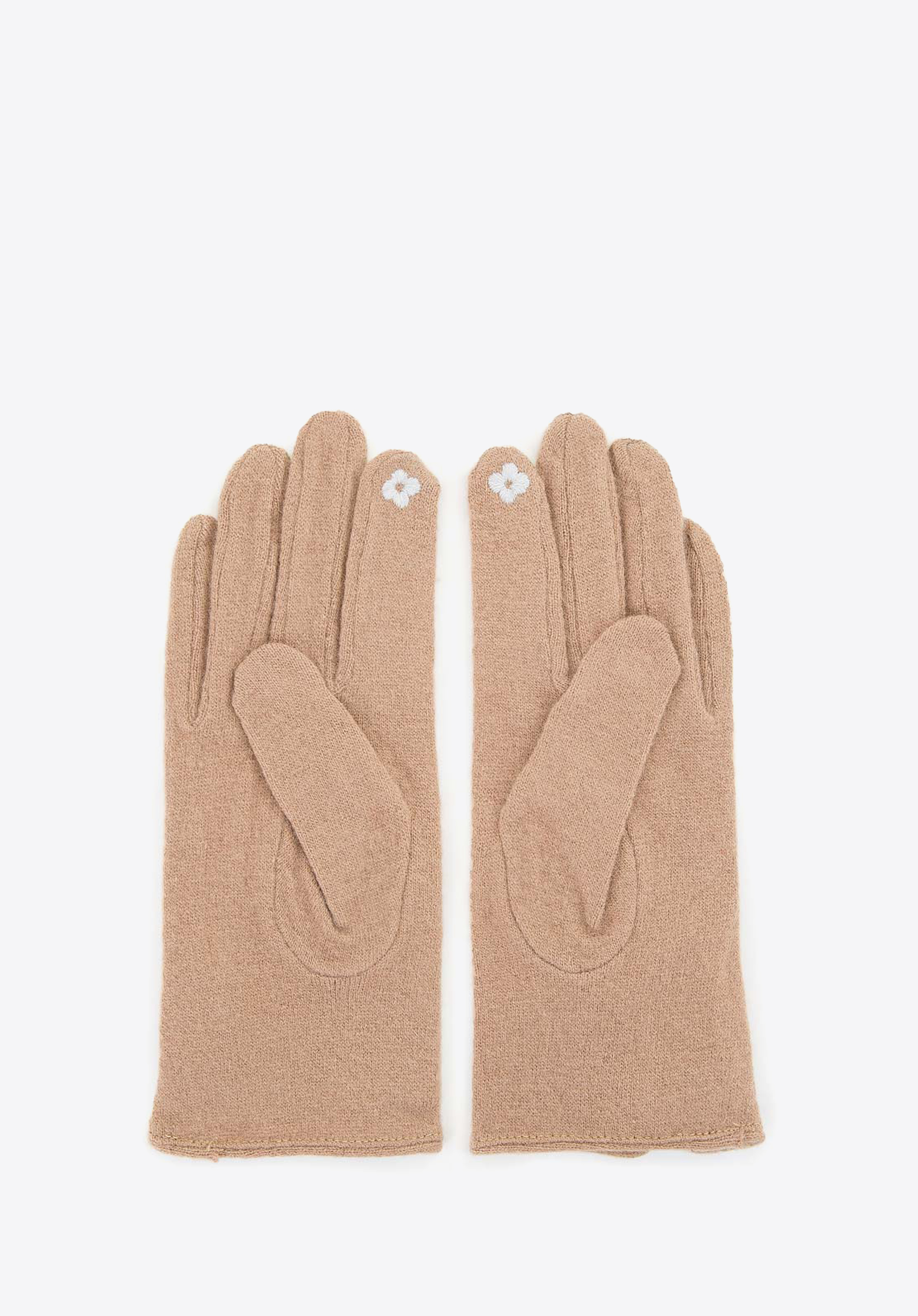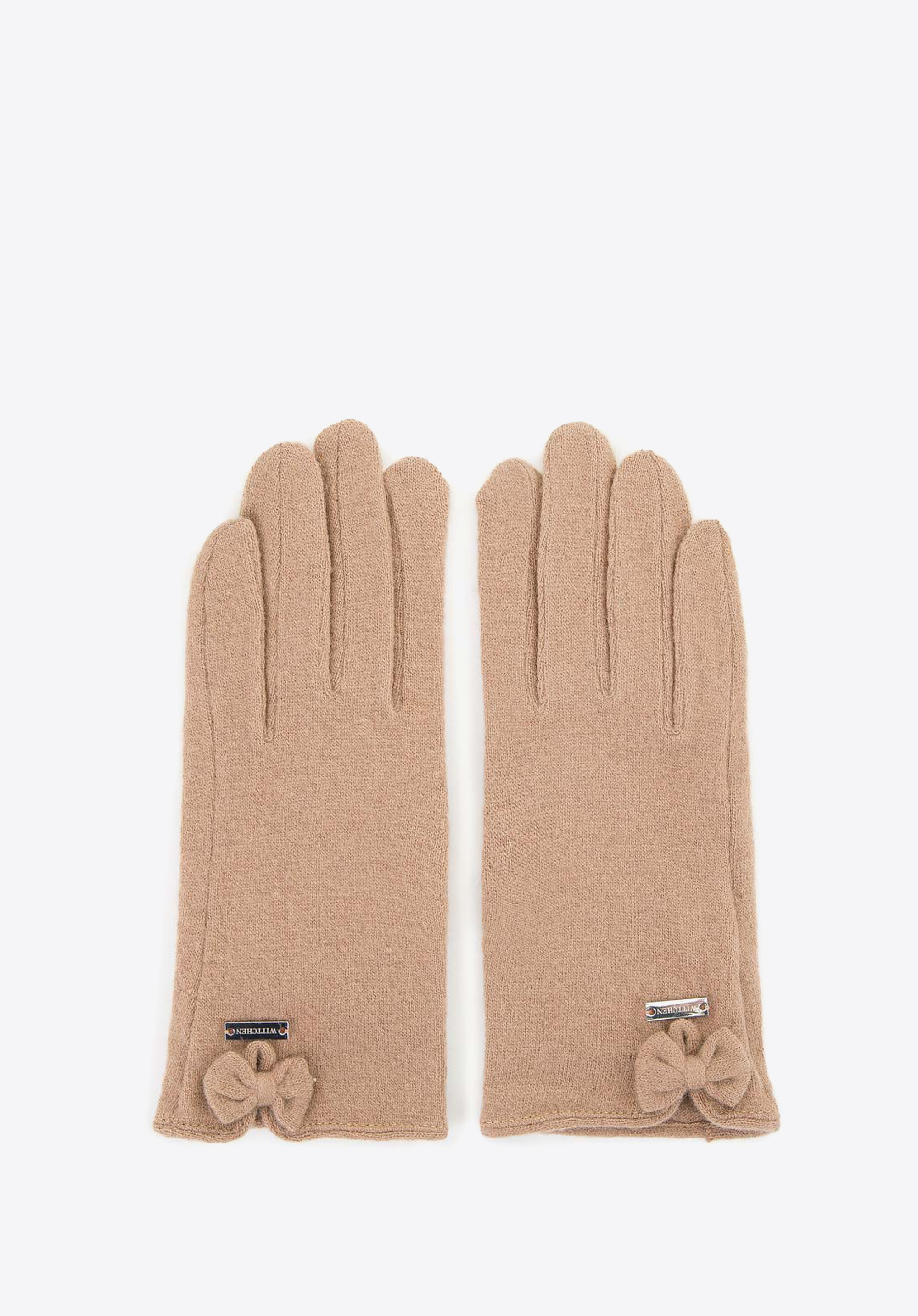 Štýlové rukavice s jednoduchým tvarom, zdobené pletenou mašľou. Vďaka špeciálnej výšivke pod ukazovákom a palcom budete môcť ovládať dotykový displej bez toho, aby ste si museli rukavice vyzliecť – funkcia, ktorá je veľmi cenná, keď si chcete niečo skontrolovať na telefóne v chladnom dni. Budú elegantným zavŕšením vášho zimného outfitu.