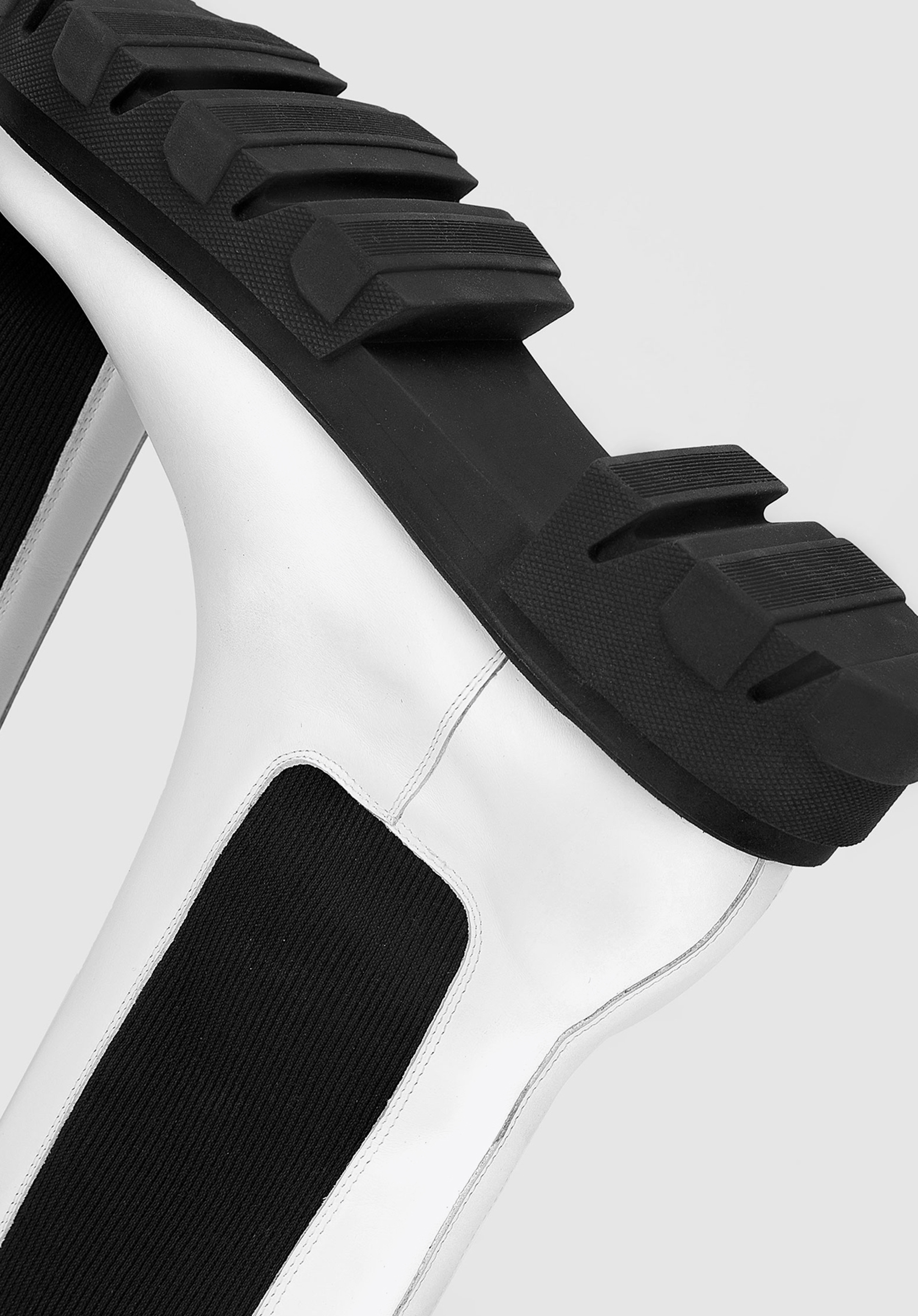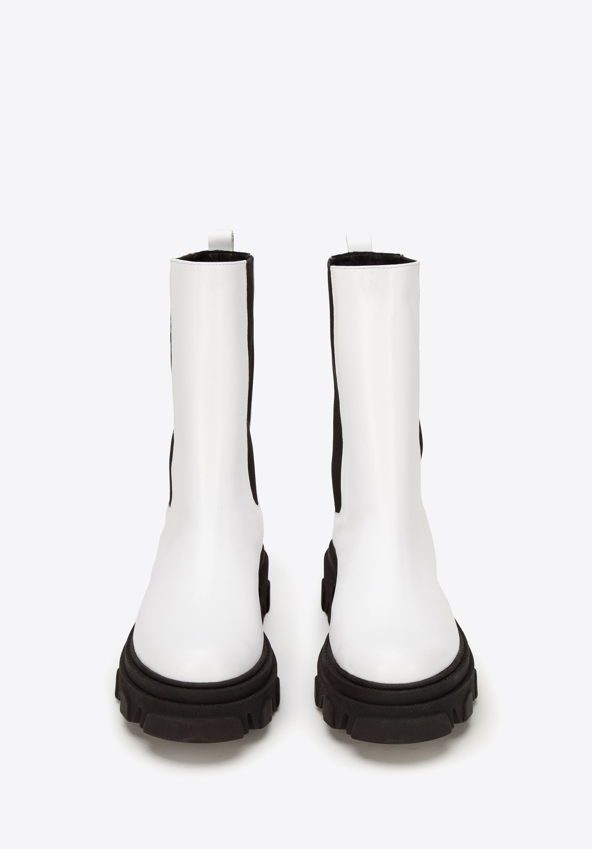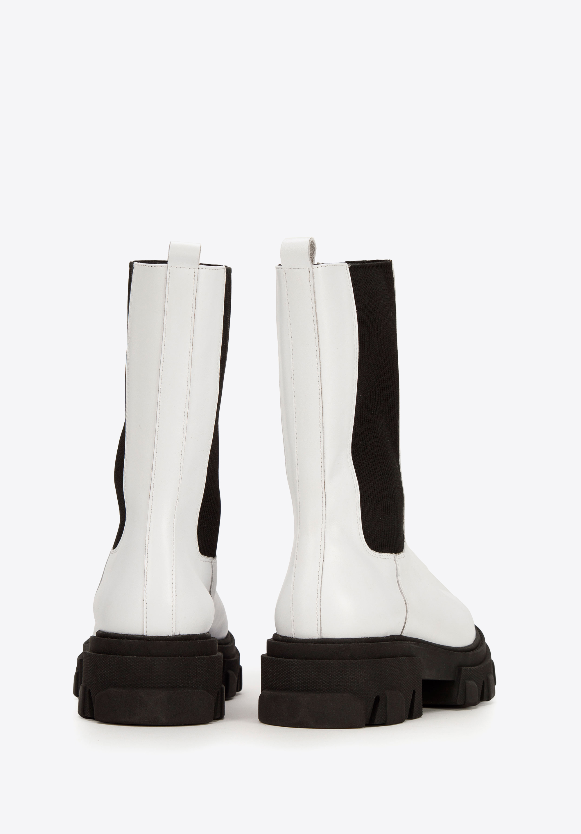 Dámske vysoké kožené trapery na hrubej podrážke biele
