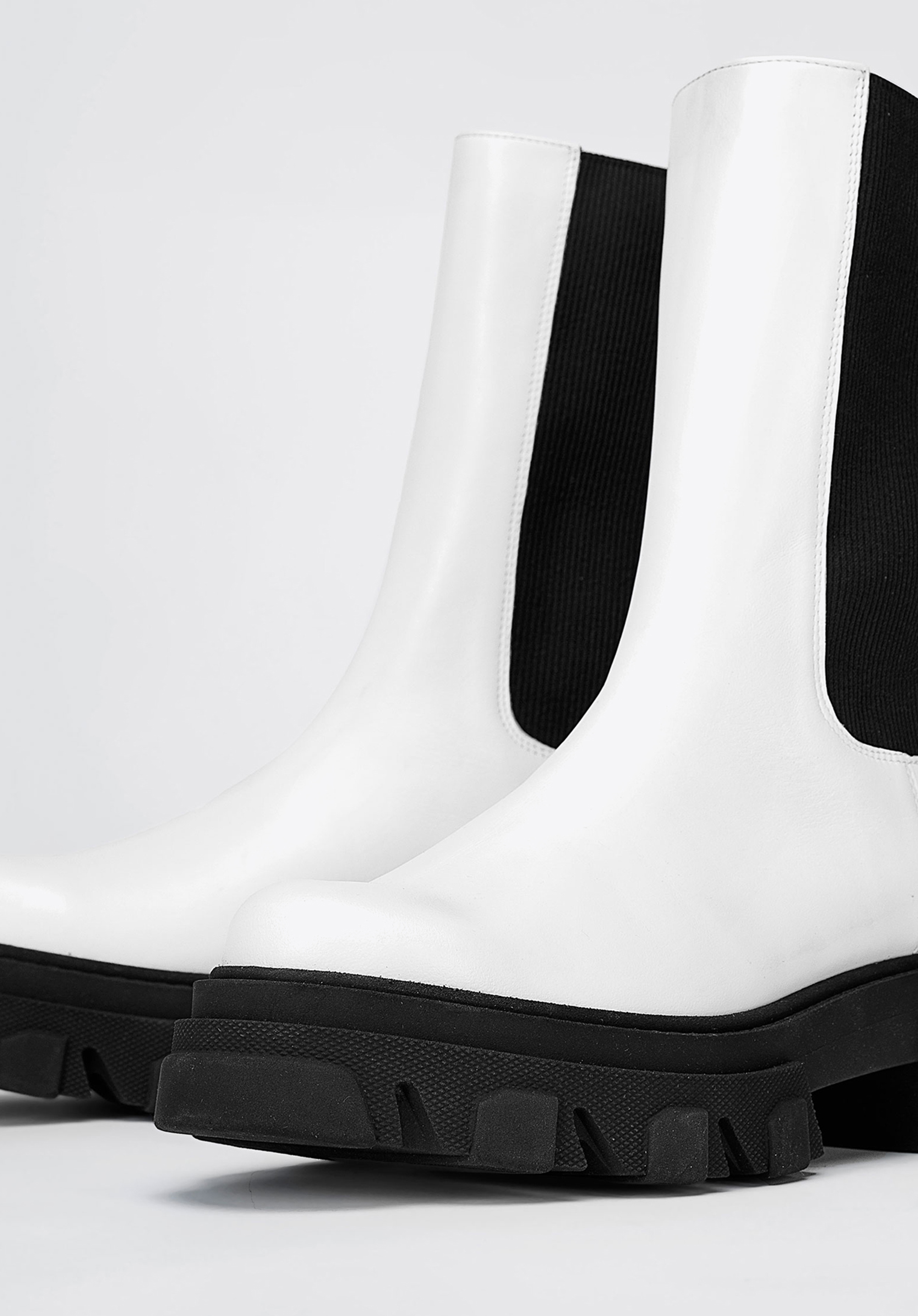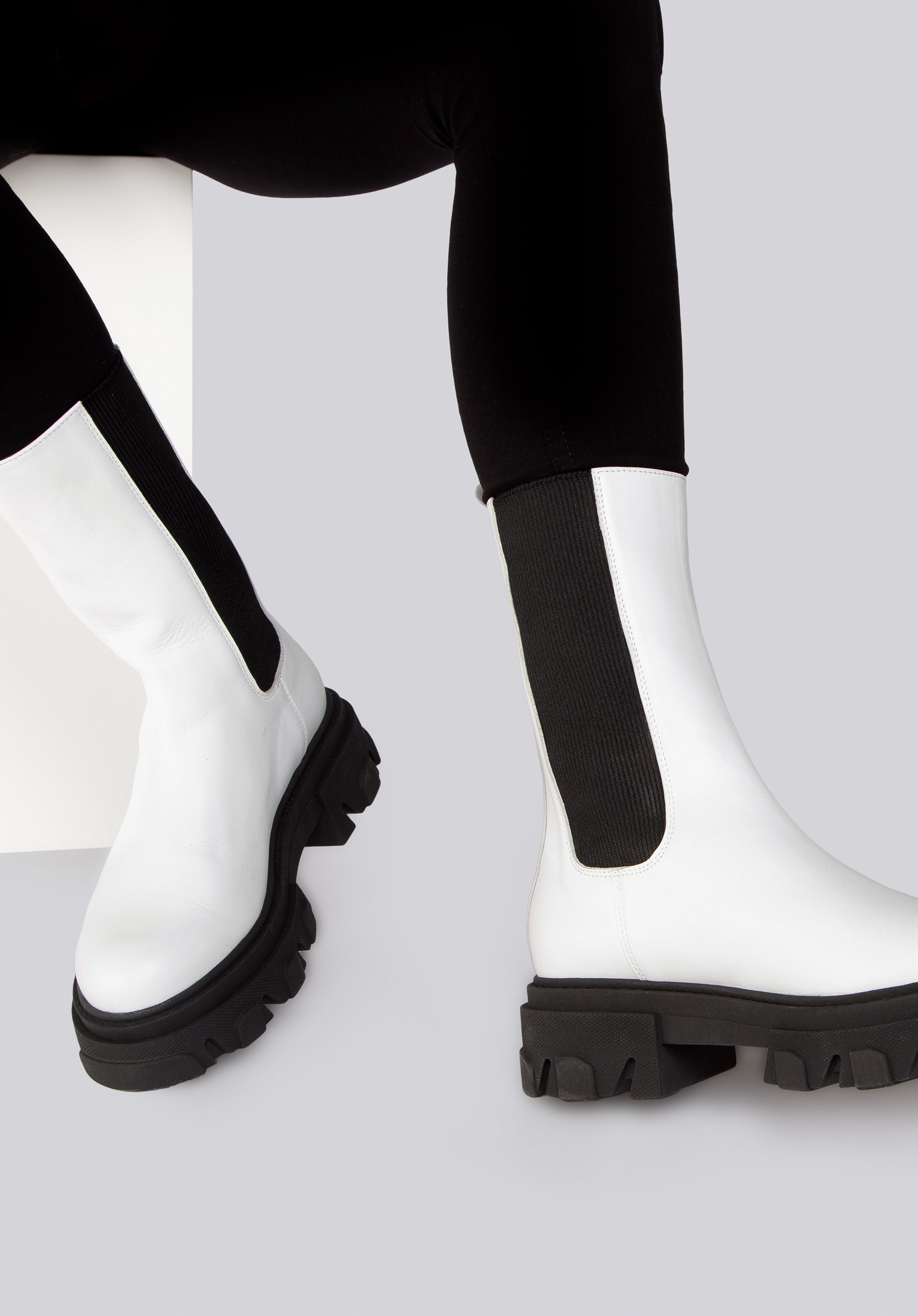Pevné topánky sú skvelou voľbou nielen k nohaviciam, ale aj k vzdušným šatám. Boli ušité a ručne dokončené z najkvalitnejšej prírodnej kože. Majú oveľa vyšší zvršok ako klasické chelsea čižmy, ale dve gumičky na bokoch vám umožnia pohodlne ich nasadiť na nohu. Sú osadené na veľmi módnej traktorovej podrážke, ktorá dokonale izoluje od chladu, poskytuje stabilitu a tiež štýlovo vyzerá. Dámske vysoké kožené trapery na hrubej podrážke sú topánky, ktoré majú výraz. Každému outfitu dodajú moderný nádych.