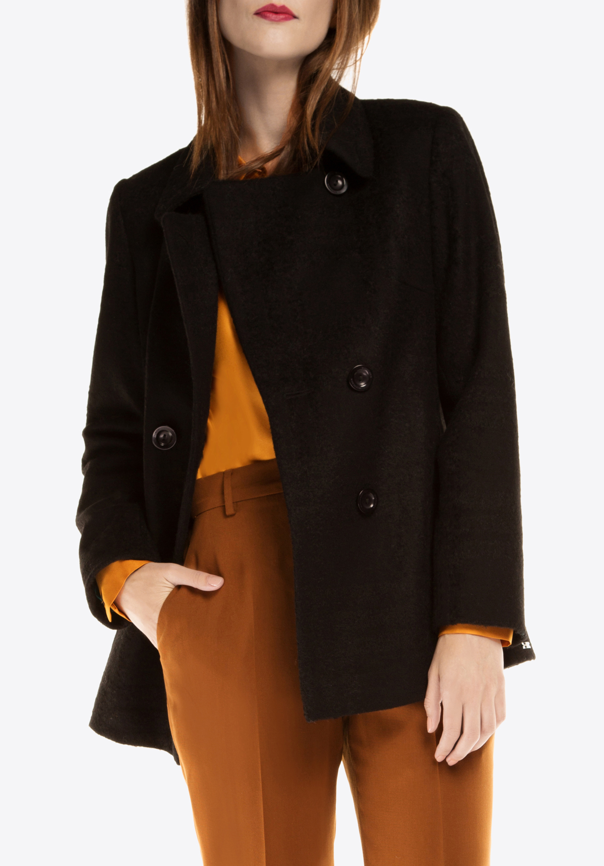 Dvojradový dámsky kabát s klasickým strihom a tlmenými farbami. Krátky model môže úspešne nahradiť sako a dodať celému outfitu jedinečný retro charakter. Najkvalitnejšie materiály použité pri výrobe kabáta neobmedzujú pohyby a tým výrazne zvyšujú komfort používania a spokojnosť s nákupom na dlhé roky.