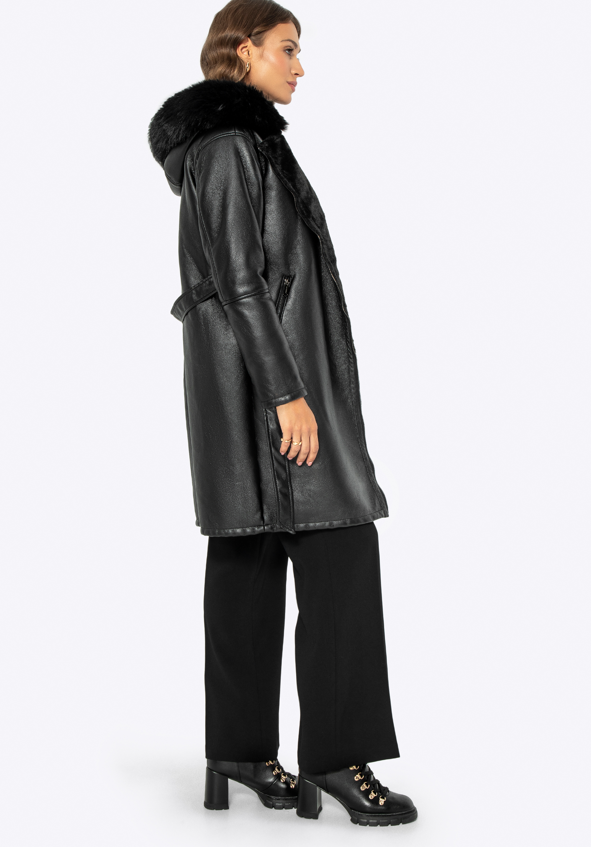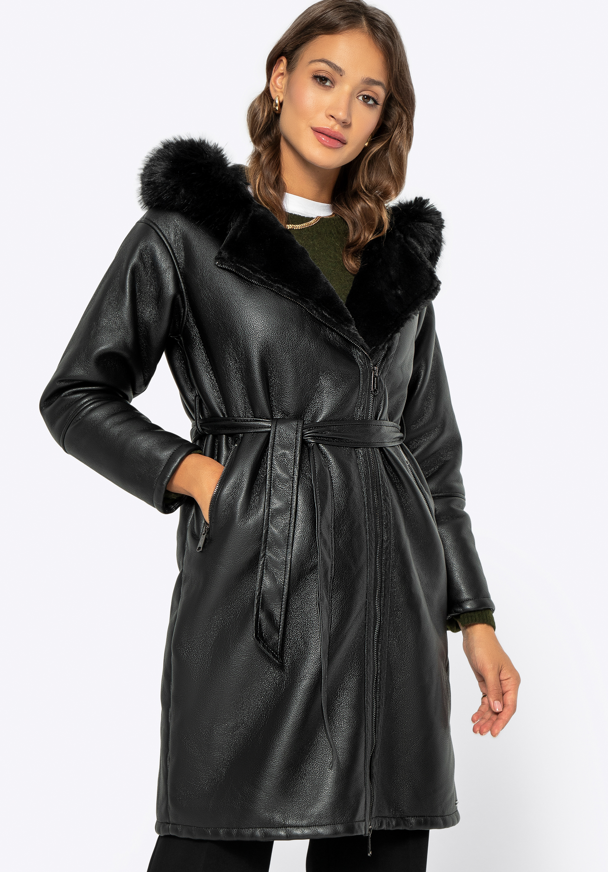 Objavte dokonalú zmes elegancie a praktickosti s naším dámskym kabátom z umelej kože , ktorý je navrhnutý tak, aby zvýraznil vašu postavu a zároveň vás udržal v teple a pohodlí v chladných dňoch.