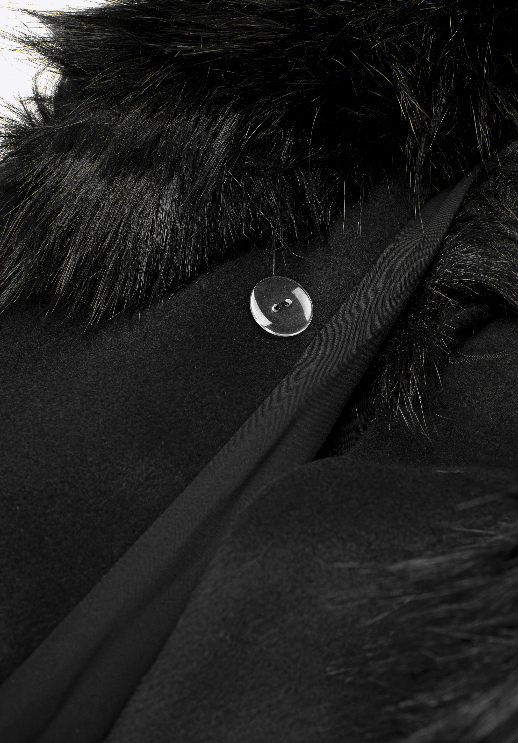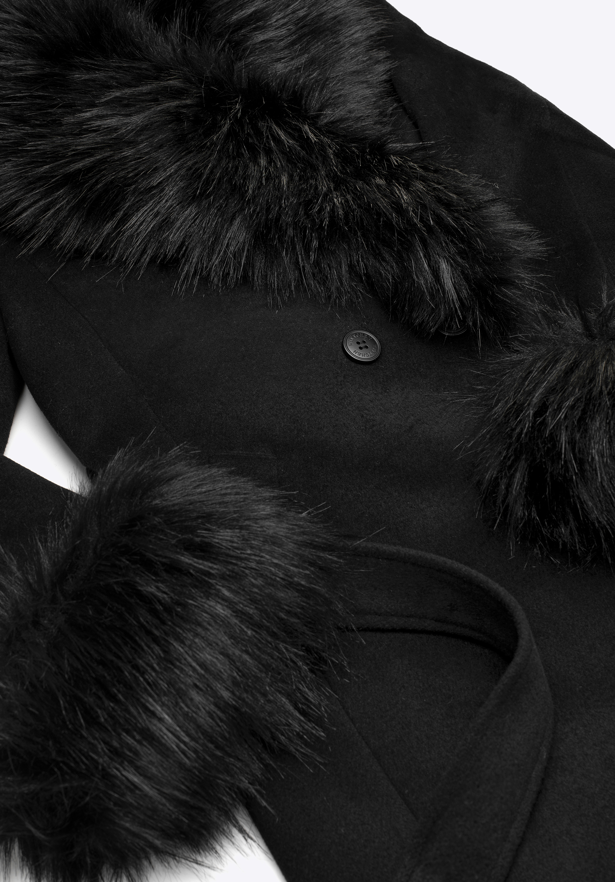 - Zloženie: Vrchná látka: 50 % vlna, 50 % polyester; Podšívka: 100 % viskóza; Umelá kožušina: 50 % akryl, 50 % polyester.