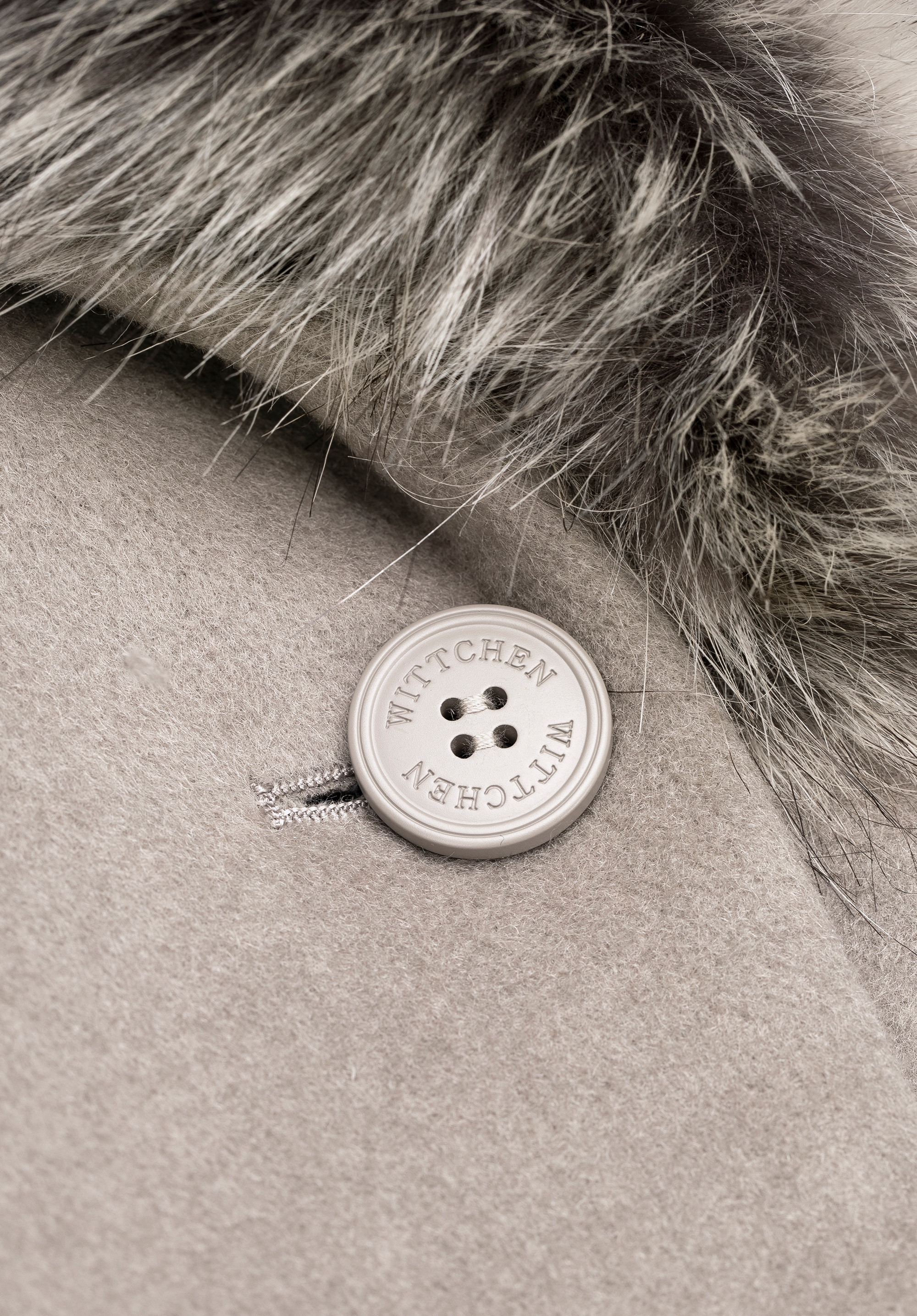 - Zloženie: Vrchná látka: 50 % vlna, 50 % polyester; Podšívka: 100 % viskóza; Umelá kožušina: 50 % akryl, 50 % polyester.