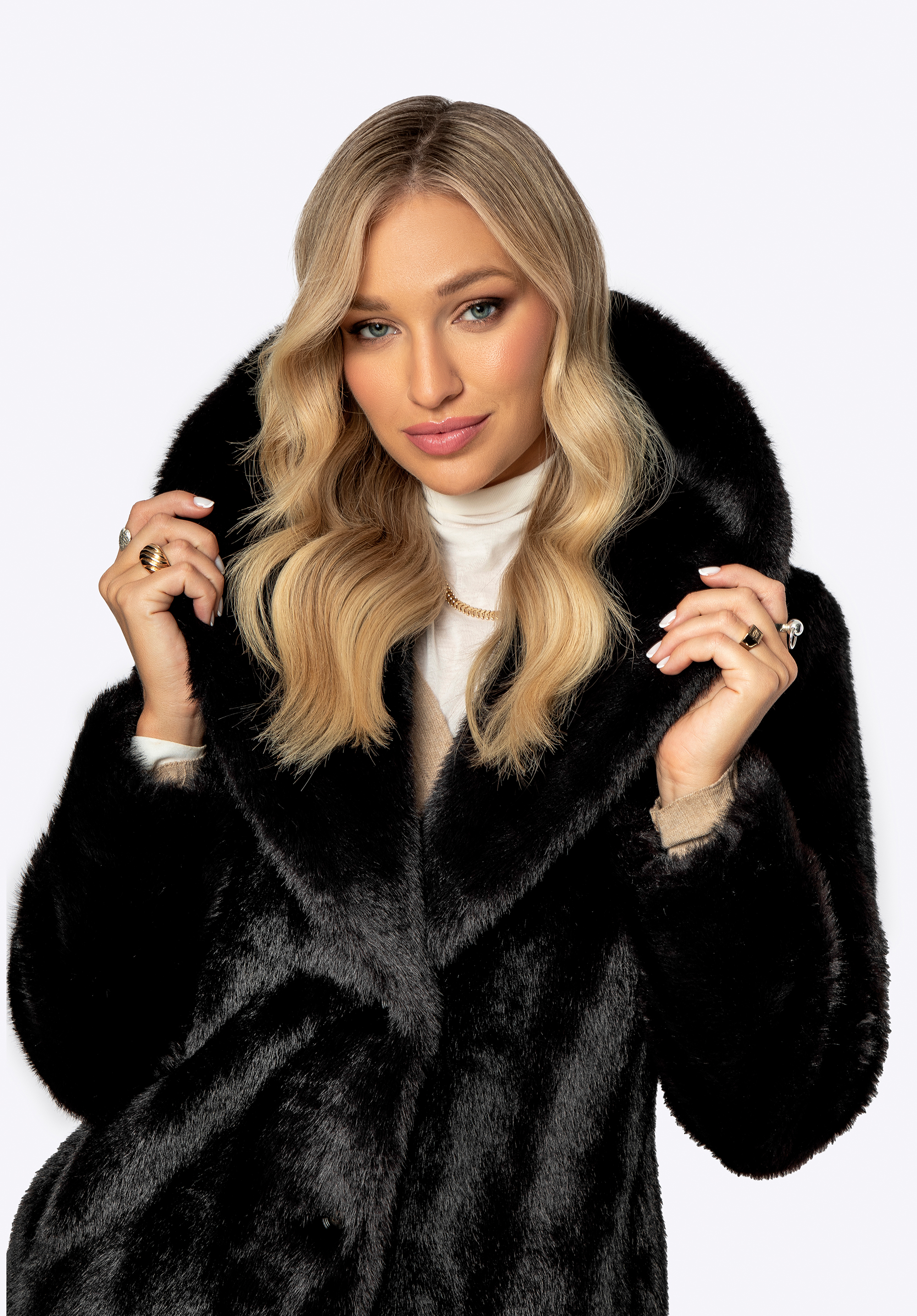 Doprajte si dotyk luxusu s naším hitom sezóny, dámskym kabátom vyrobeným z najkvalitnejšej umelej kožušiny. Dokonalá kombinácia klasiky a modernosti si určite získa srdcia a stane sa hviezdou vášho šatníka. Je nielen symbolom luxusu, ale aj zodpovedného prístupu k móde. Klasický, chlopňový golier dodáva šik a poskytuje ešte viac tepla a pohodlie. Dlhý strih kabátu zdôrazňuje eleganciu, ale zároveň účinne chráni pred chladom a poskytuje pocit sofistikovanosti a pohodlia v každej situácii. Praktické, dve hlboké vrecká v bočných švoch nielen dodajú štýl, ale tiež vám umožnia uložiť základné predmety. Dokonalé spracovanie a vysoká kvalita použitých materiálov sú zárukou, že tento kabát vás bude sprevádzať dlhé roky a zabezpečí nielen jedinečný vzhľad, ale aj ekologickú spokojnosť.