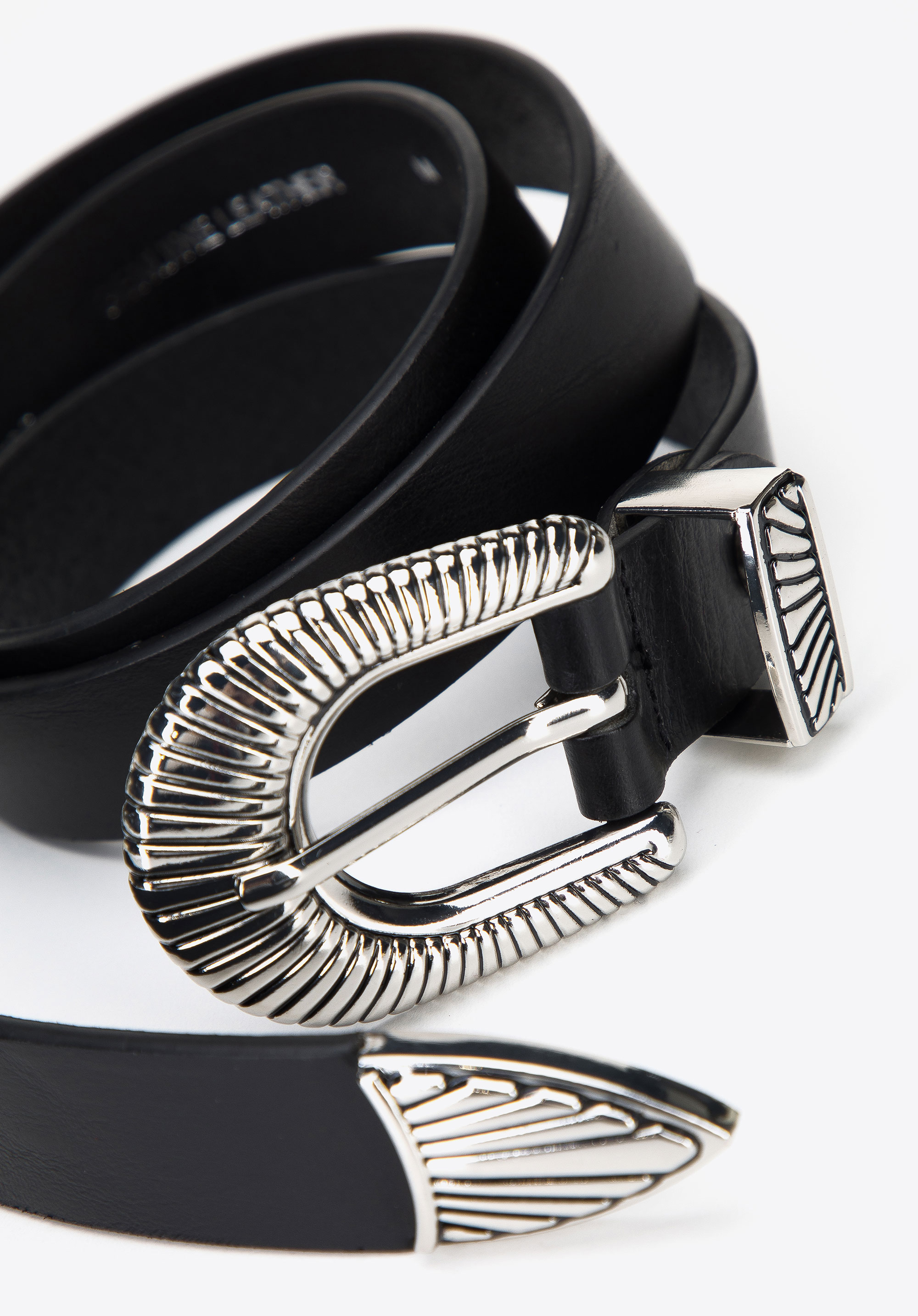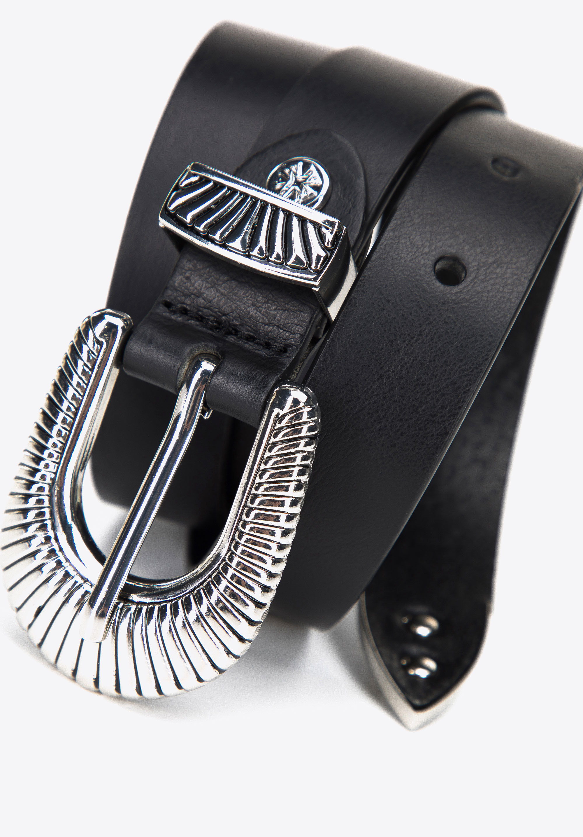 z vysokokvalitnej prírodnej kože. Dekoratívny, trblietavý vzor je umiestnený na pracke, slučke a na konci opasku a dodáva mu jedinečný charakter. Dámsky kožený opasok s prackou vyrazenou v dekoratívnom vzore upúta viac ako jeden pohľad.