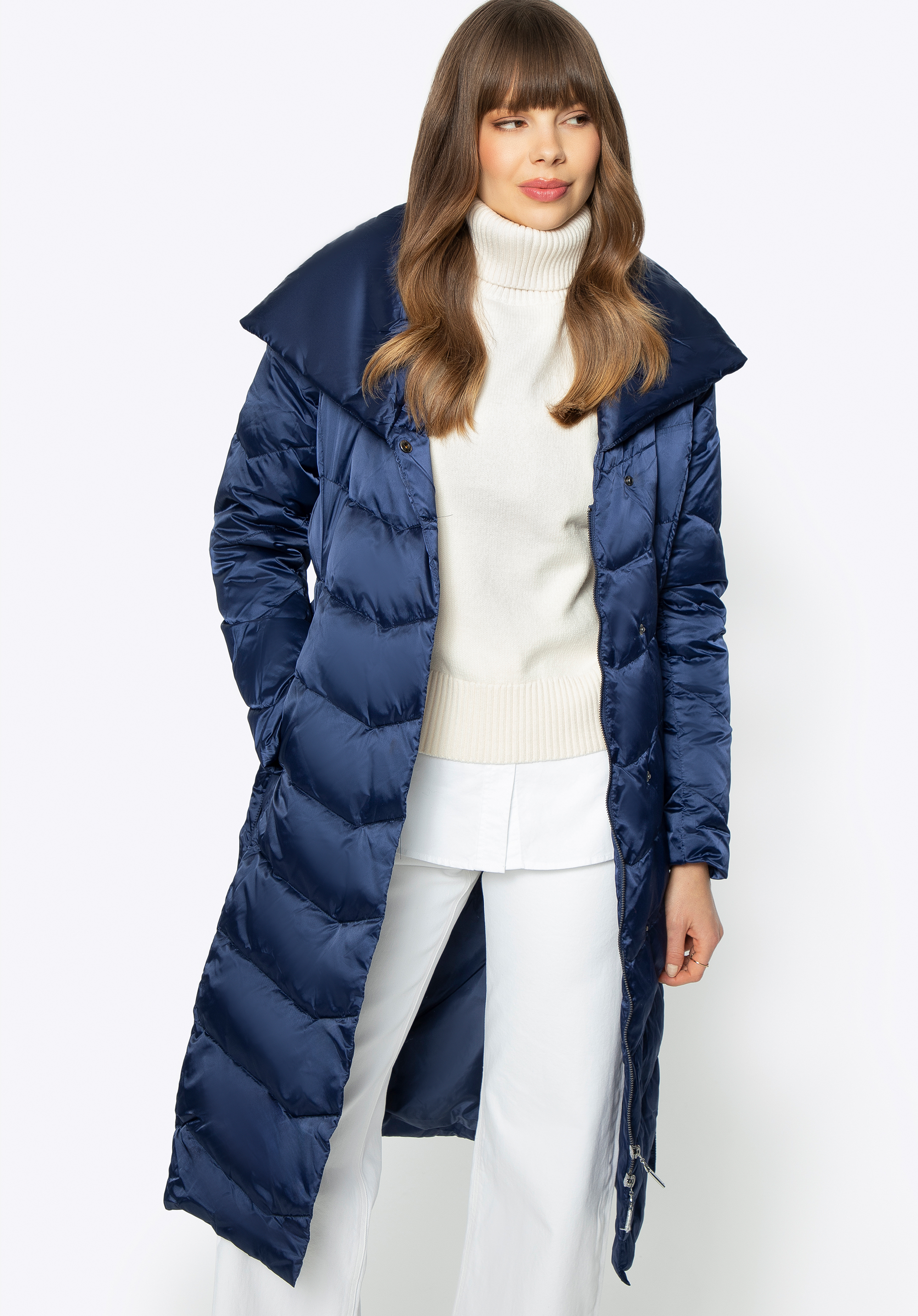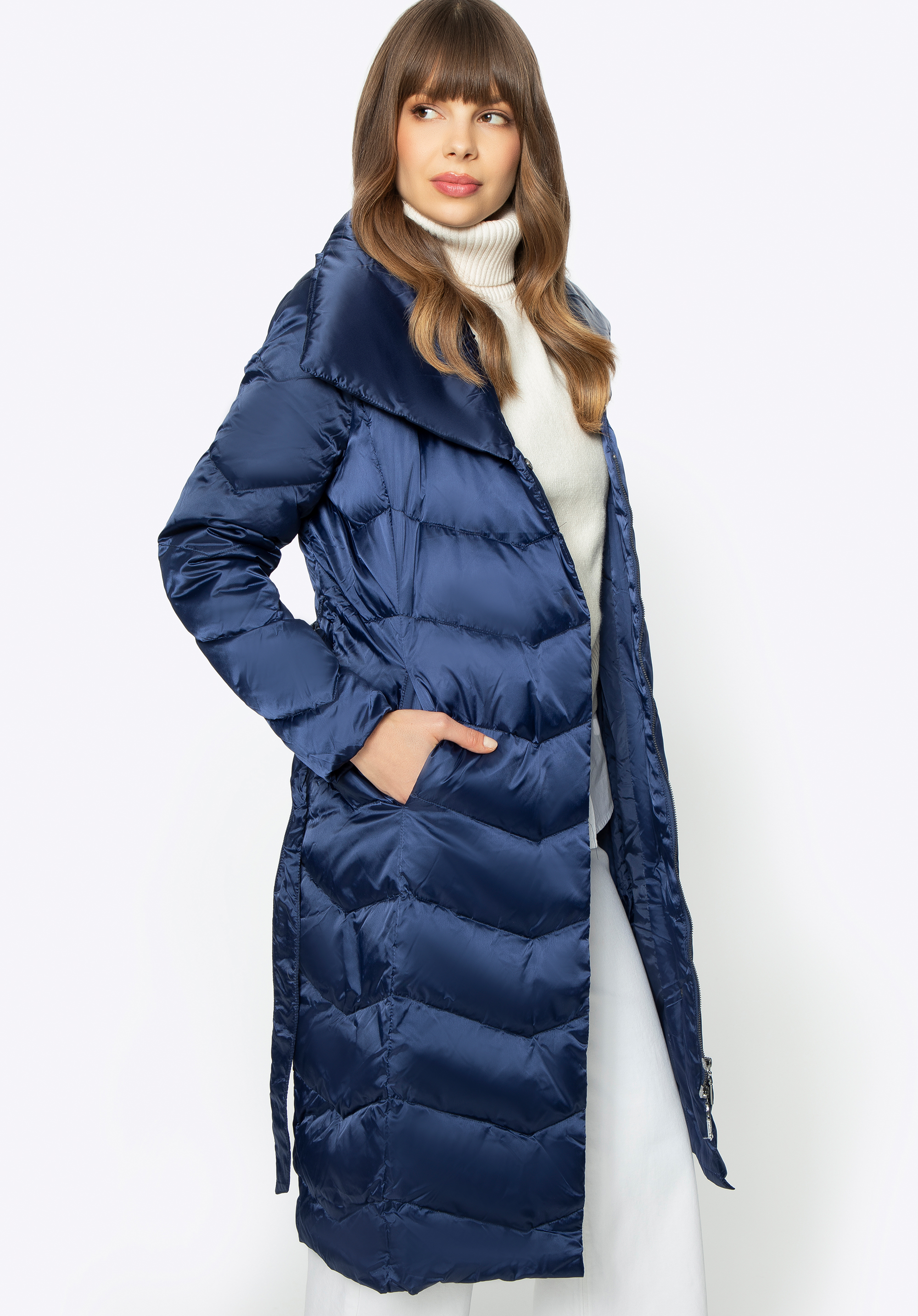 prispôsobená v páse, s opaskom, prešívané, páperová