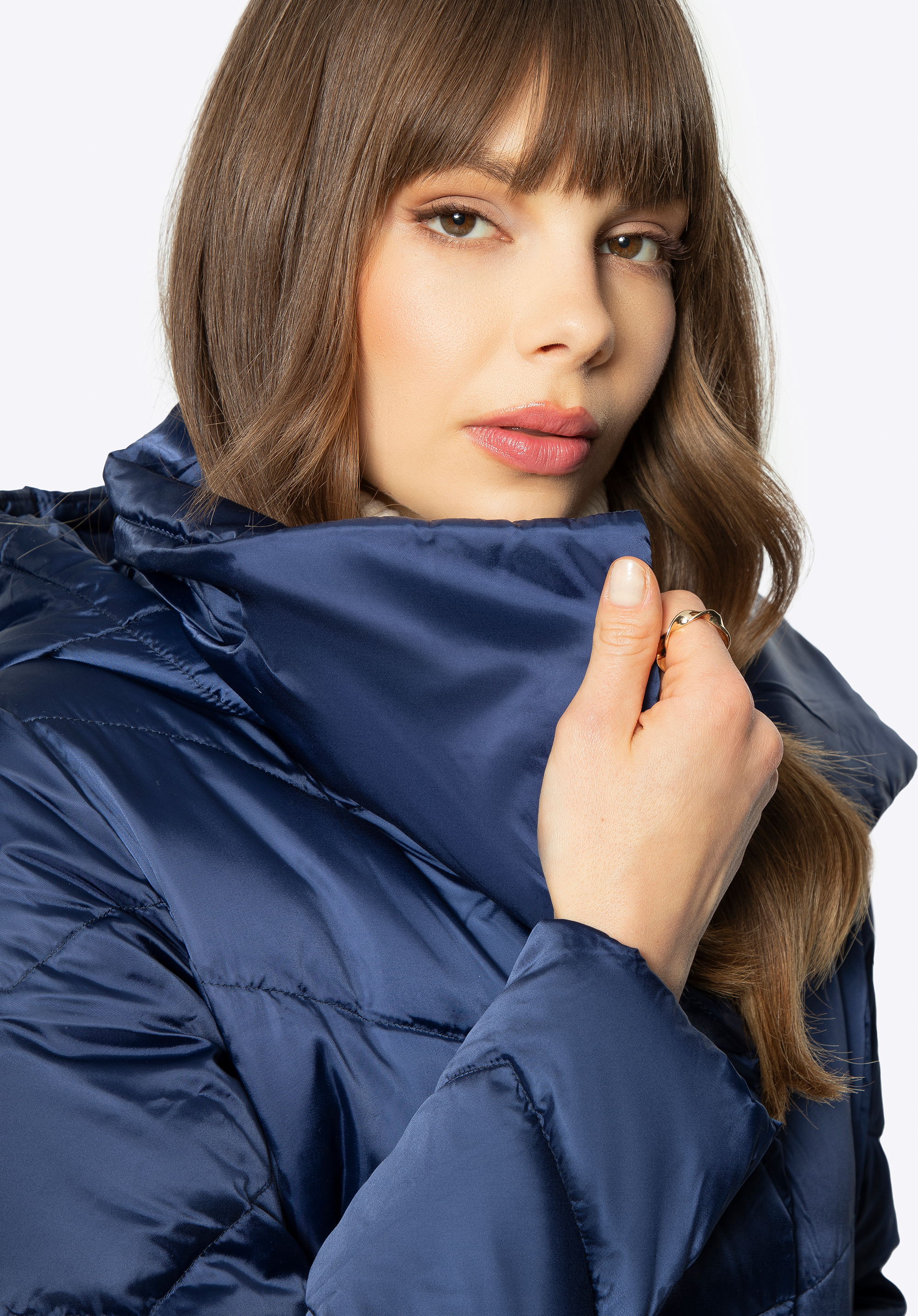 Kabát s ľahkou, ale hrejivou výplňou – 50% páperie, 50% perie – izoluje proti chladu a zároveň nerozširuje siluetu. Vysoký golier vyzerá veľmi štýlovo a chráni pred nárazmi vetra. Okrem toho má kabát pekne tvarovanú kapucňu, ktorú môžete odopnúť. Vďaka klzkej podšívke sa oblečenie, ktoré nosíte pod kabátom, nekrčí. Kabát sa vyznačuje miernym leskom a cik-cakovým prešívaním, ktoré upútajú pozornosť a opticky zoštíhlia. Dámsky kabát s kapucňou pekne obopne vašu siluetu bez toho, aby vám pridal na objeme; obľúbite si ho počas chladnejších jesenných a zimných dní. Náš tip: odopnite pre zmenu kapucňu a zabaľte sa do goliera.