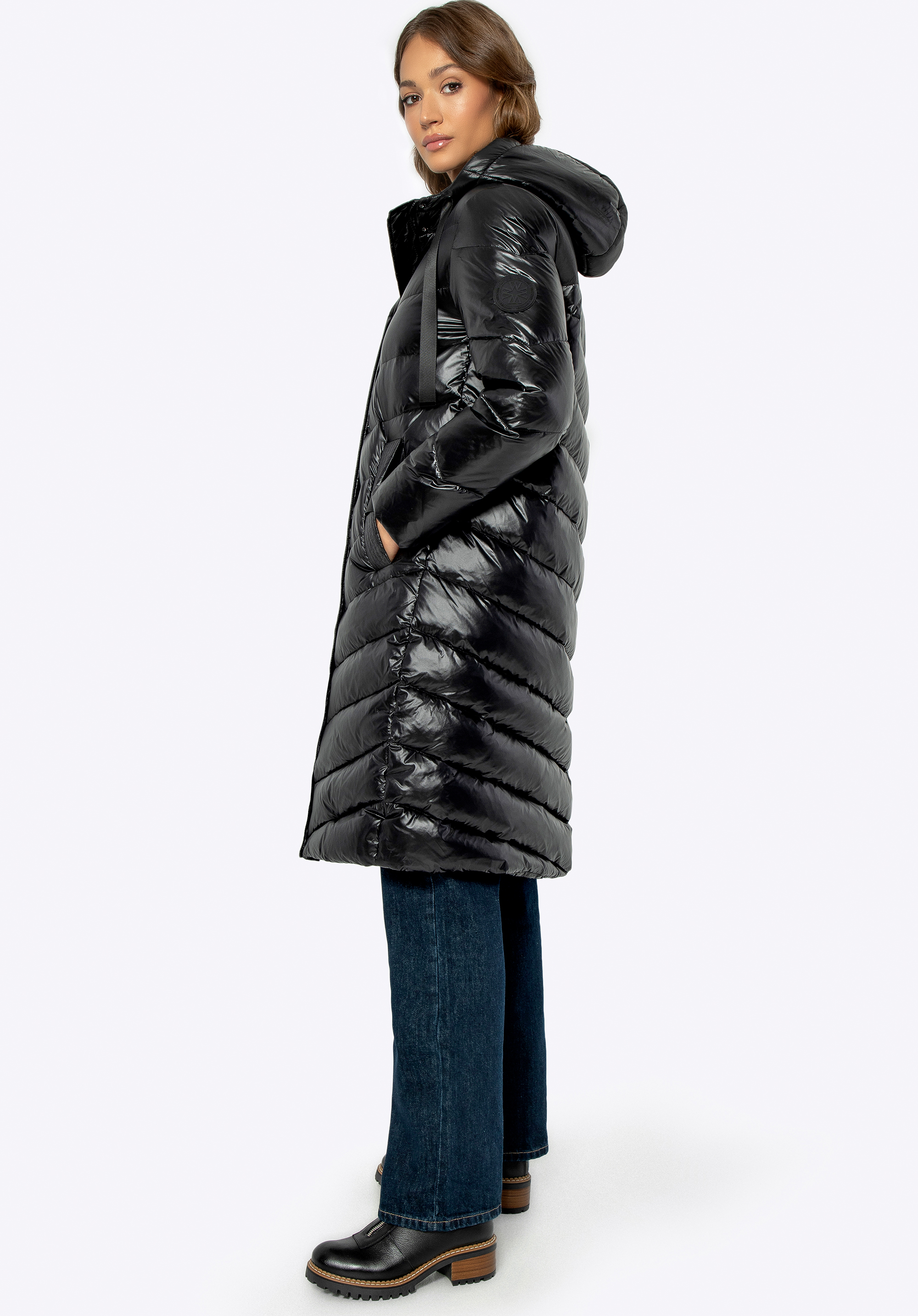 - Výplň : Prírodné perie a páperie zaručujú vynikajúcu tepelnú izoláciu s minimálnou hmotnosťou, vďaka čomu je kabát ľahký a pohodlný.