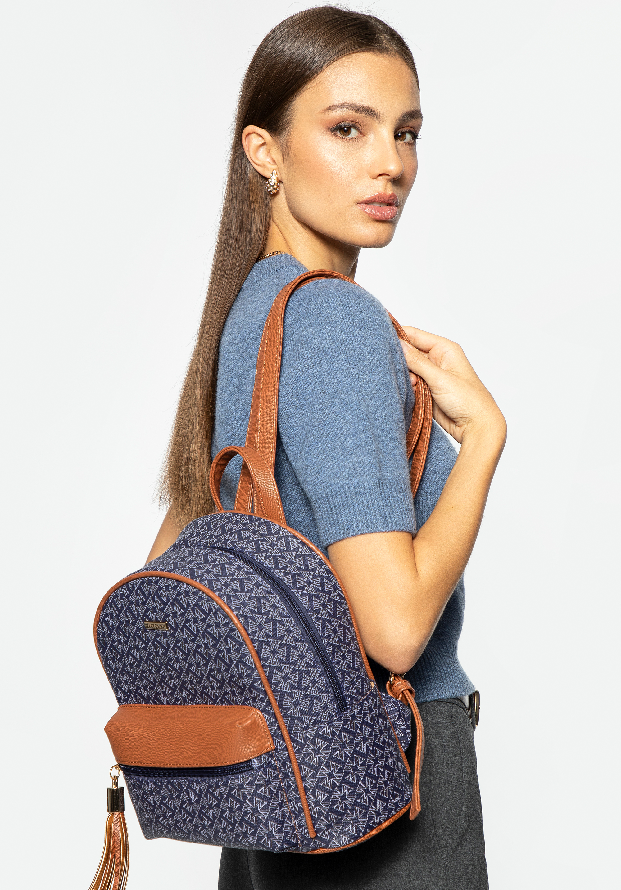 - Detaily: Vypuklé vrecko na prednej strane zdobené strapcom dodáva jedinečnosť a diskrétne upútava pozornosť, vďaka čomu ruksak vyniká medzi ostatnými doplnkami.