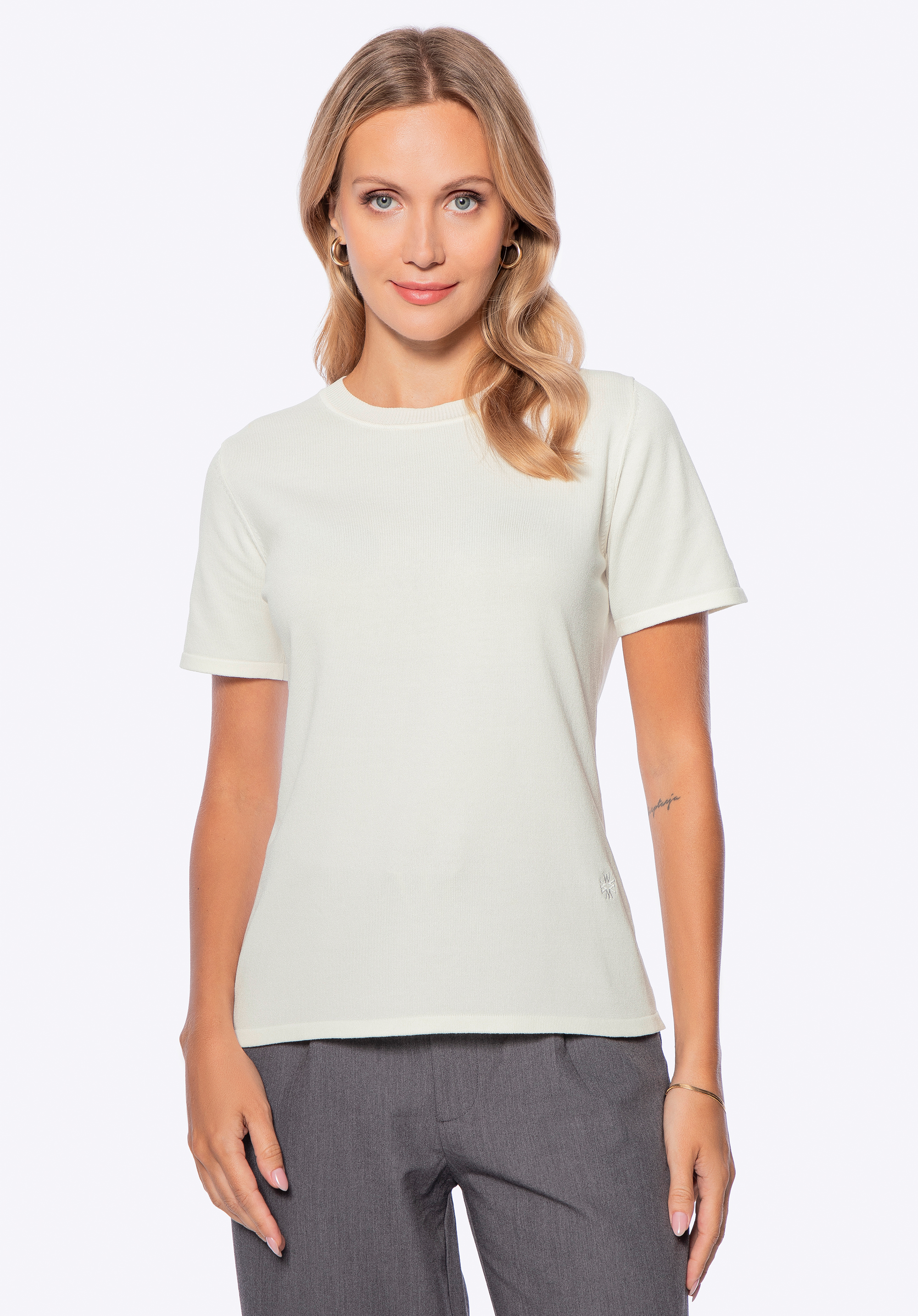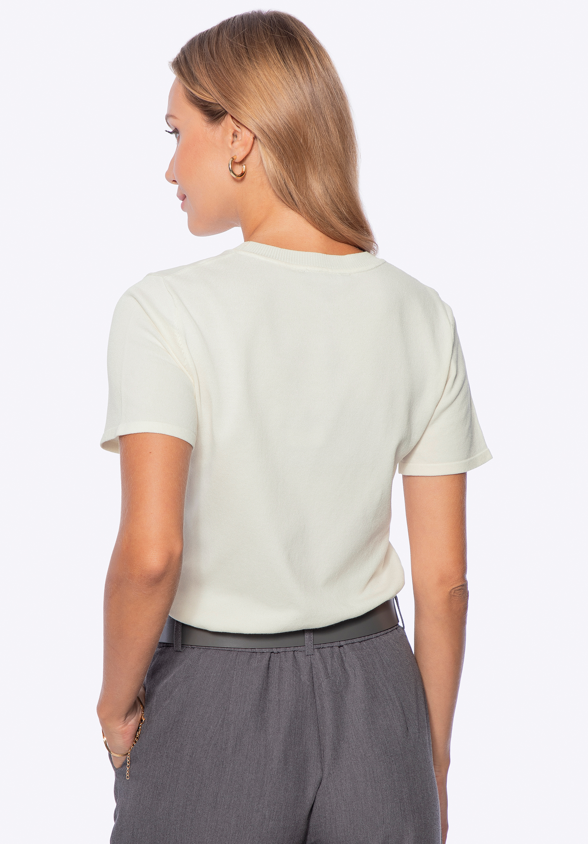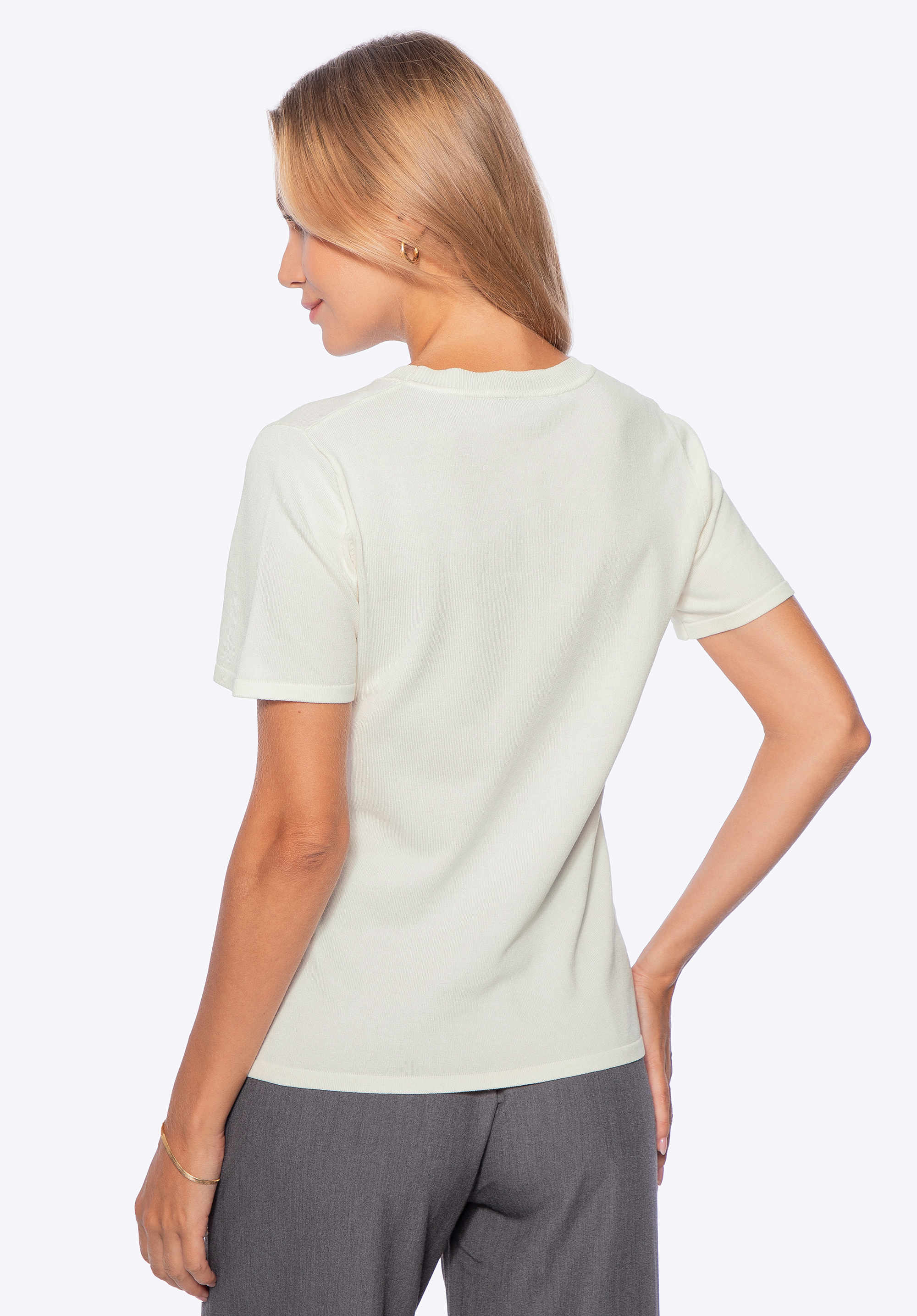 - Okrúhly výstrih s rebrovaným lemom : Jemne tvarovaný, krásne sedí okolo krku a dodáva vášmu každodennému vzhľadu ľahkosť a ležérnu eleganciu.
