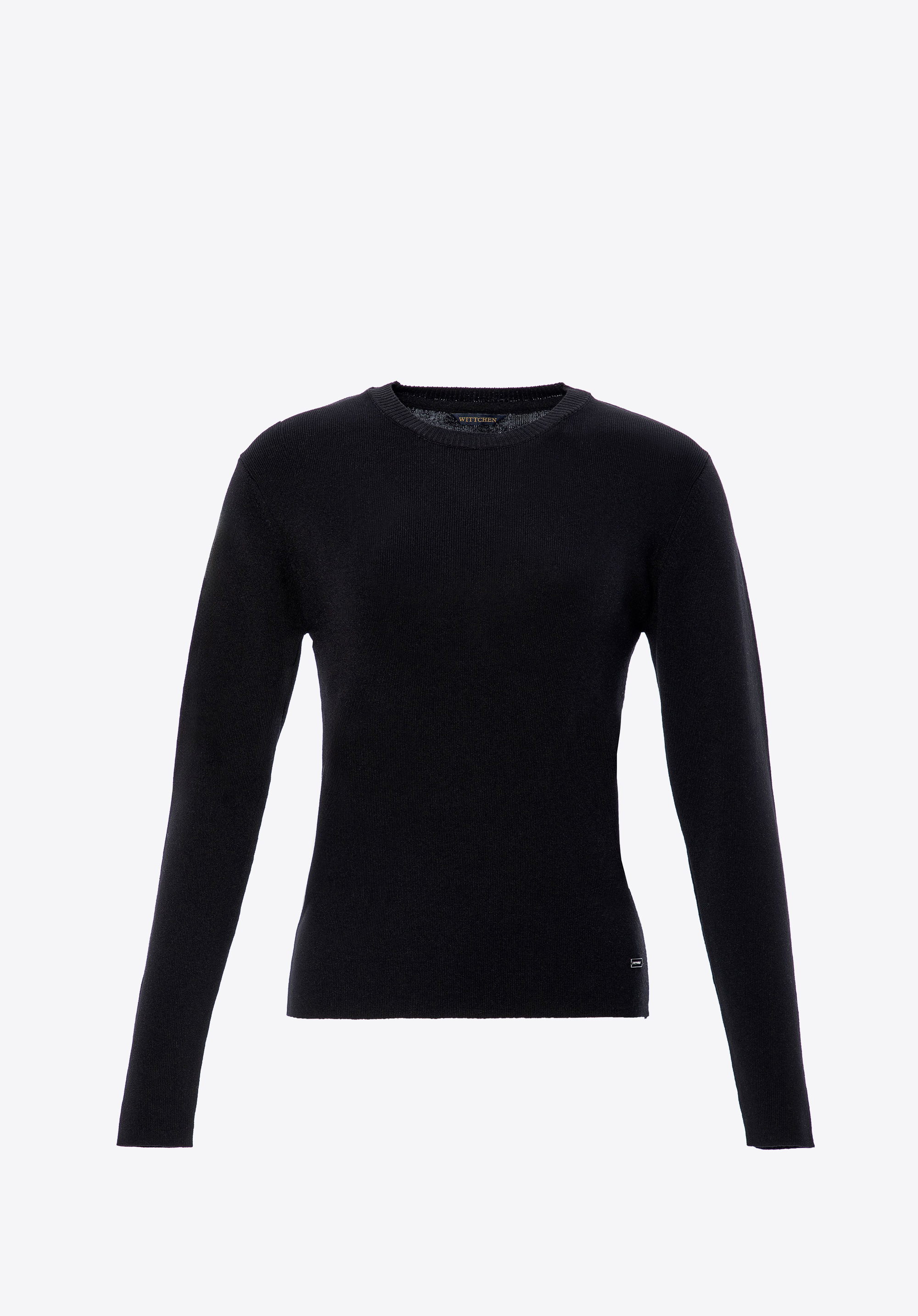 Tento sveter je perfektnou voľbou, ak hľadáte pohodlie v kombinácii s klasickou eleganciou. Je vyrobený z mäkkej a ľahkej viskózy zmiešanej s nylonom a ponúka celodenné pohodlie bez ohľadu na príležitosť. Dlhé, priliehavé rukávy sú navrhnuté tak, aby úhľadne sedeli na zápästiach, čo zaisťuje lichotivý strih a elegantný vzhľad. Rebrovaný výstrih dodáva svetru jemnú štruktúru a sofistikovanosť. Kovový detail na leme je moderným doplnkom, ktorý zdôrazňuje starostlivosť venovanú remeselnému spracovaniu každého prvku a dodáva mu moderný nádych.