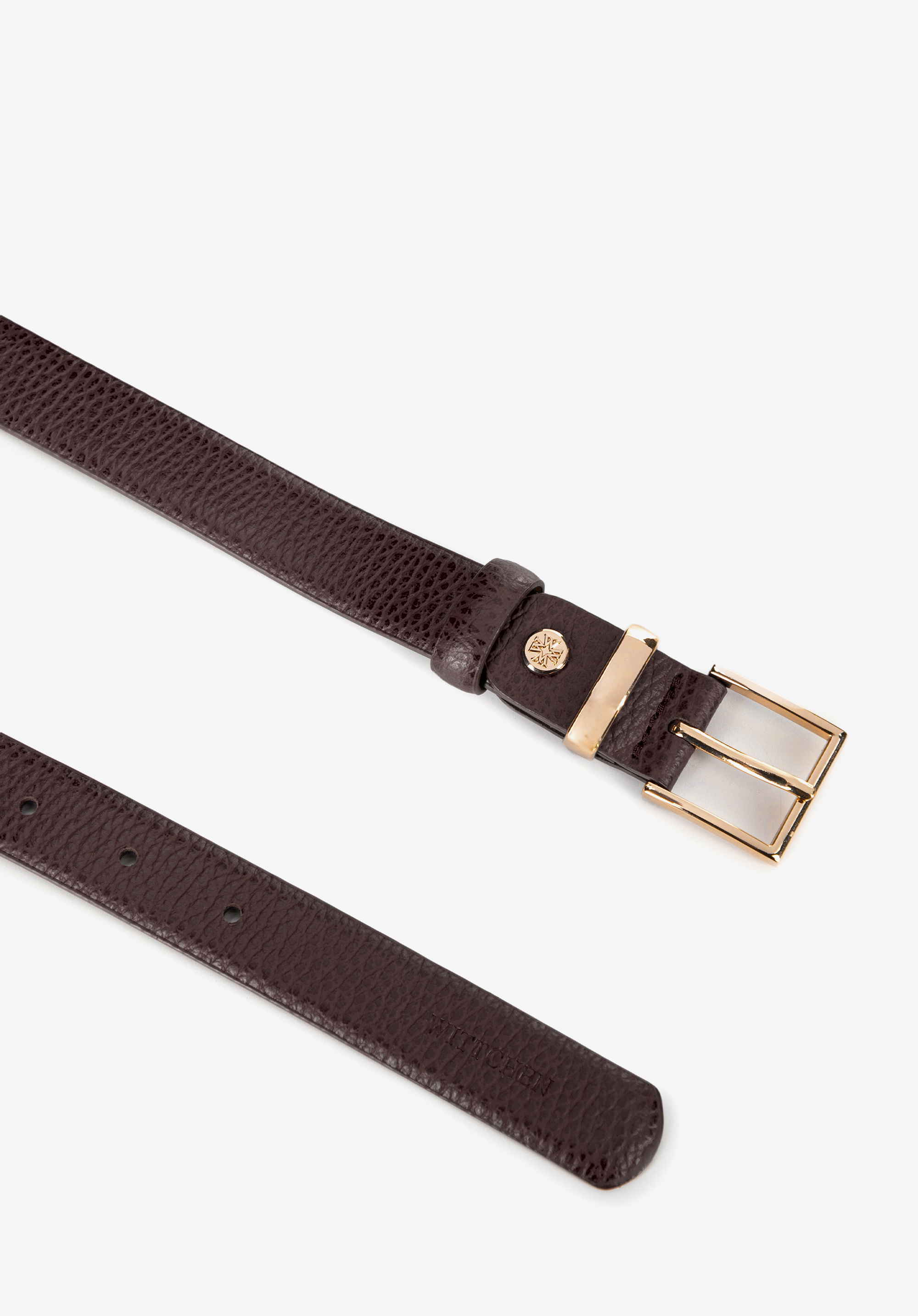 Tento dámsky opasok je perfektnou voľbou pre tie, ktoré oceňujú decentné doplnky s rafinovaným nádychom. Vyrobený z prírodnej kože , očarí svojím štíhlym dizajnom a obdĺžnikovou kovovou prackou s lesklou povrchovou úpravou. Tento pútavý detail prináša moderný, ženský vzhľad. Vyrazené logo dodáva decentný, no zároveň štýlový akcent. Dodáva sa v elegantnom zamatovom vrecku s logom – je to tiež skvelý nápad na darček.