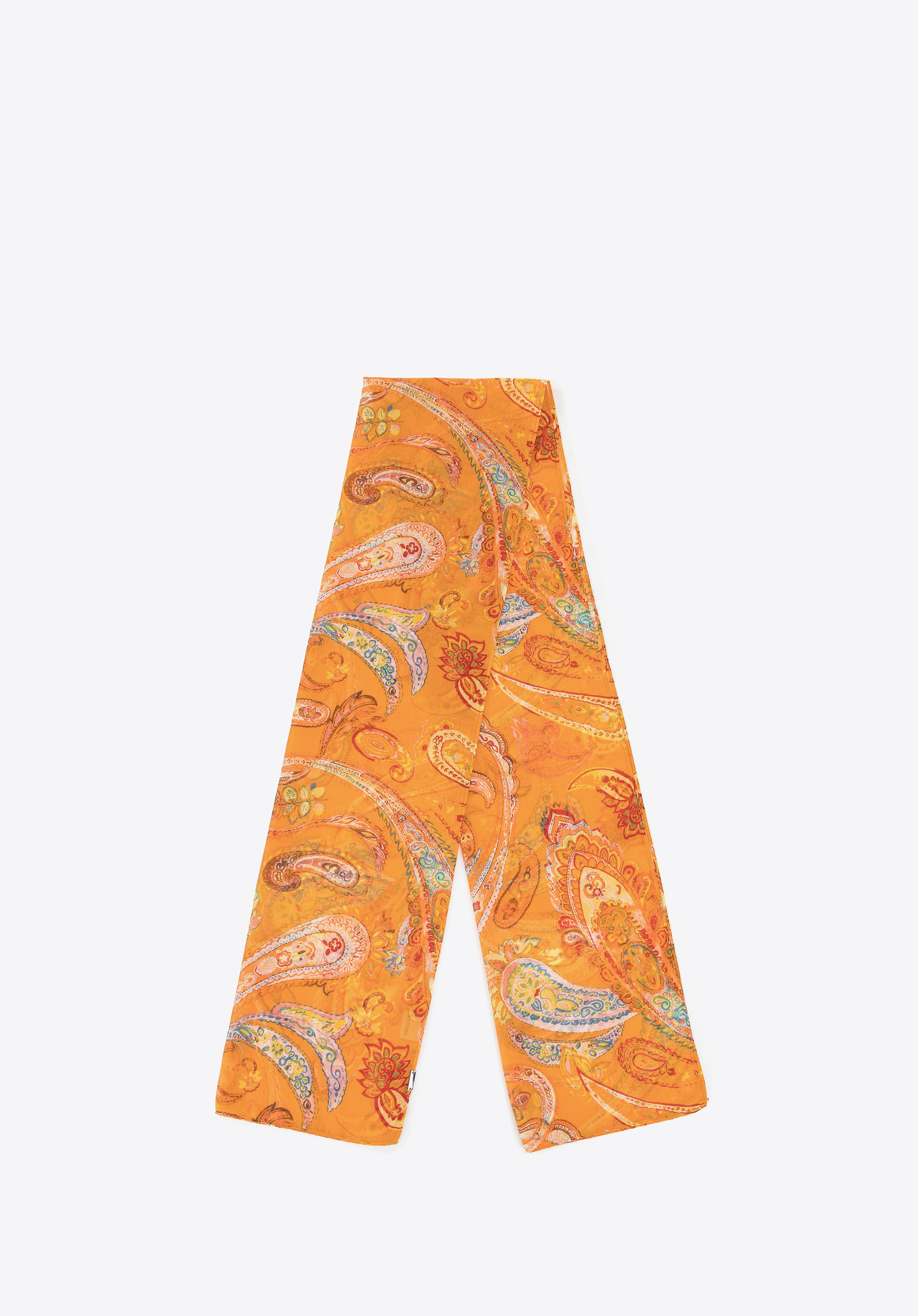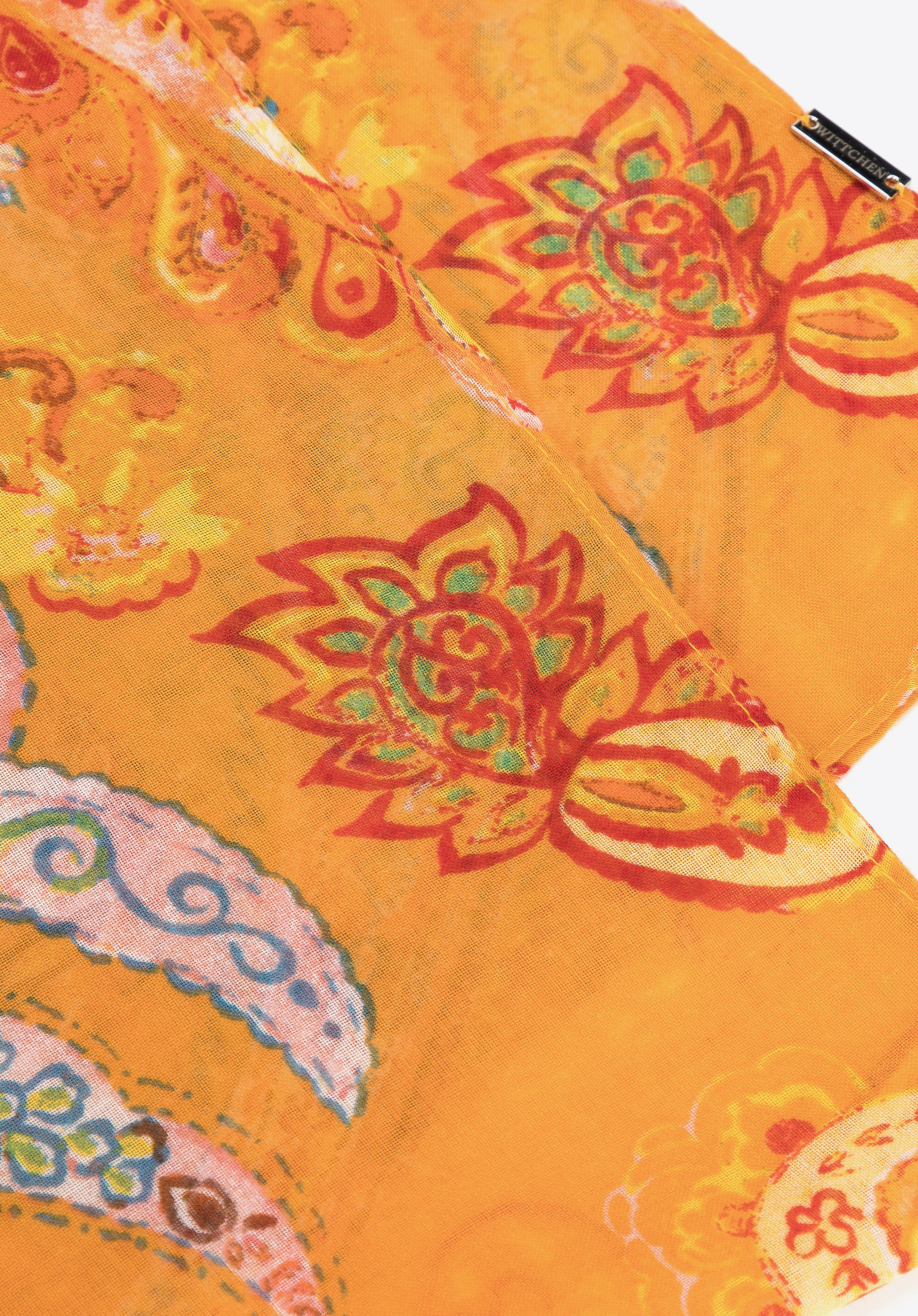 Krásne vzory paisley dodávajú šálu orientálny vzhľad. Tento pestrofarebný doplnok sa svojimi farbami hodí ku každému jarnému a letnému outfitu. Materiál, z ktorého je vyrobený, je extrémne ľahký a príjemný na dotyk. Dokonale sa usporiada na tele, nedráždi ani neškriabe pokožku.