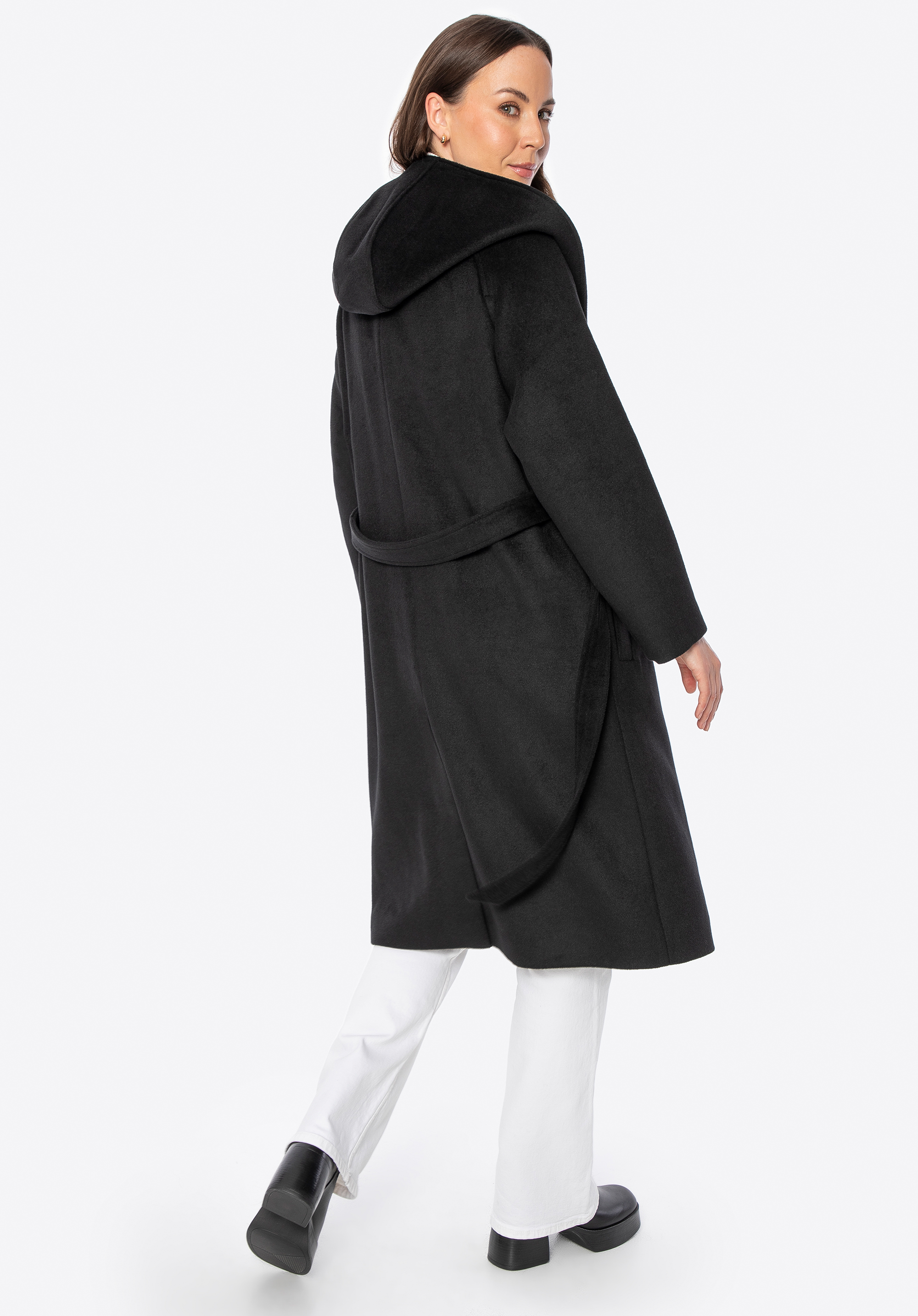 Dámsky vlnený kabát s dvojitým zapínaním Farba: čierna