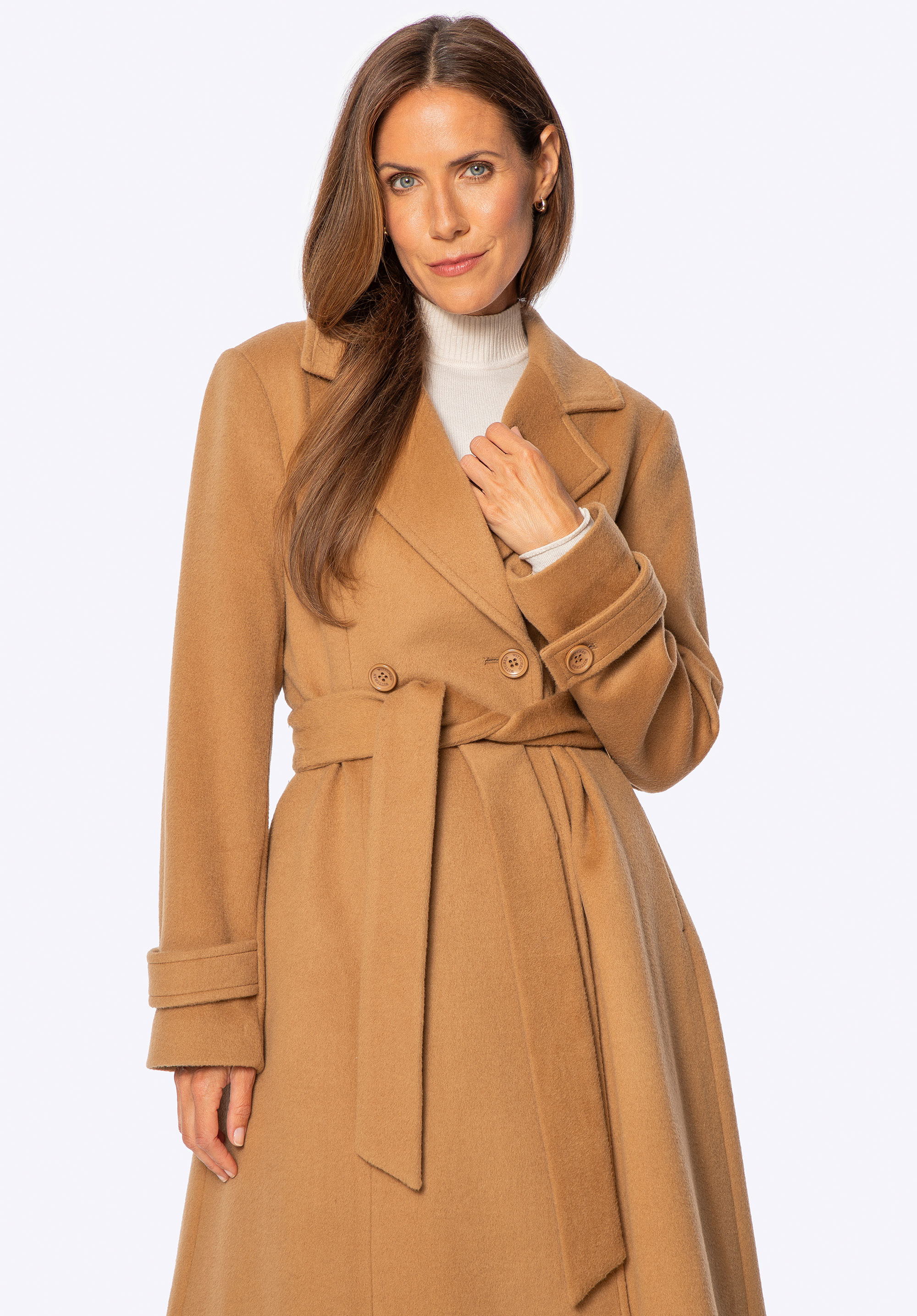 Kabát z vlny a kašmíru – dvojradová elegancia v elegantnej siluete