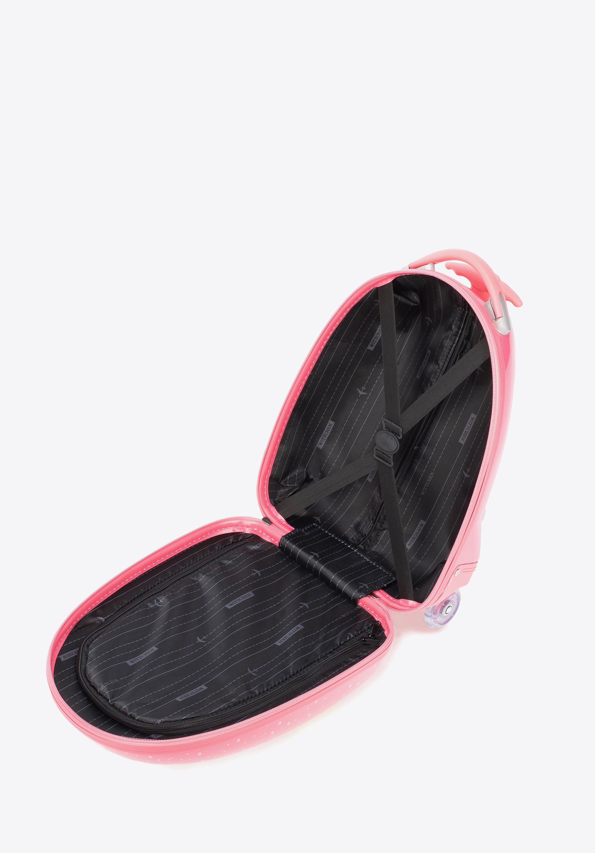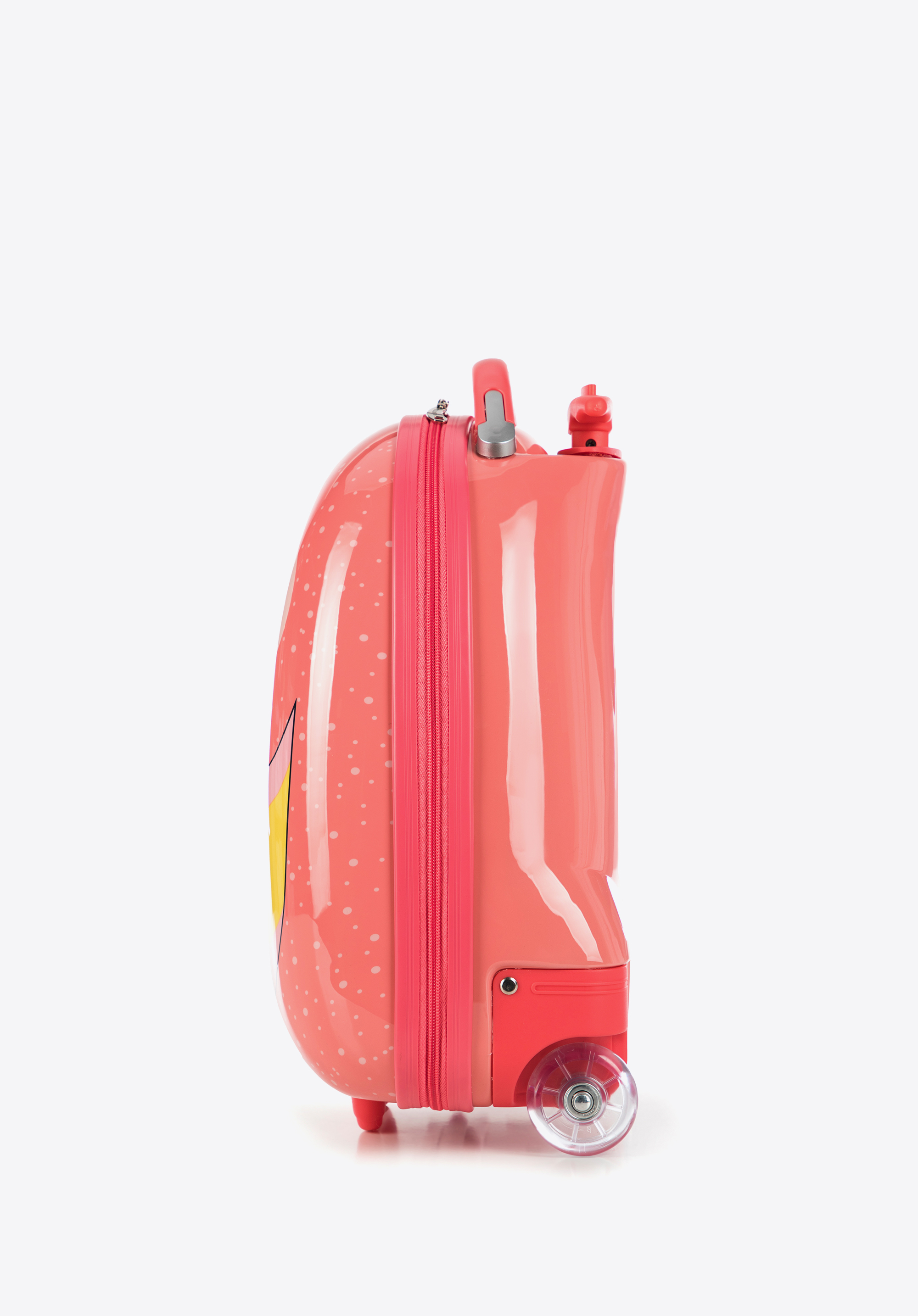 ABS. Model je vybavený dvoma vysoko odolnými kolieskami, ktoré umožňujú voľné ovládanie batožiny. Kufor má výsuvnú rukoväť a držadlo na jednoduchú manipuláciu s batožinou. Detské motívy na prednej strane urobia každý výlet pre najmenších ešte atraktívnejším.