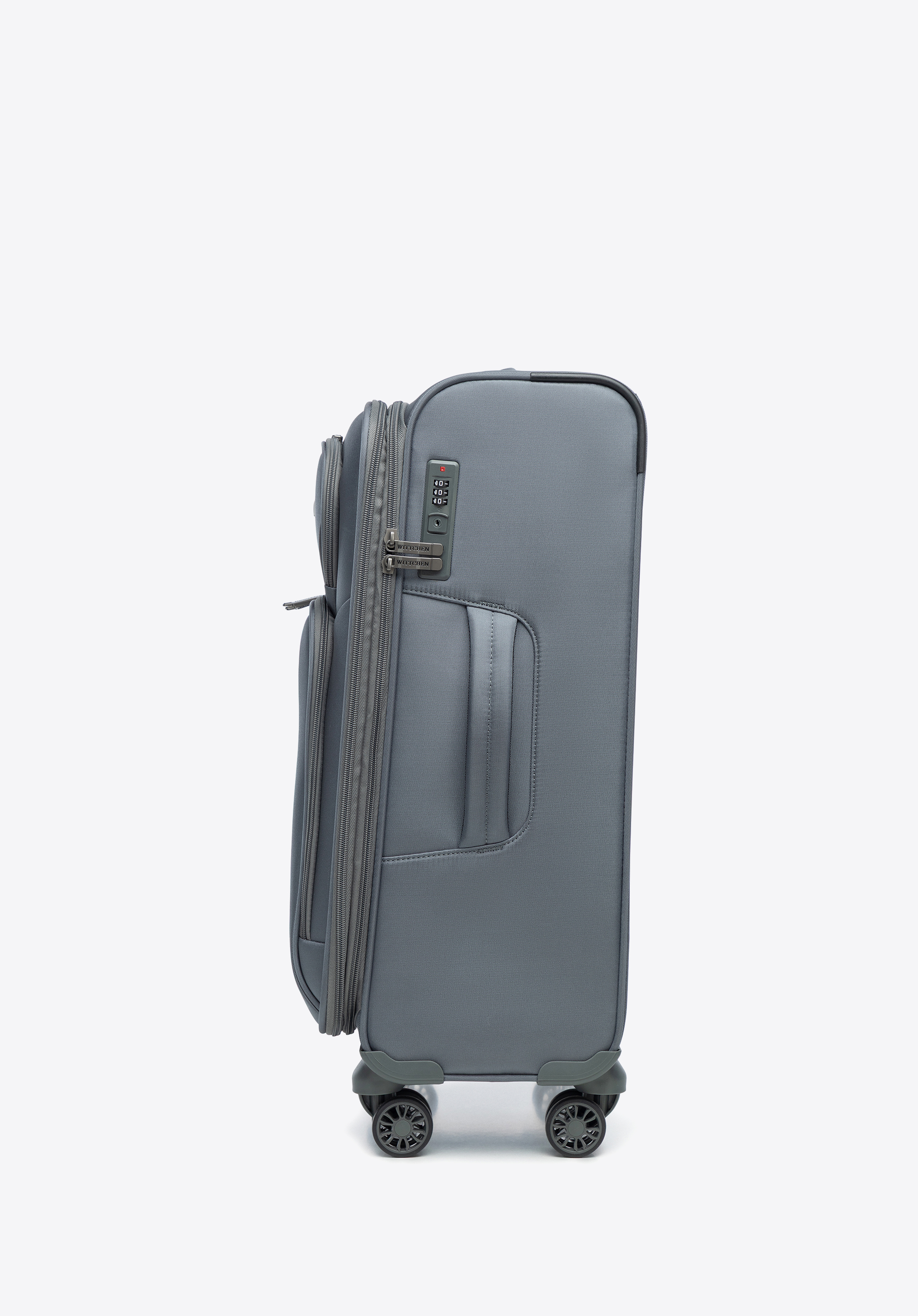- Stabilita: Dva bočné výstupky umožňujú kufru bezpečne stáť na boku a chránia ho pred nečistotami a poškriabaním.