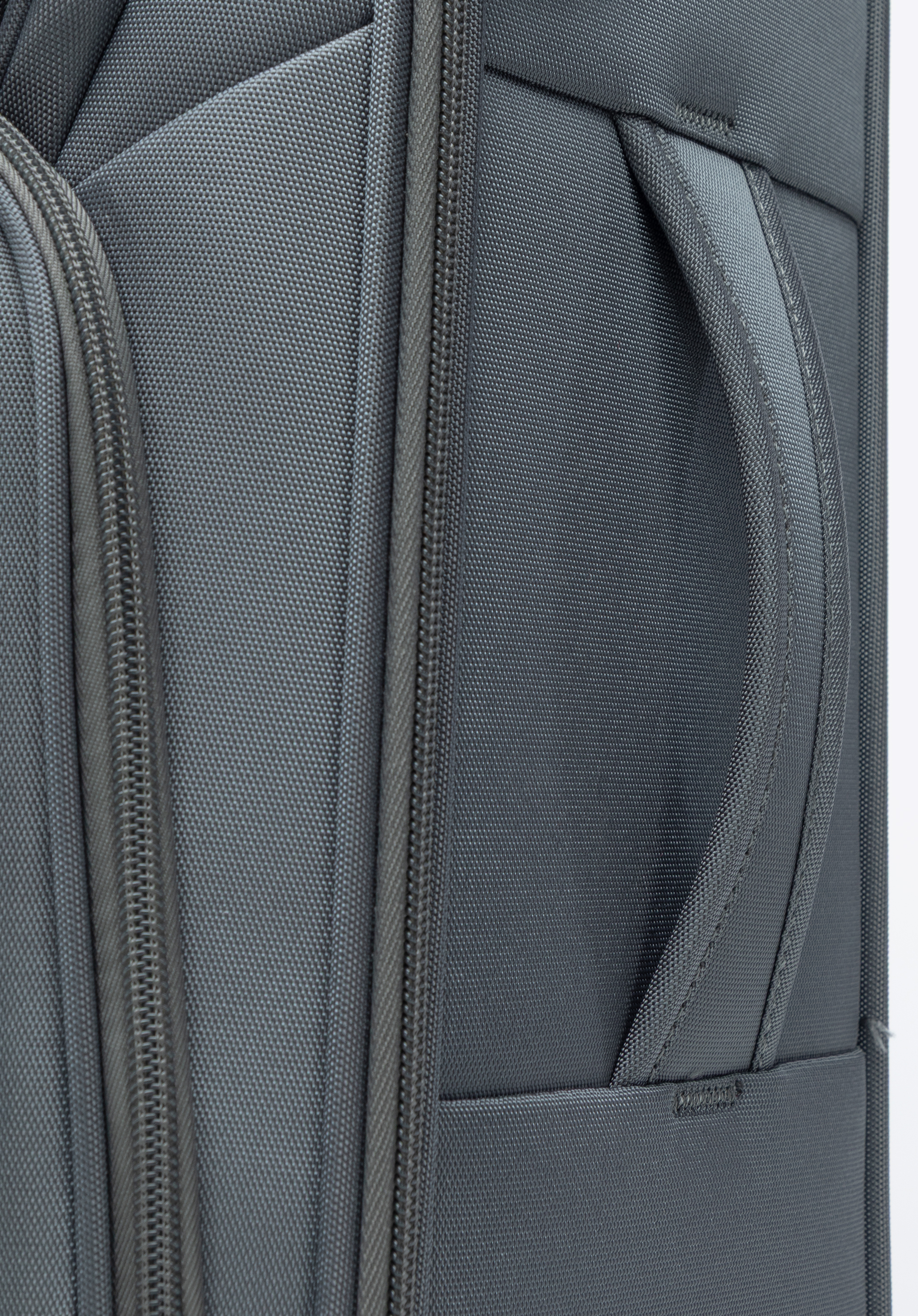 - Vonkajšie vrecká: Horné vrecko na telefón alebo dokumenty a spodné na cestovné doklady – obe zapínané zipsom.