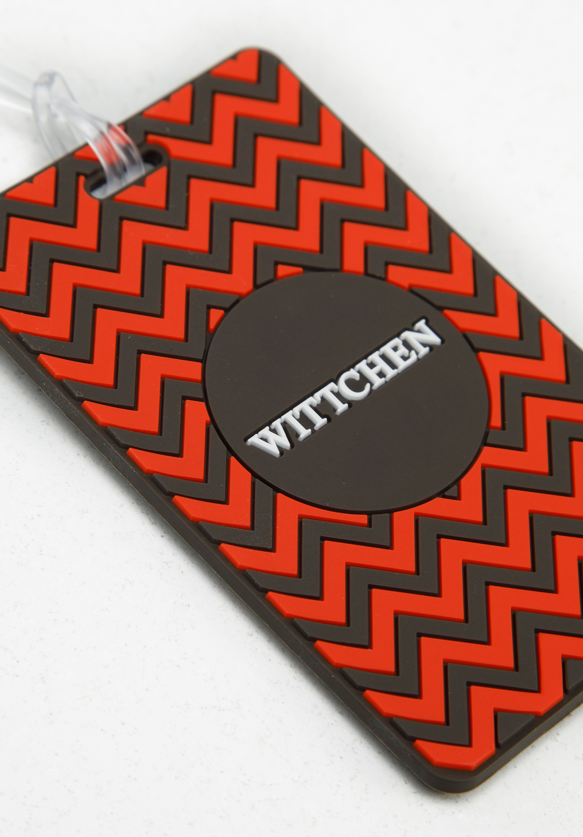 silikónu. Tento cestovný doplnok má identifikačné okienko na kontaktné informácie a popruh. Visačka na batožinu s geometrickým vzorom je skvelá na mnohé cesty.